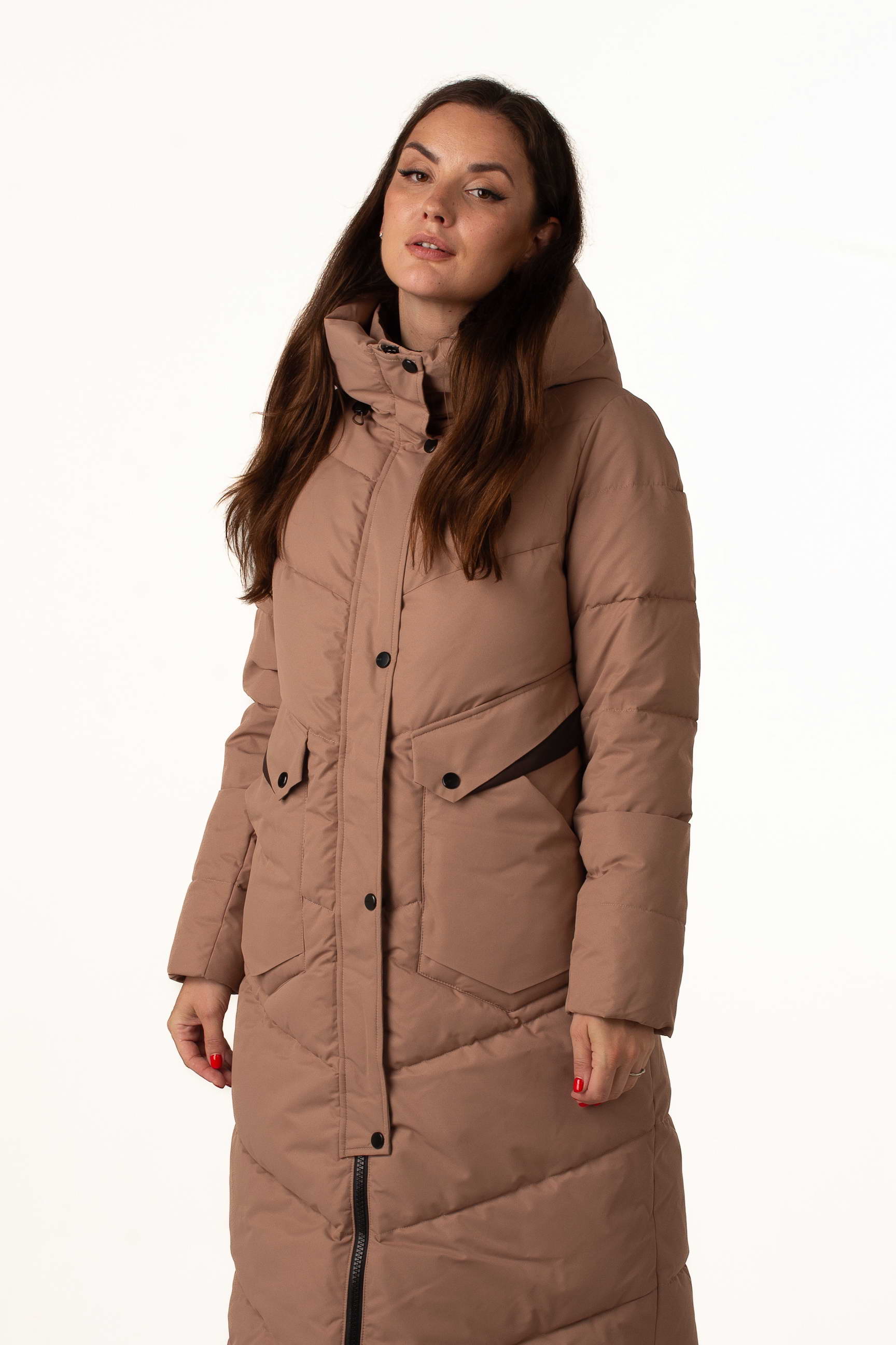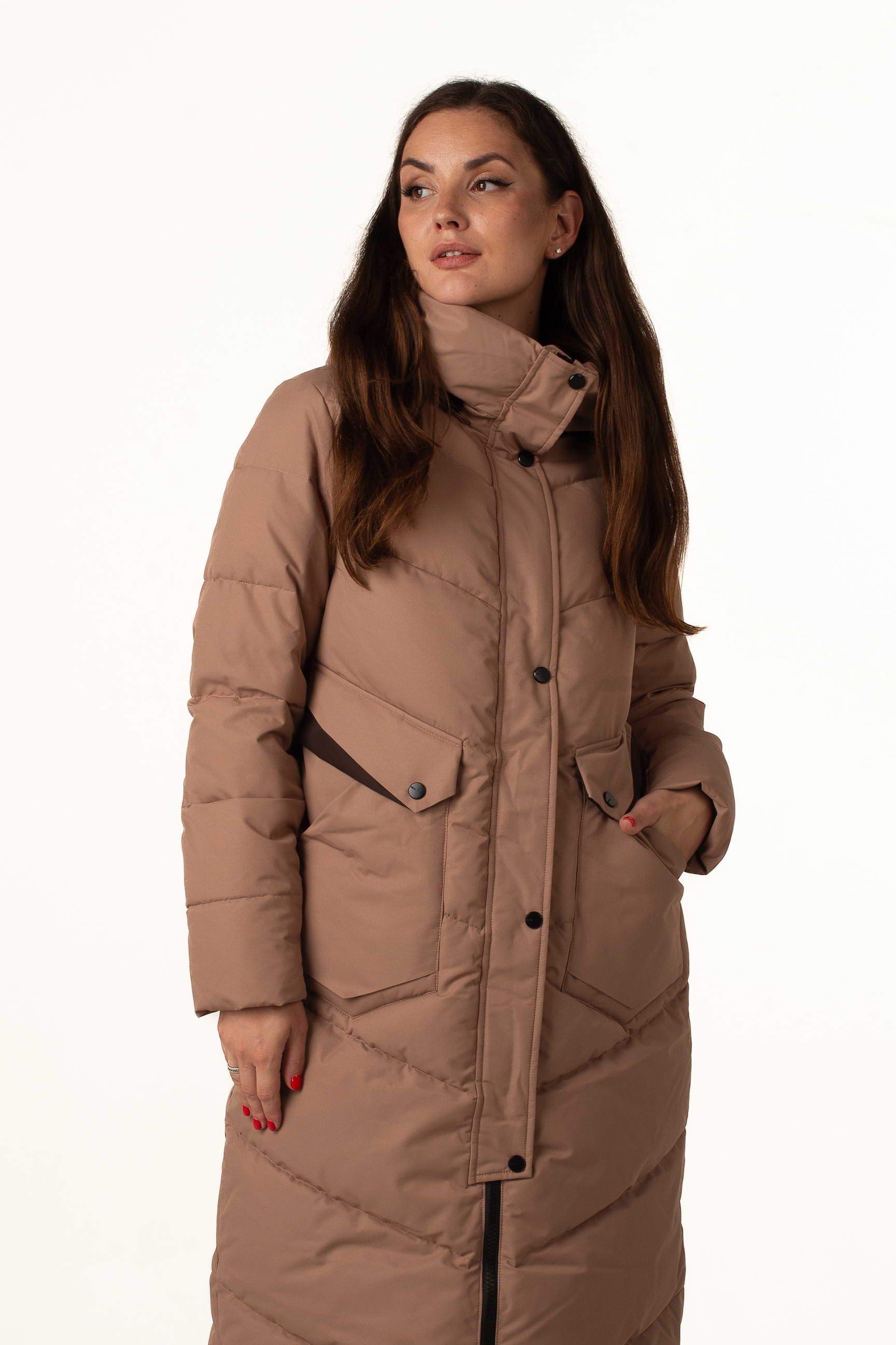 Жіночий біопуховик бежевого кольору поєднує стиль і функціональність, забезпечуючи тепло і комфорт у зимовий період. Легка, тепла і практична модель для щоденного носіння.