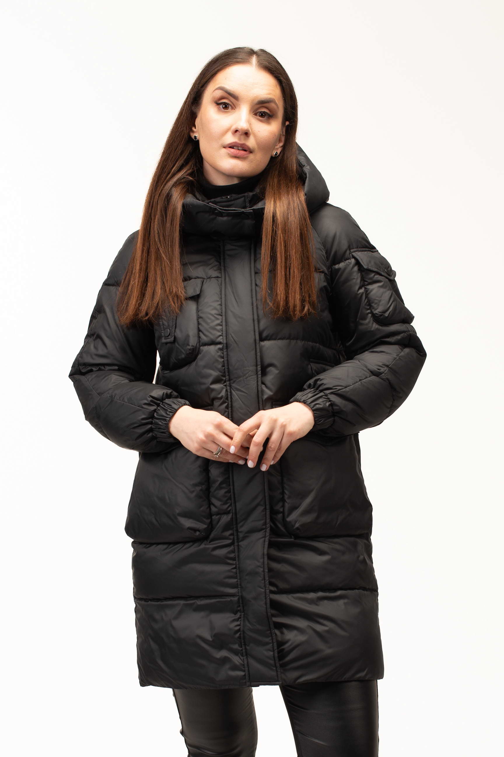 Ця жіноча зимова куртка створена для комфортного носіння у холодний сезон, поєднуючи в собі практичність, надійний захист від морозу та стильний зовнішній вигляд. Виконана з якісної плащівки, вона добре протистоїть вітру та вологи, залишаючись зручною та легкою у щоденному використанні. Класичний чорний колір робить модель універсальною та дозволяє легко поєднувати її з різними елементами гардеробу.