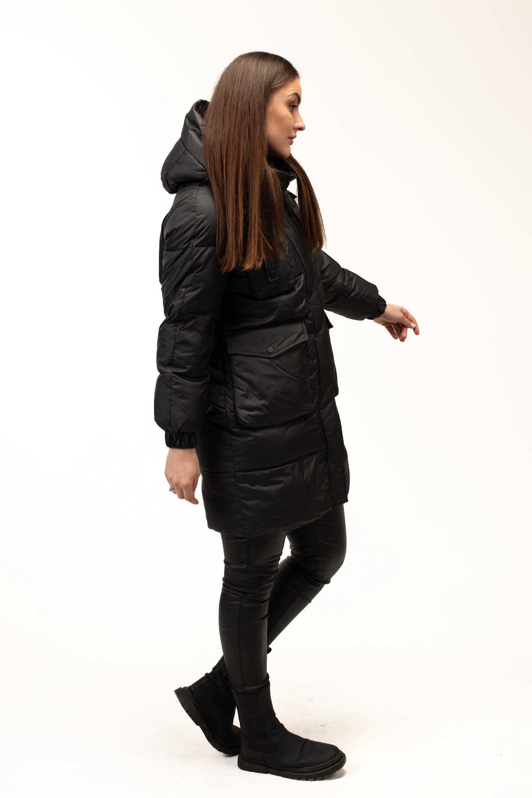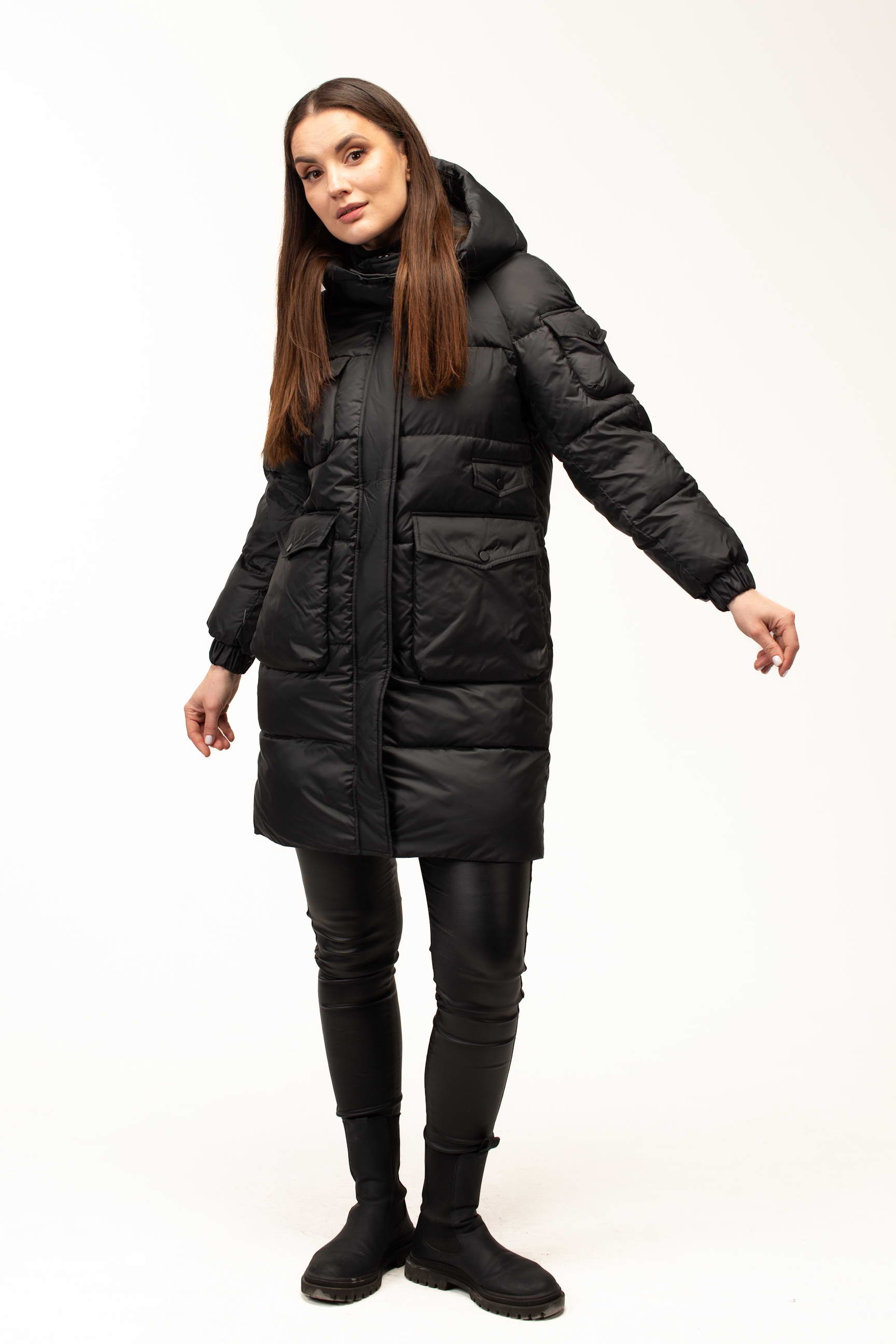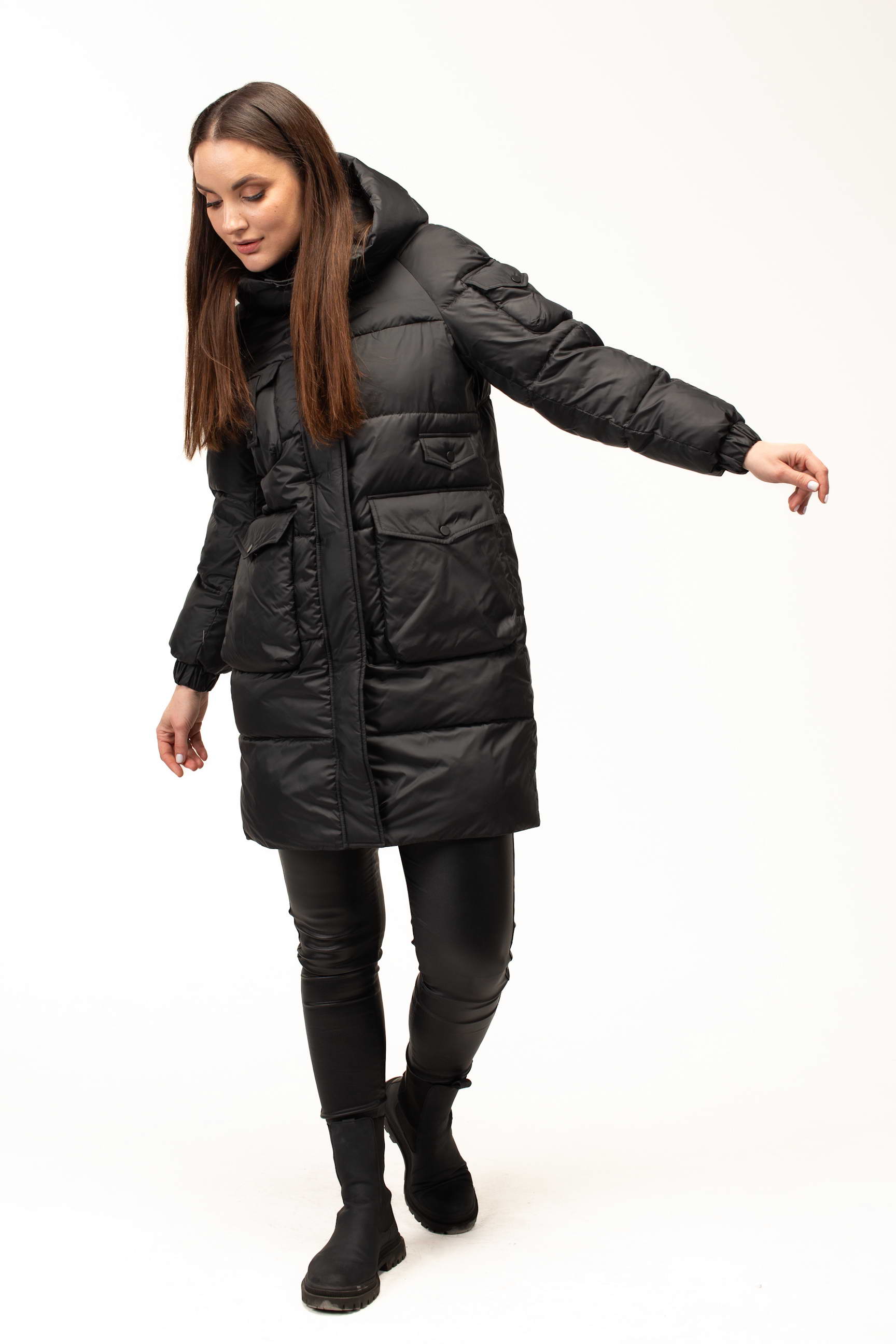 Горизонтальна прострочка додає куртці сучасного вигляду, підкреслює її акуратний силует і допомагає рівномірно розподіляти утеплювач. Накладні кишені забезпечують зручність у використанні, а додаткові невеликі кишені на грудях і рукаві додають функціональності та стильного акценту, дозволяючи тримати дрібні речі завжди під рукою.