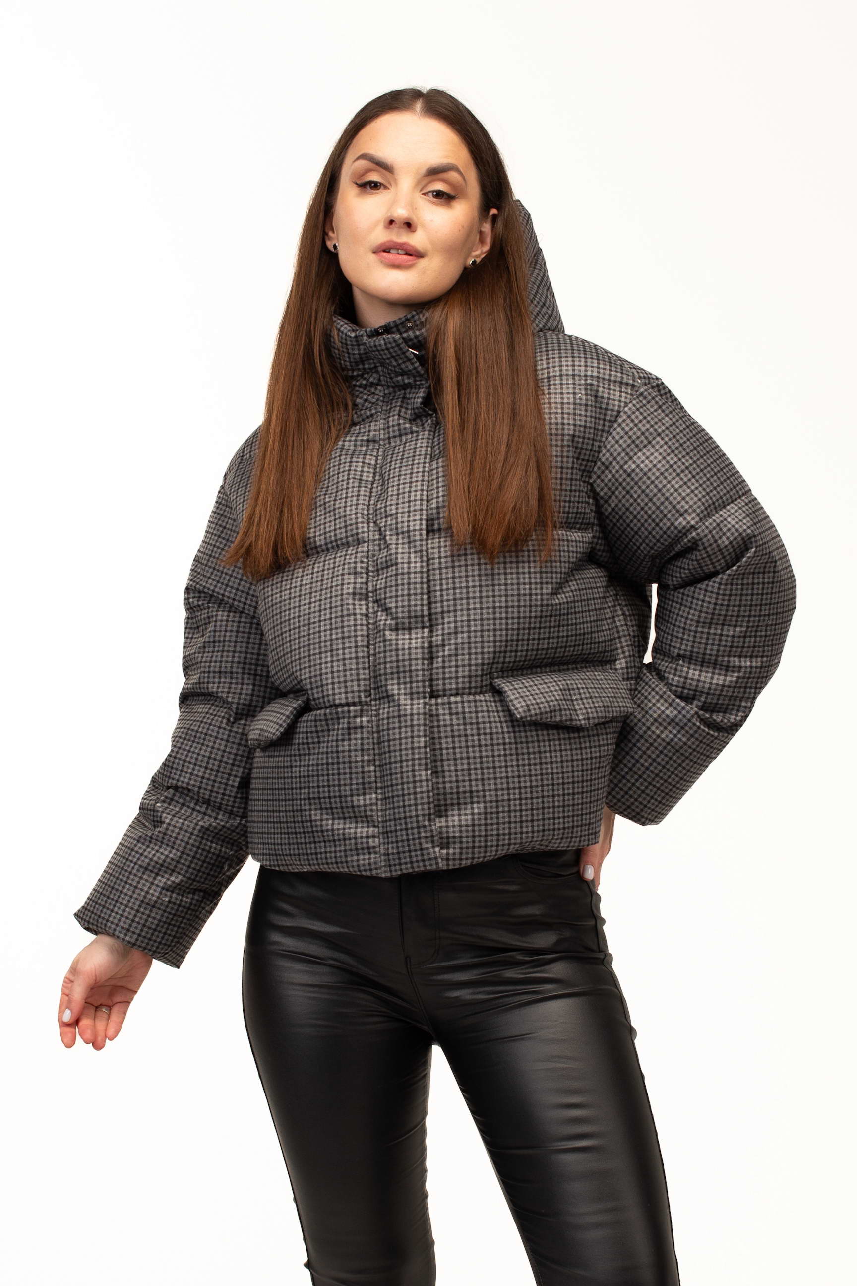 Жіноча зимова куртка з біопухом у принті клітинка (сірий відтінок) — це стильне та функціональне рішення для холодного сезону. Модель виготовлена з міцної плащівки, яка забезпечує захист від вітру та вологи, що робить куртку практичною для щоденного використання в зимових умовах. Наповнювач із біопуху гарантує ефективне збереження тепла та комфорт навіть при низьких температурах.
