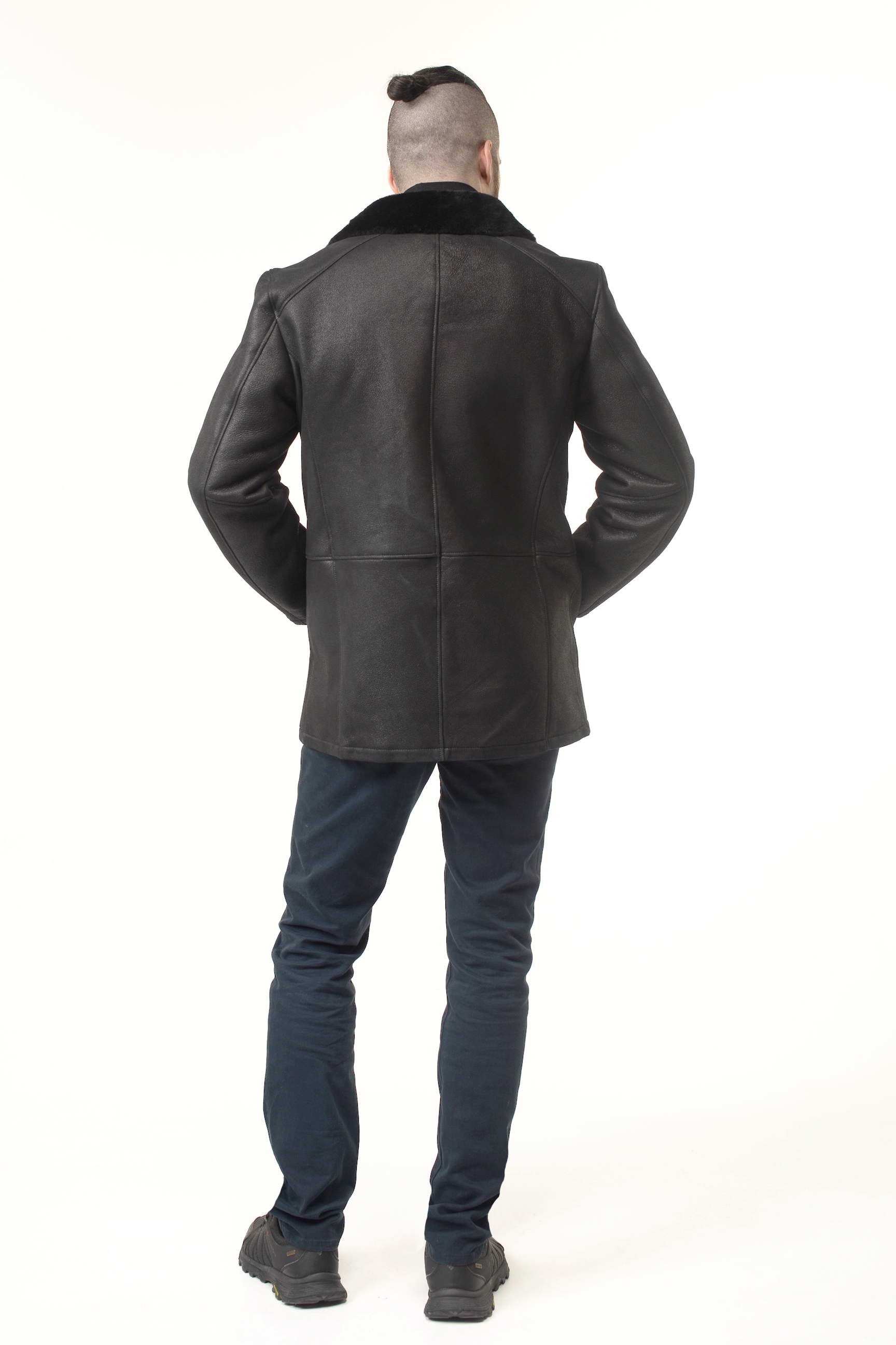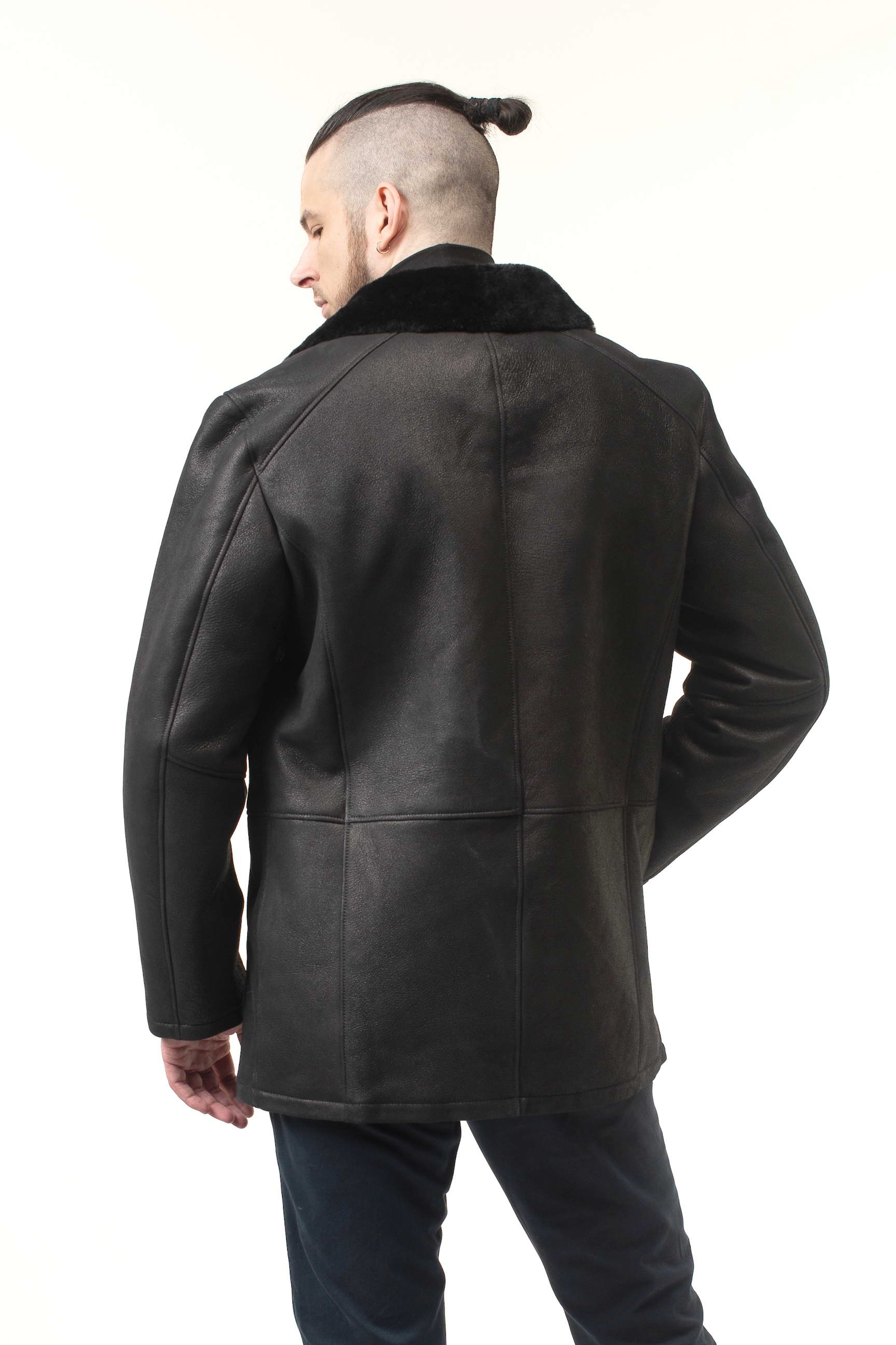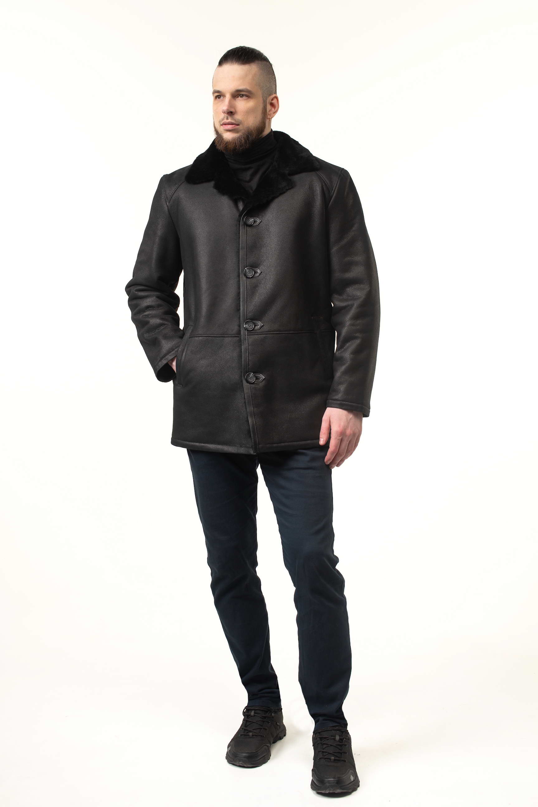 Чоловіча дублянка чорного кольору легко поєднується з різним одягом: