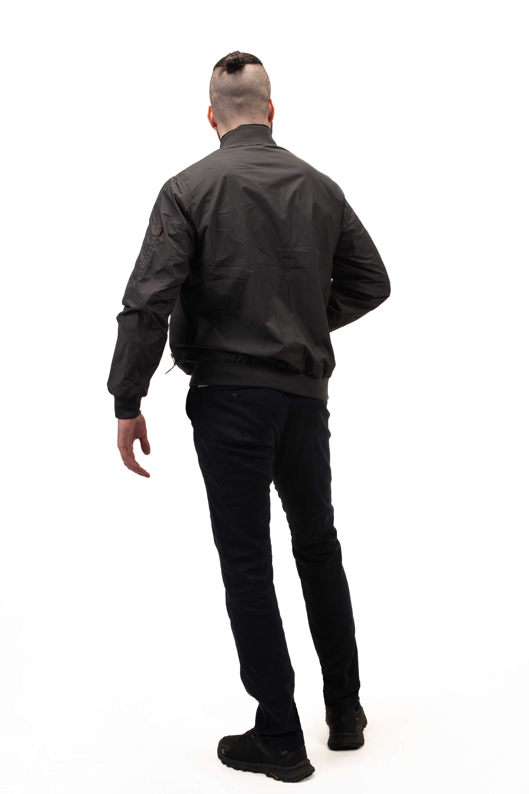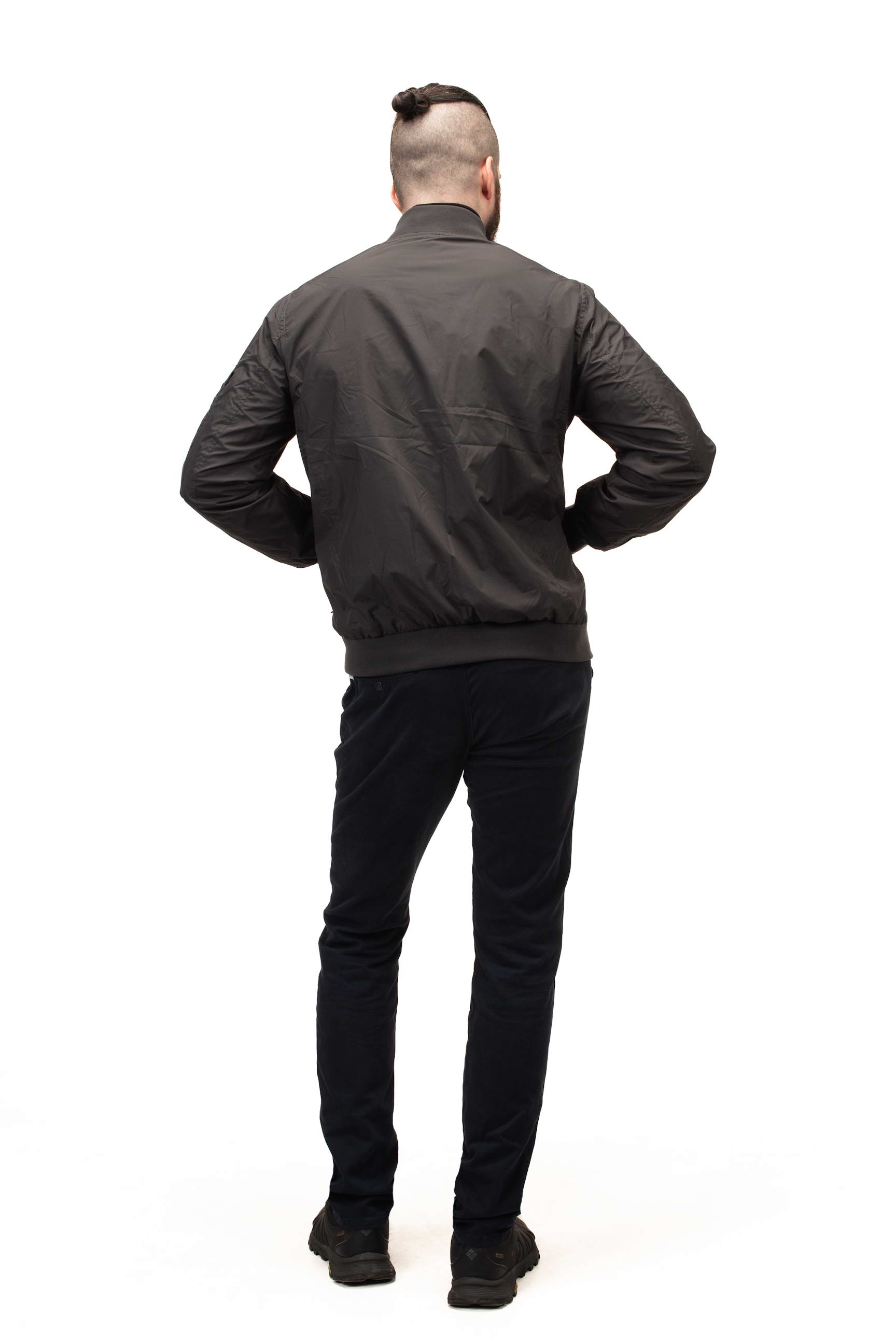 Силует бомбера з резинкою по низу та манжетах забезпечує комфортну посадку, добре тримає форму та додає спортивного характеру. Такий крій зручний для активного способу життя і щоденного носіння.