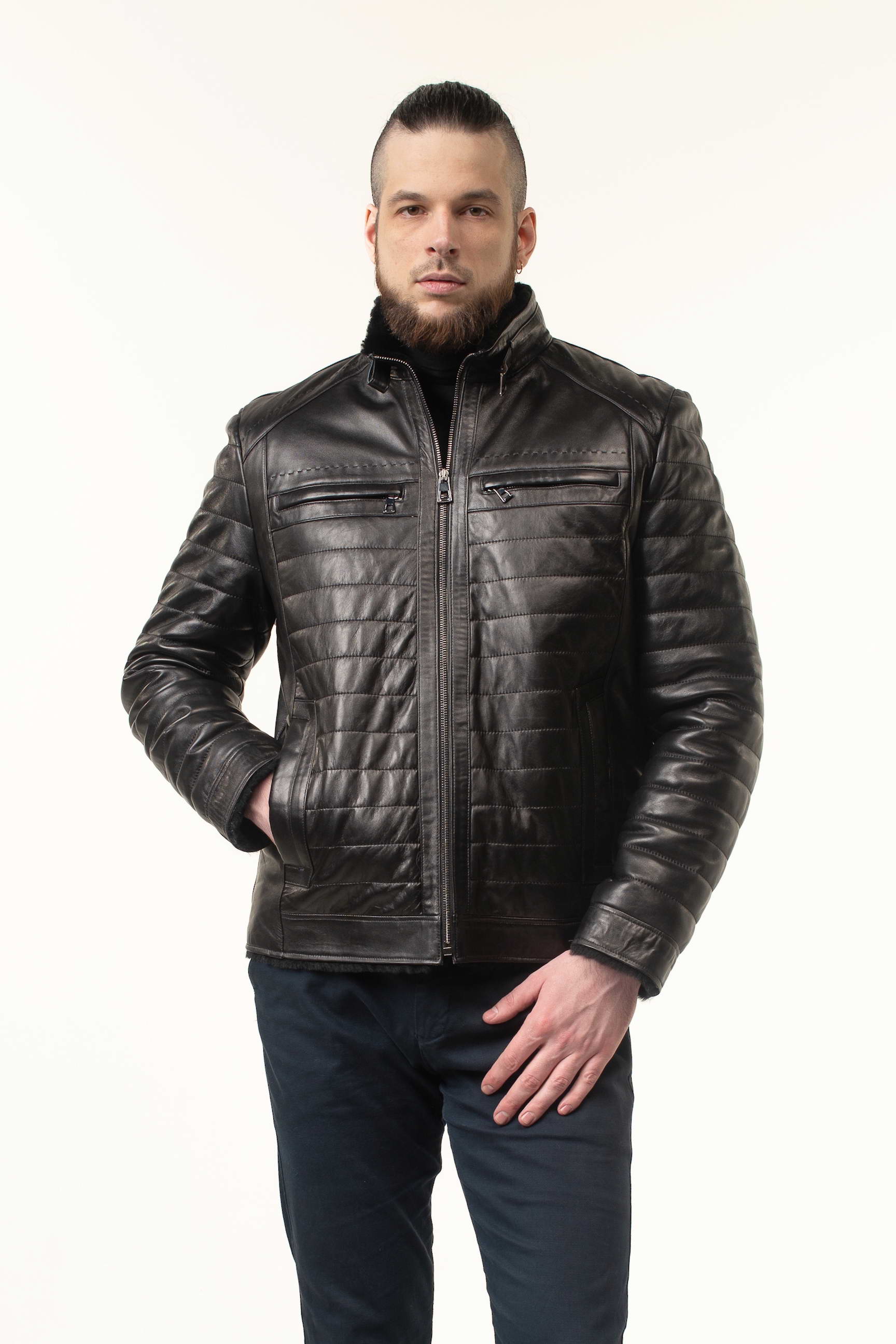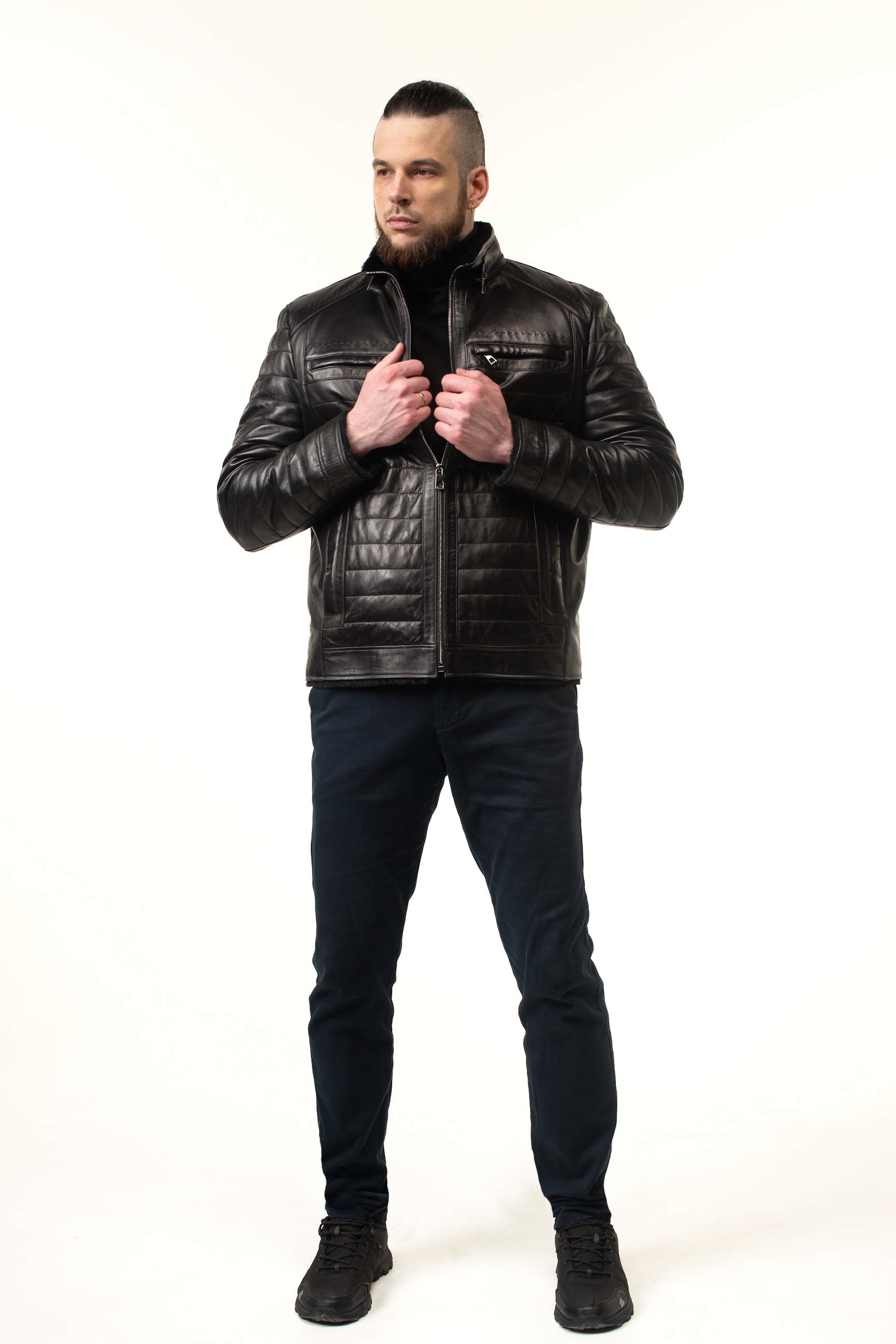 Чоловіча шкіряна дублянка-сендвіч чорного кольору — універсальний вибір для зимового гардеробу: