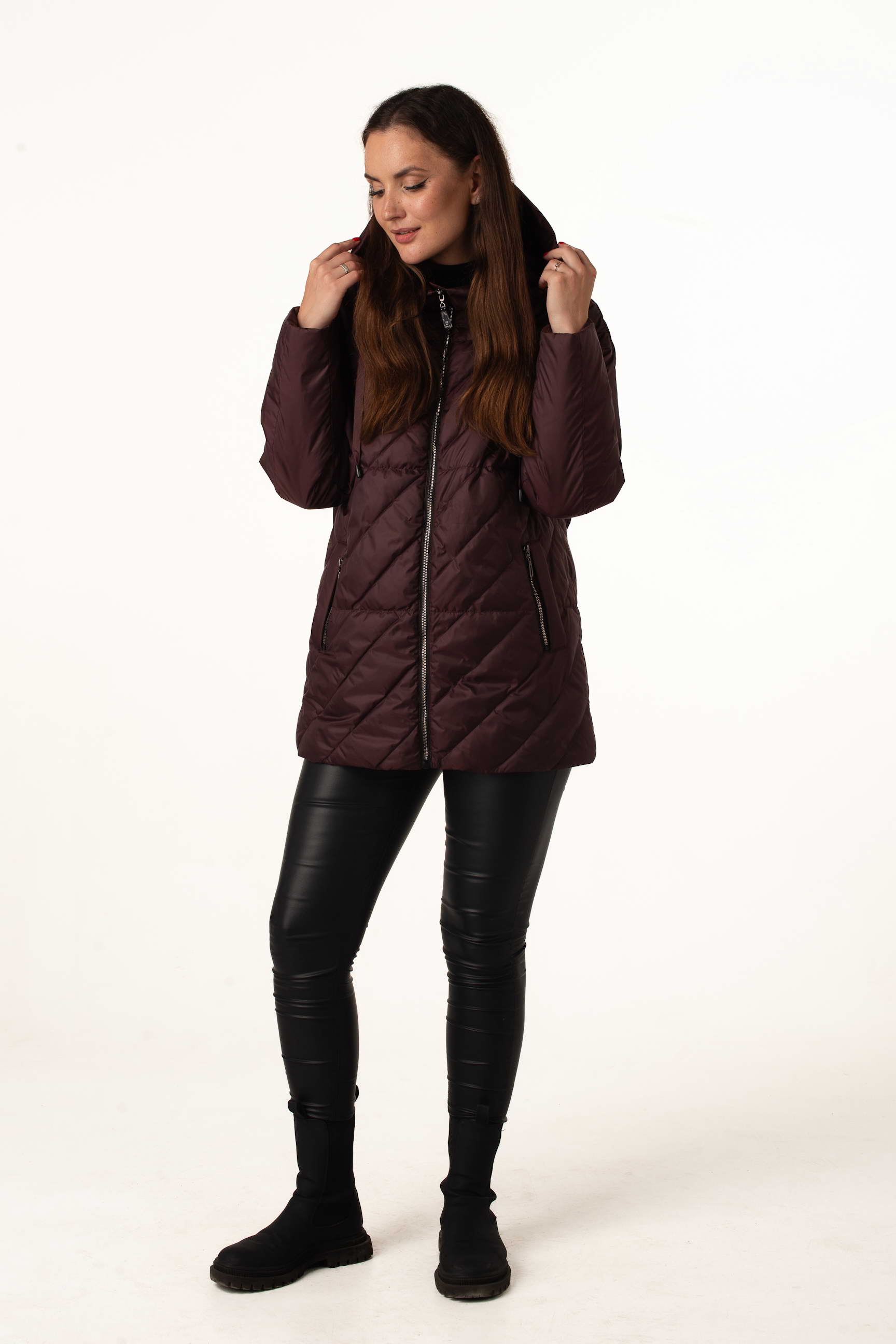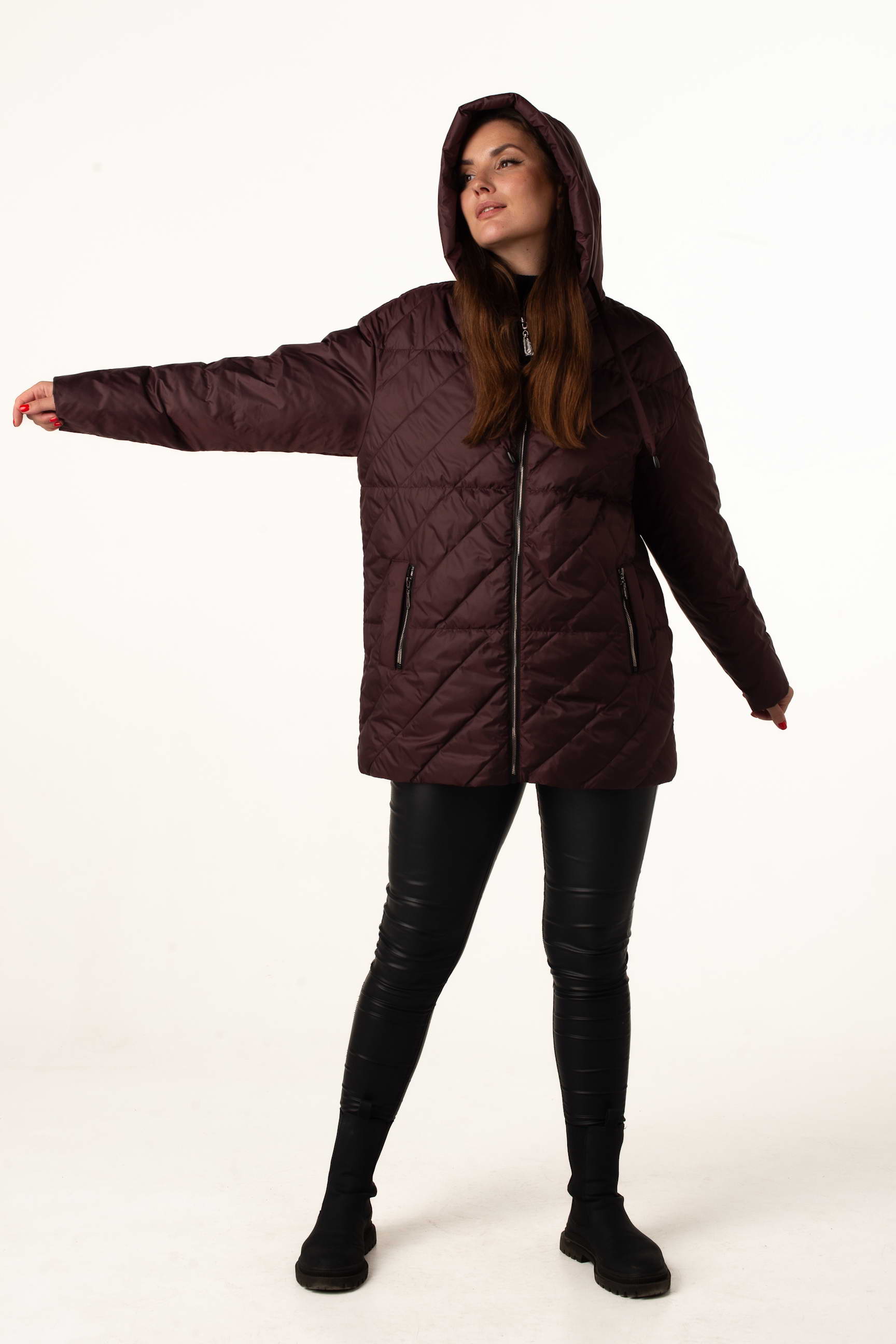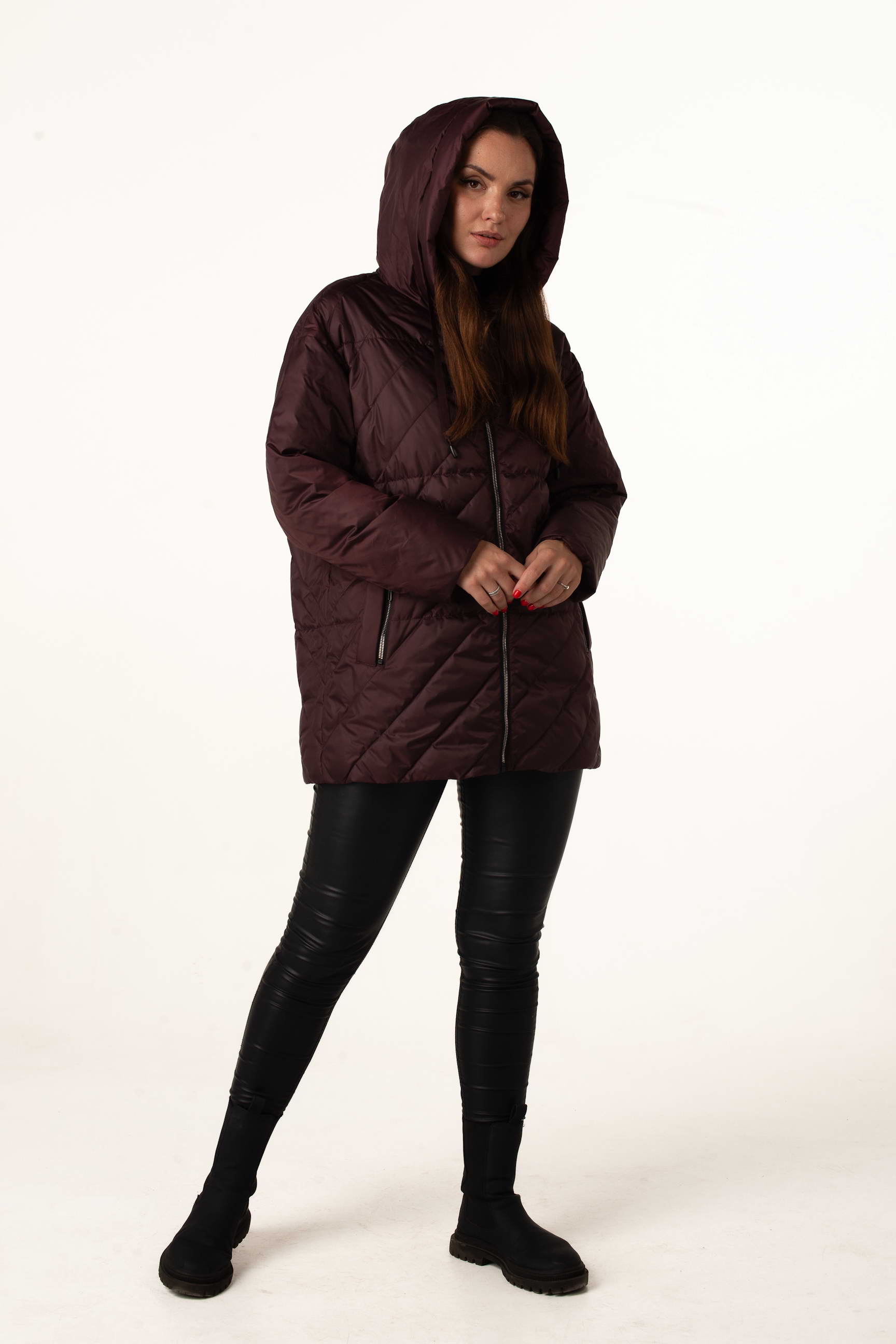 Бордова жіноча демісезонна куртка – ідеальний вибір для весни та осені. Модель поєднує сучасний дизайн, комфорт і практичність. Комір-стійка та капюшон забезпечують додатковий захист від вітру, а діагональна прострочка додає оригінального і стильного вигляду.