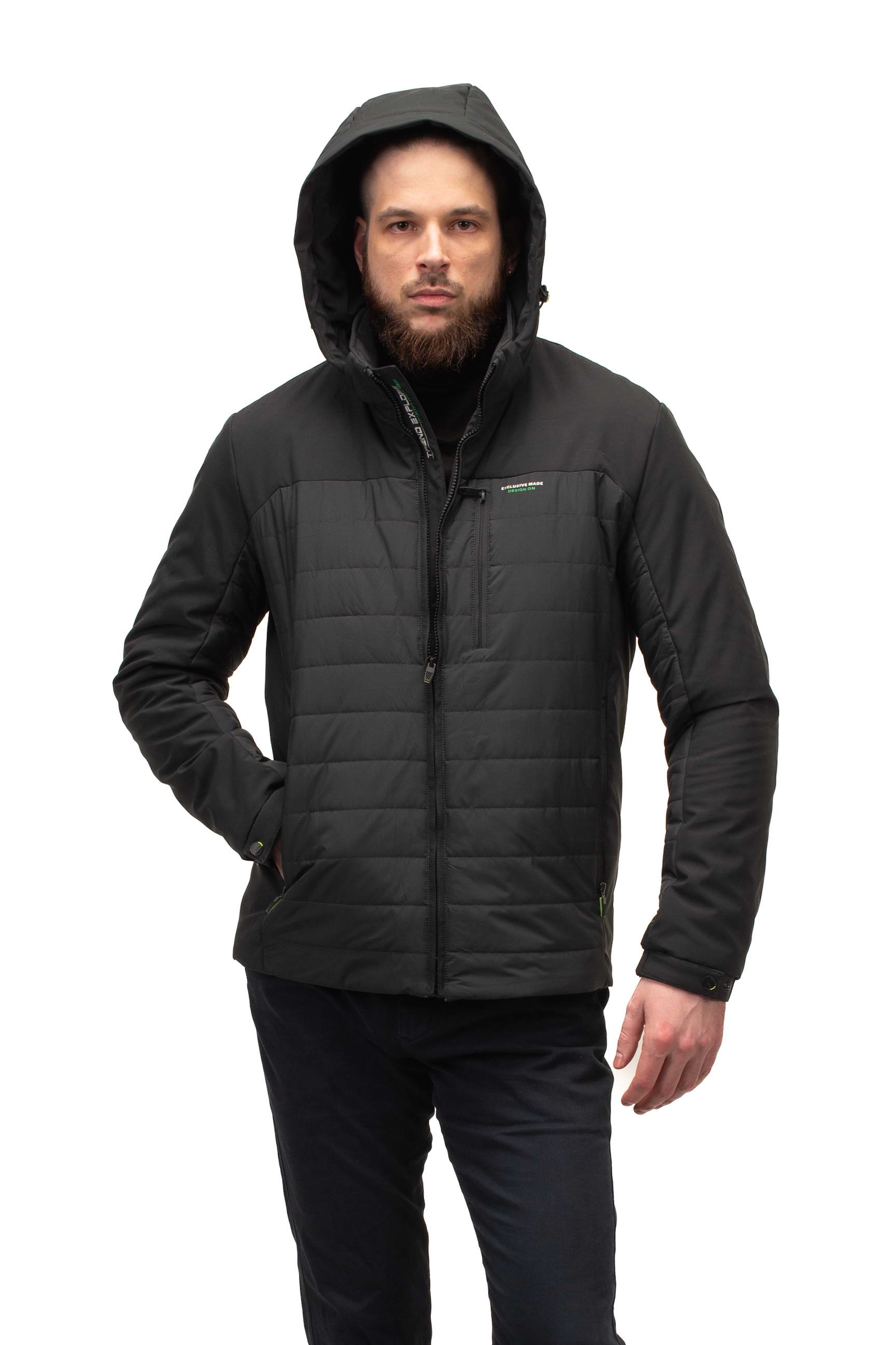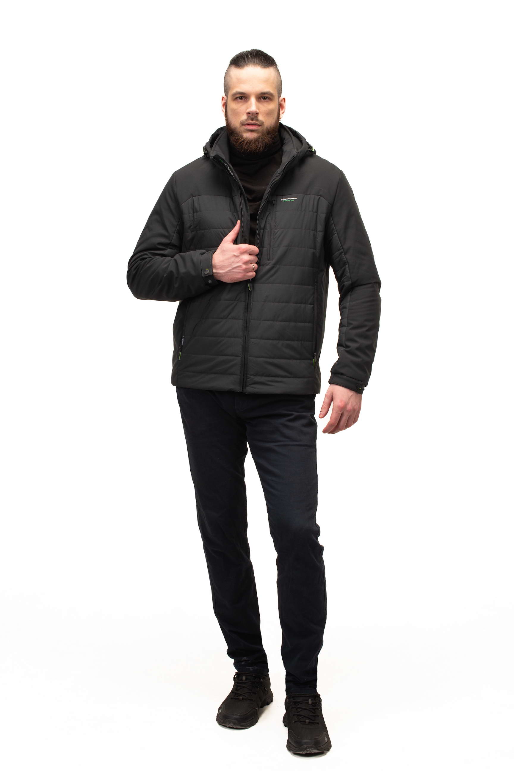 Комір-стійка у поєднанні зі знімним капюшоном дозволяє адаптувати куртку до різних погодних умов, забезпечуючи захист від вітру та дощу. Це робить модель особливо зручною для активного міського життя та подорожей.