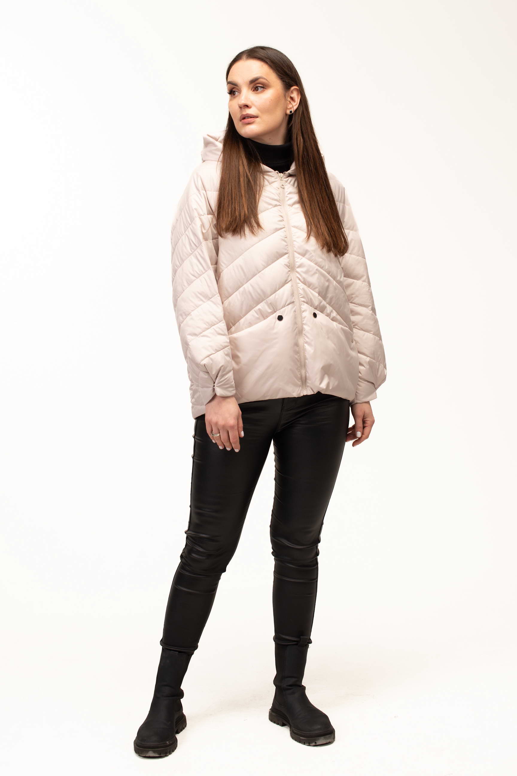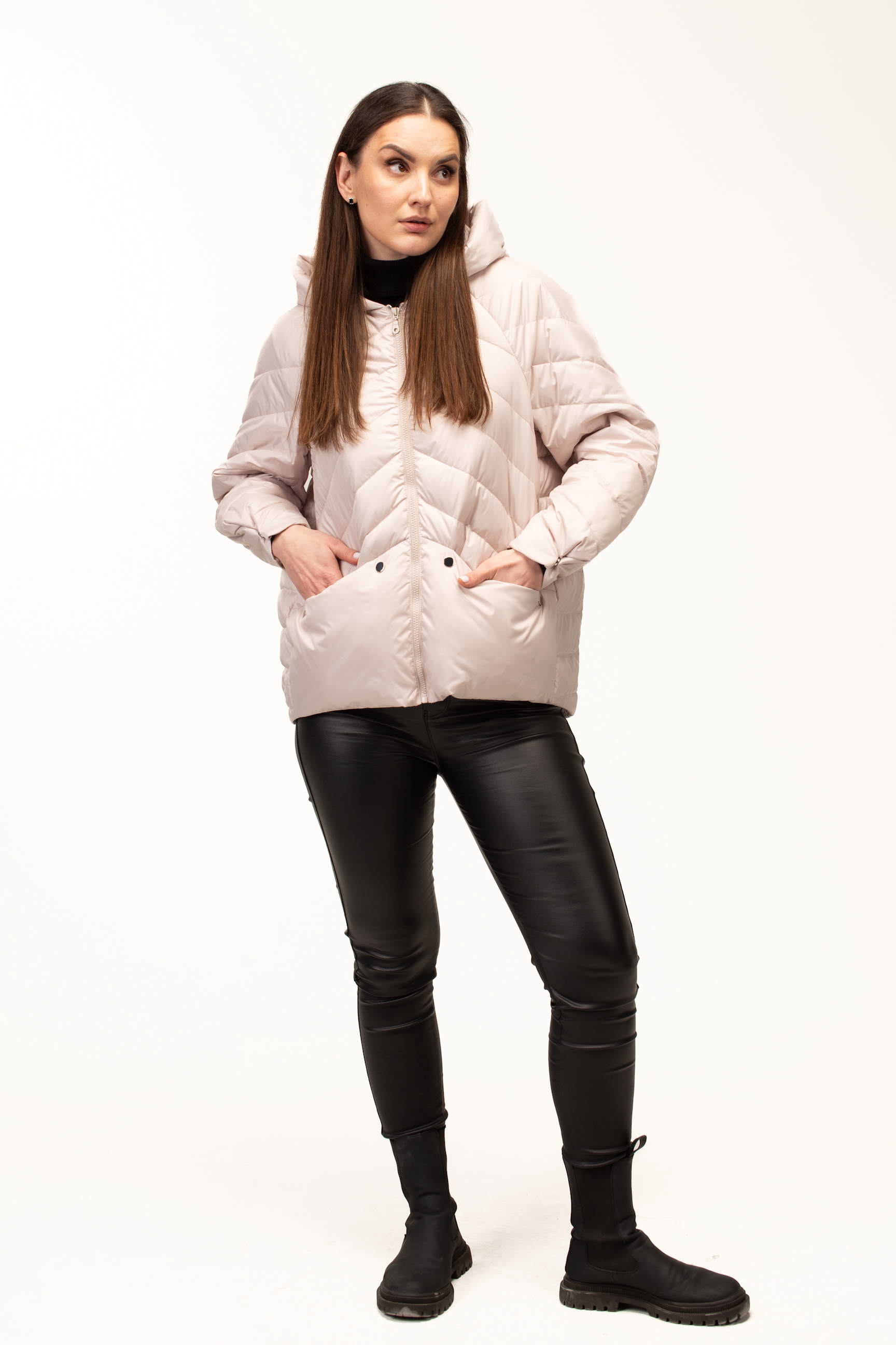 Наповнювач із силіконізованого волокна забезпечує оптимальний рівень тепла без зайвої ваги, що робить куртку комфортною для щоденного використання. Завдяки продуманій комбінації горизонтальної прострочки по спинці та стібки «ялинкою» по переду і рукавах, модель виглядає стильно та сучасно, підкреслюючи увагу до деталей і дизайнерський підхід.