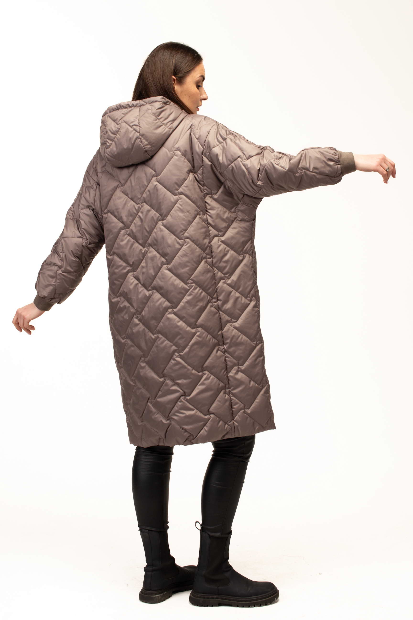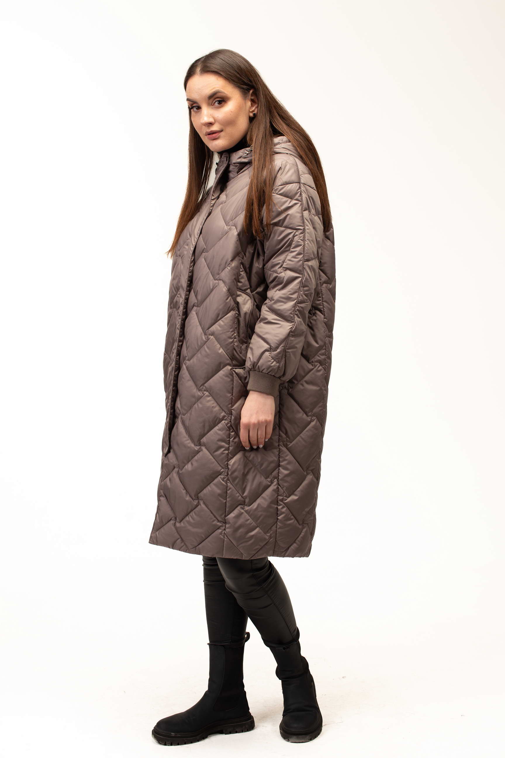 Наповнювач із силіконізованого волокна забезпечує оптимальний рівень утеплення без зайвої ваги, що робить куртку комфортною навіть при тривалому носінні. Прострочка смужками додає виробу сучасного вигляду та підкреслює його геометрію, створюючи візуально витончений силует і додаючи текстурності дизайну.