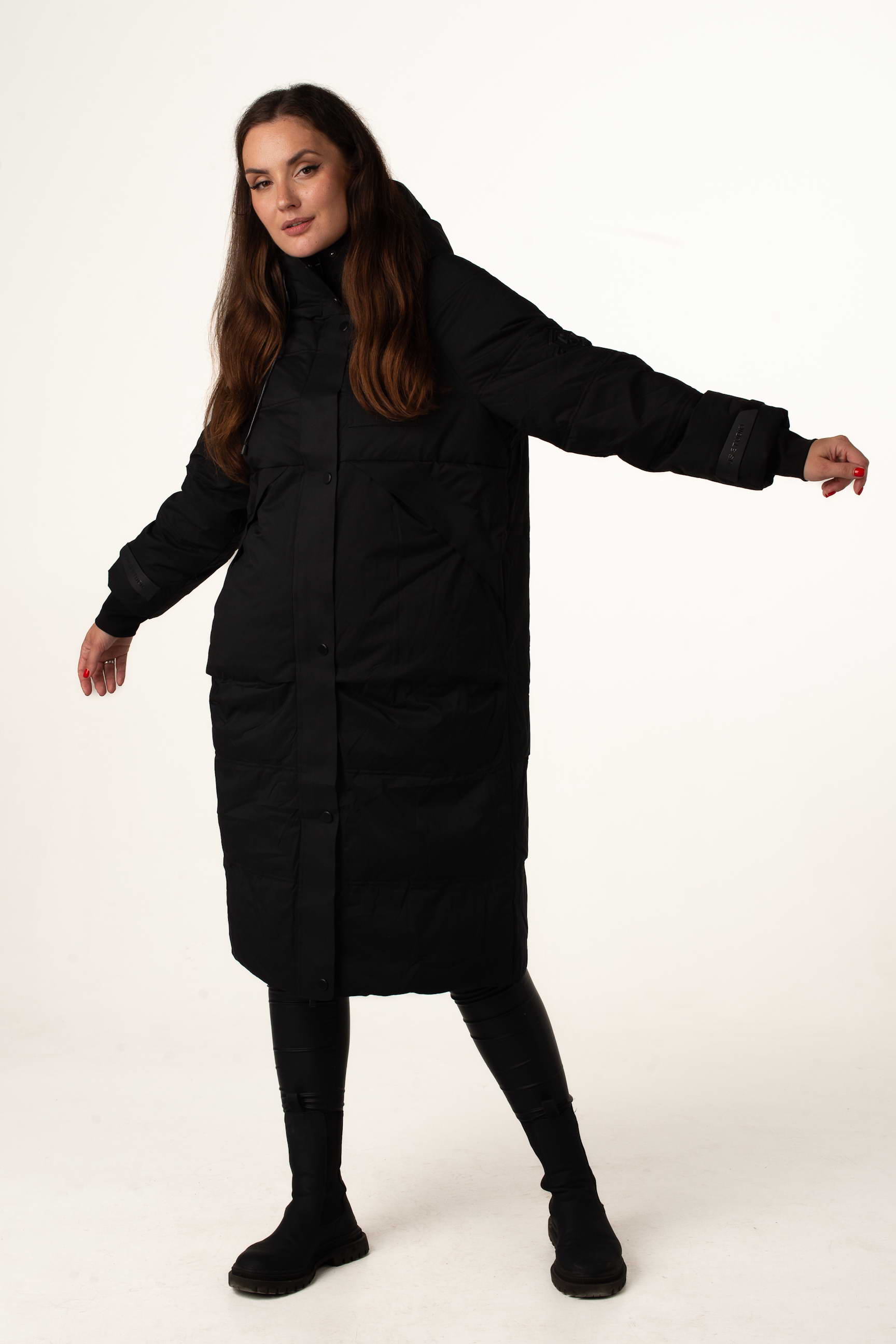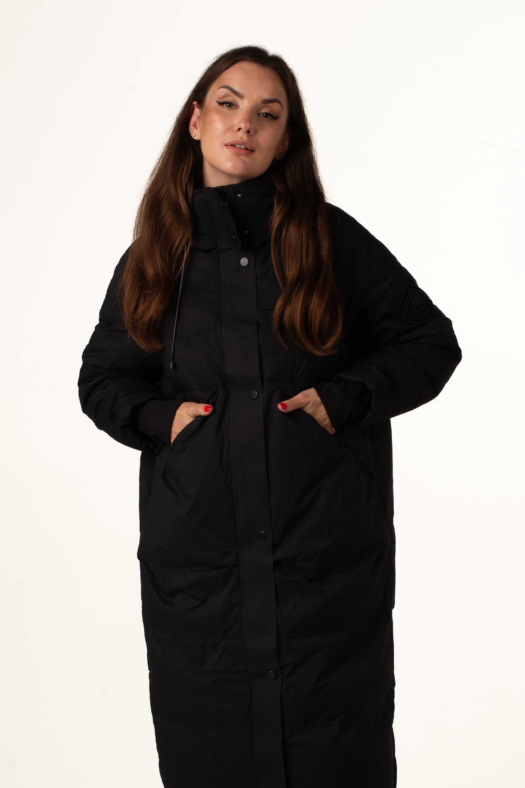 Чорний пуховик довжини 110 см – ідеальний варіант для тих, хто цінує тепло, комфорт і стиль. Модель легко поєднується з будь-яким зимовим гардеробом і підходить для активного способу життя.