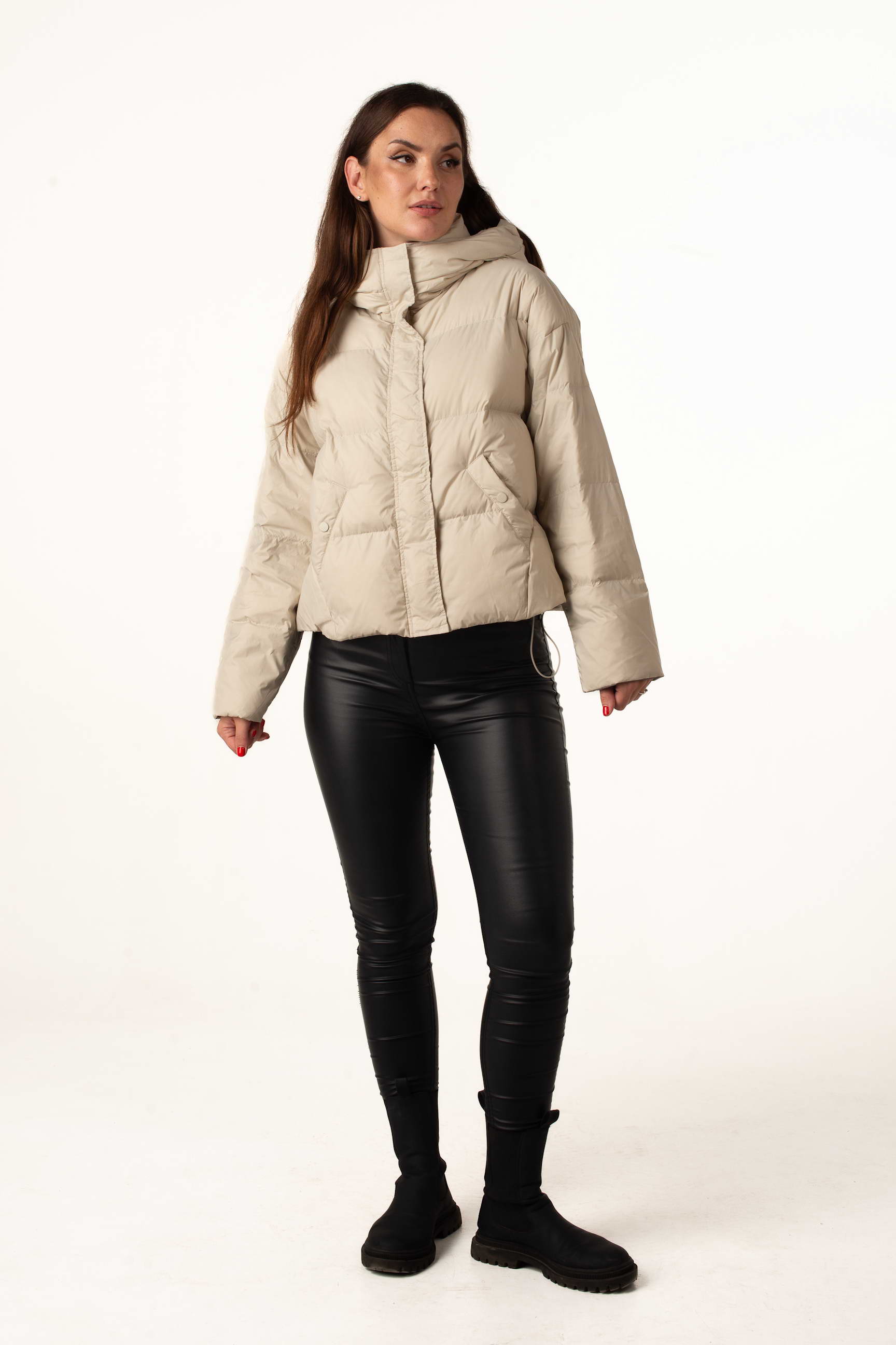 Світло-сірий пуховик з натуральним пухом поєднує тепло, легкість і елегантний стиль. Ідеально підходить для міського гардероба, прогулянок та активного відпочинку у зимовий період.