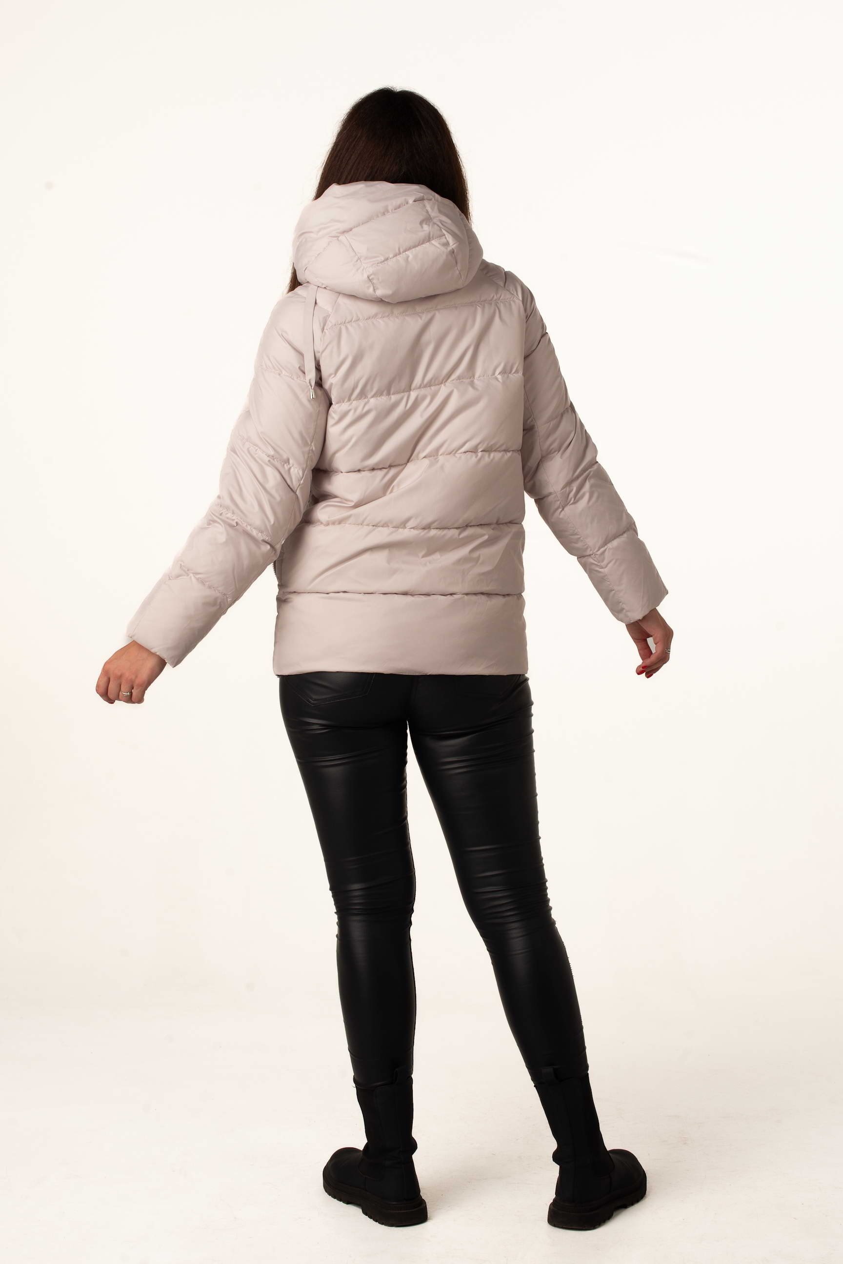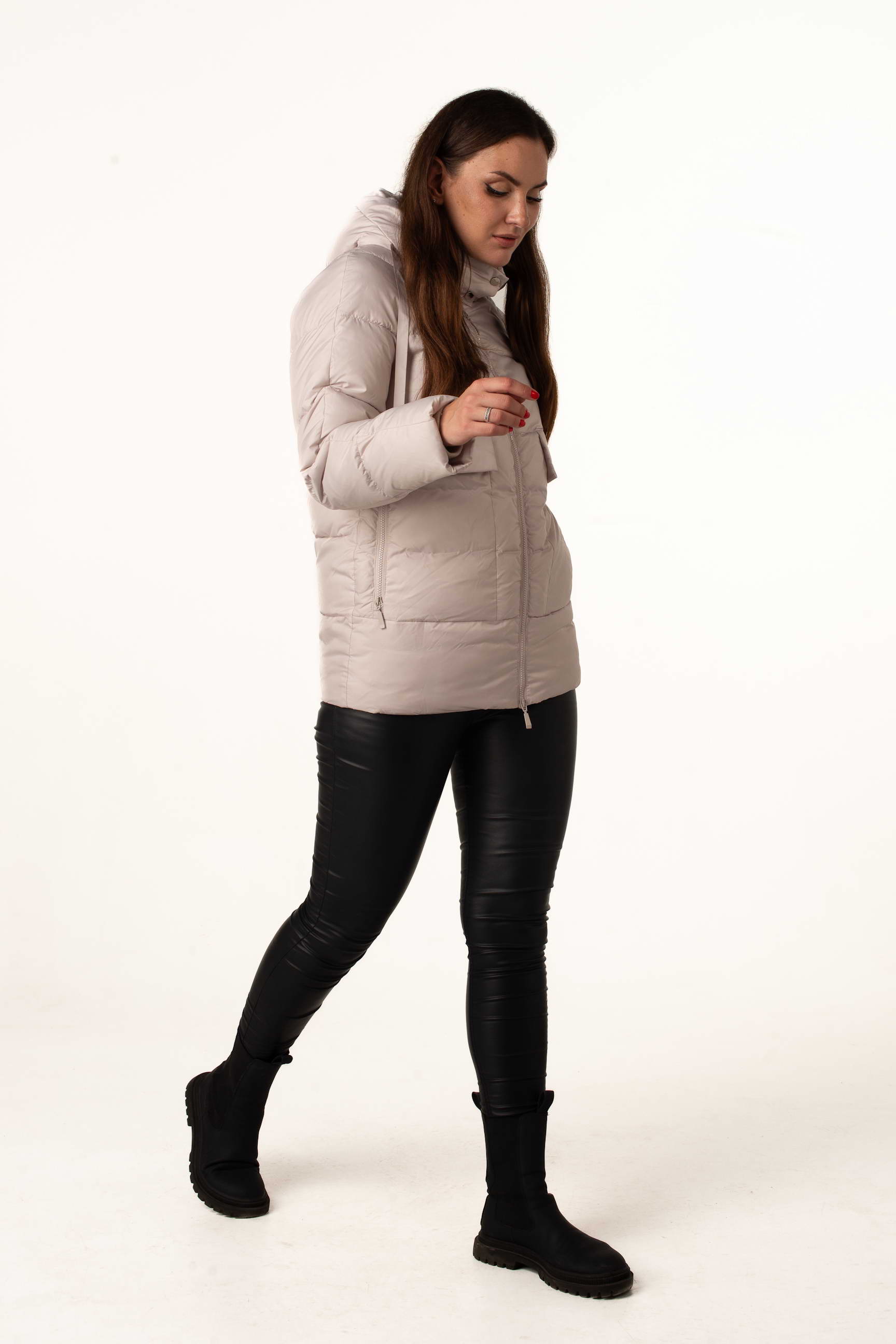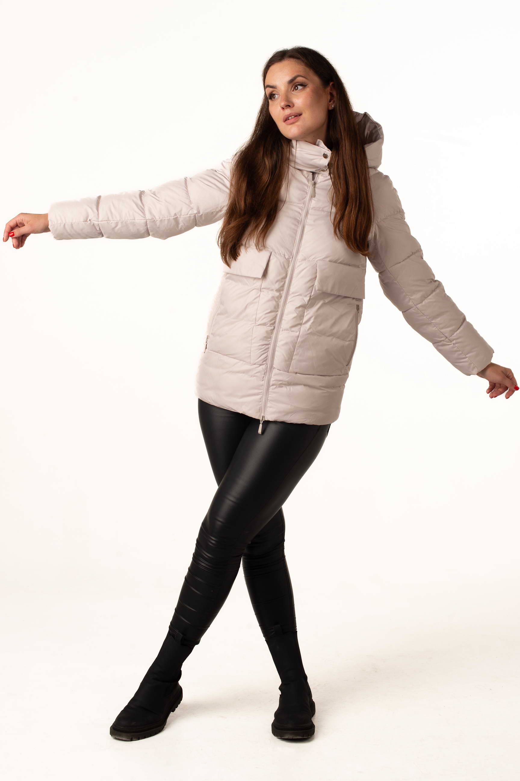 Бежевый женский биопуховик – современная и практичная модель для зимнего сезона, сочетающая комфорт, тепло и модный дизайн.