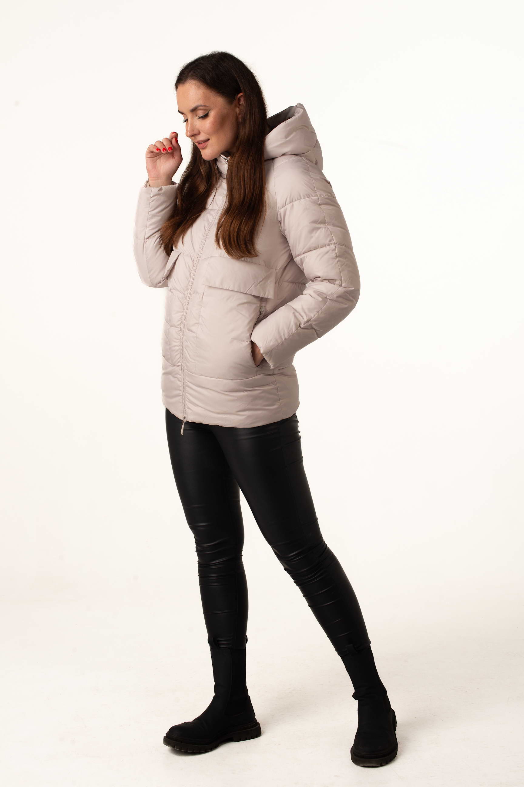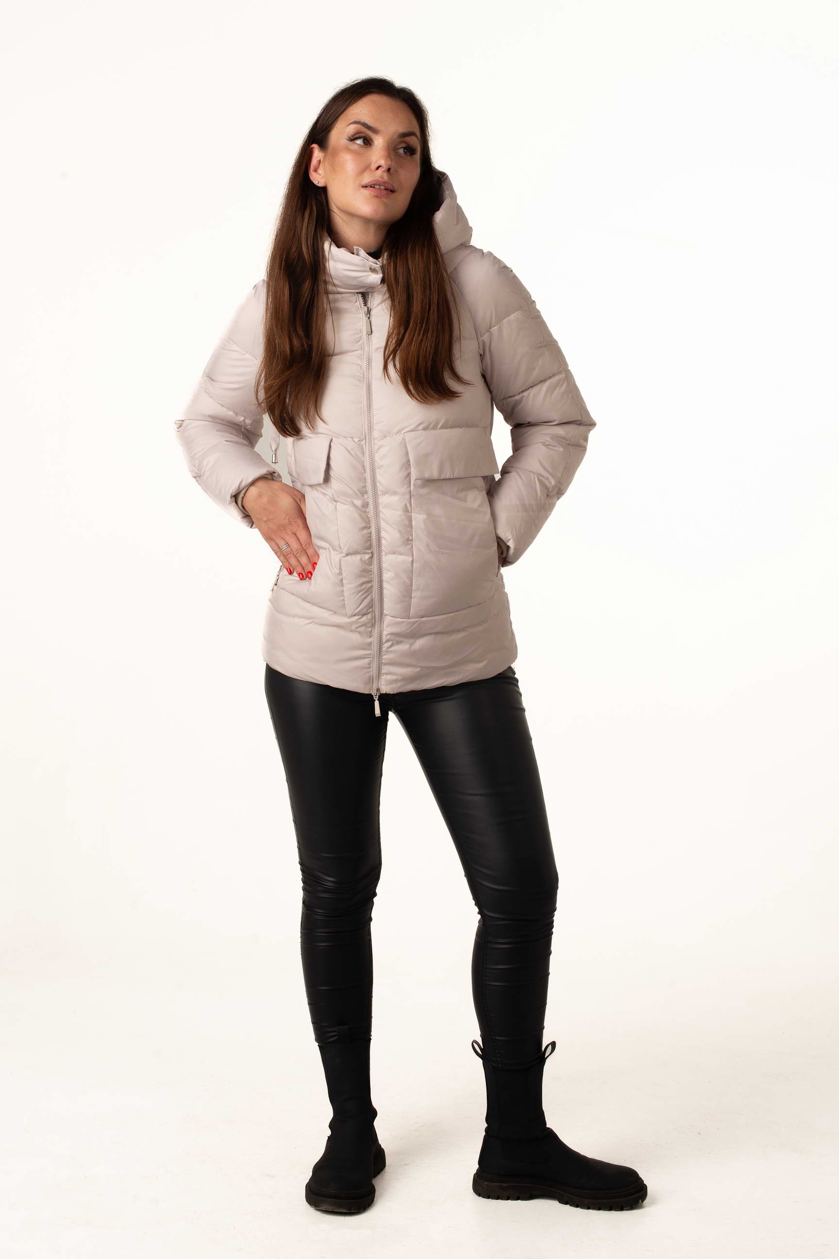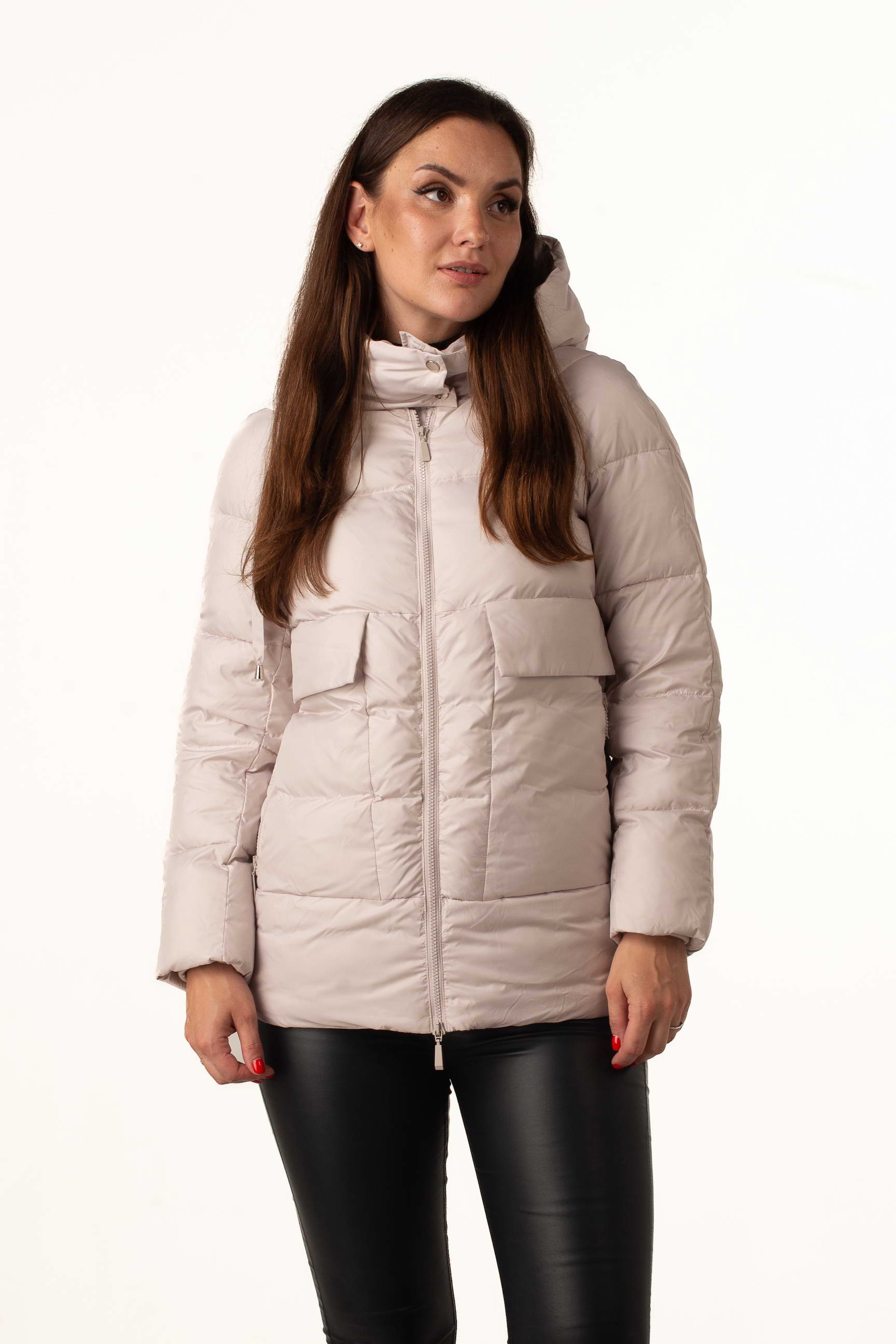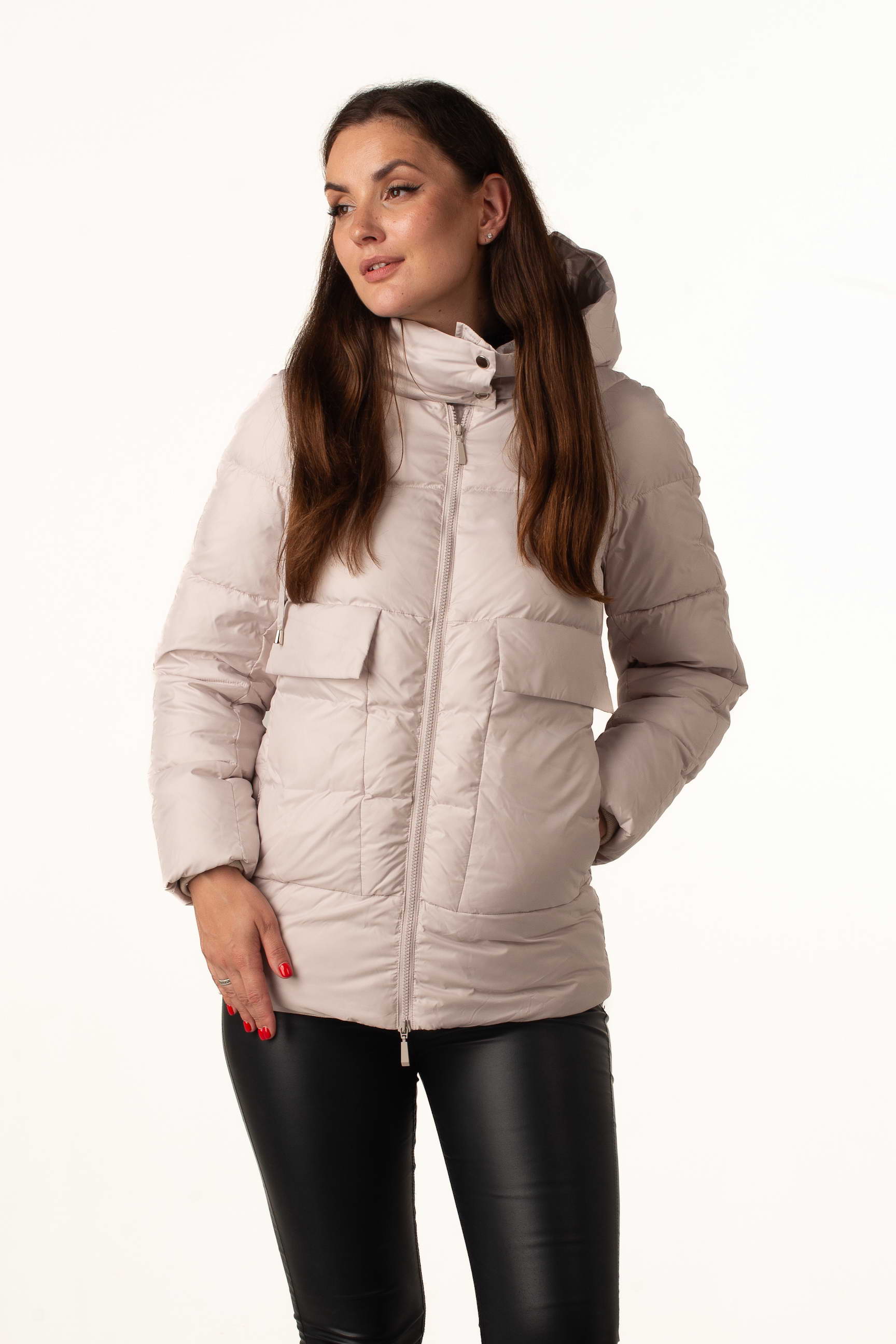 Бежевый женский биопуховик – современная и практичная модель для зимнего сезона, сочетающая комфорт, тепло и модный дизайн.