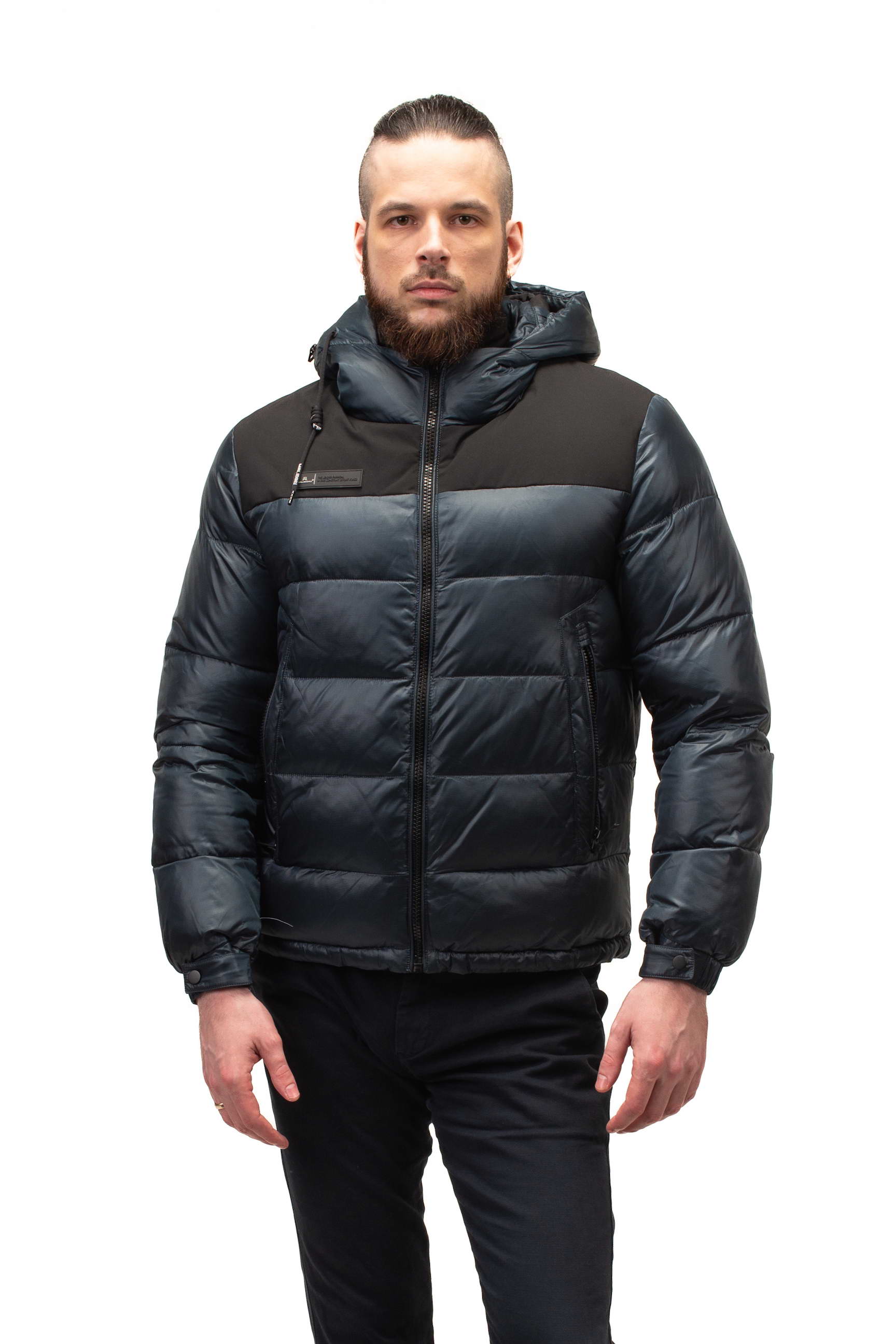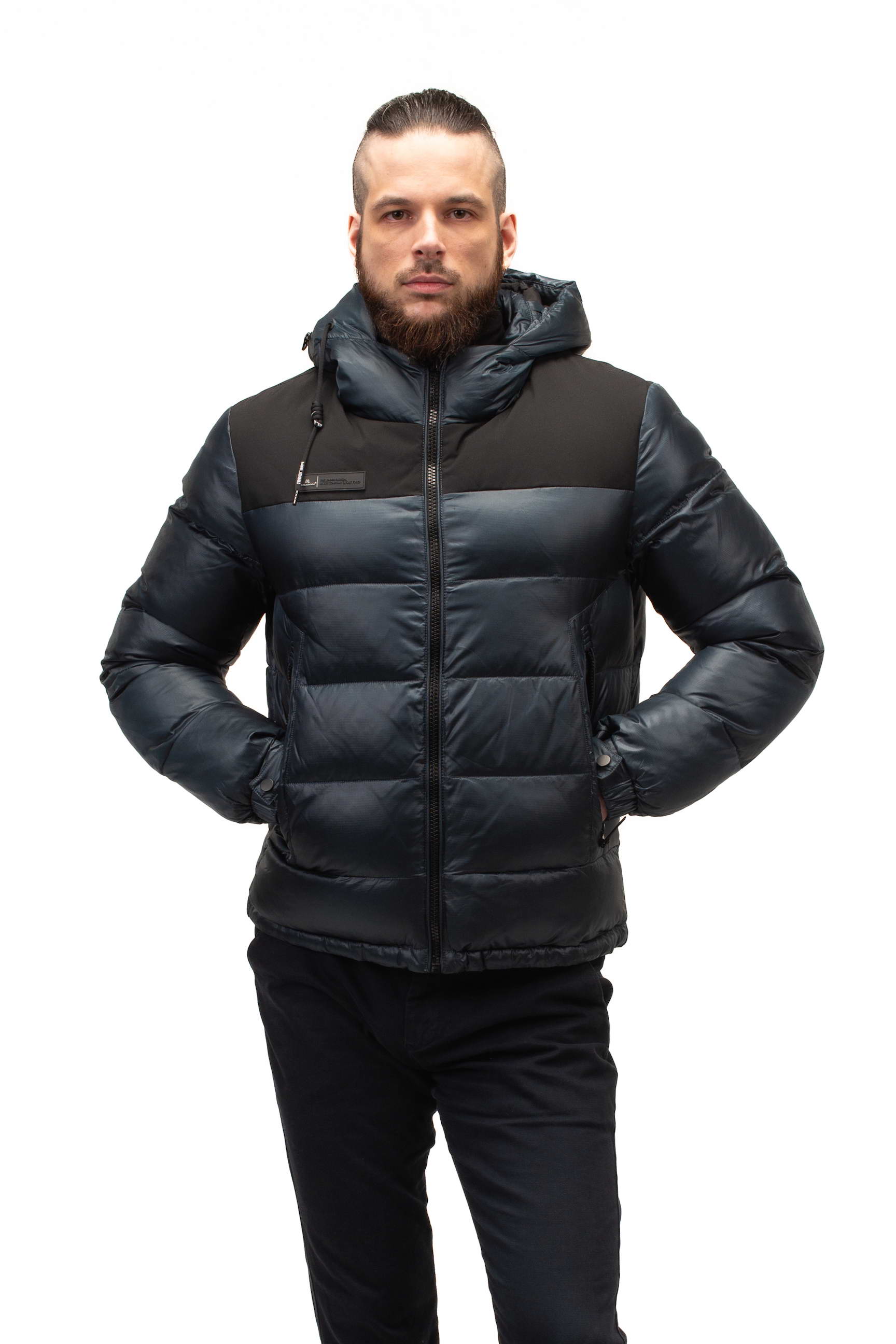 Контрастное сочетание цветов морская волна и чёрный придаёт изделию современный и динамичный вид. Чёрный верх добавляет сдержанности, а нижняя часть цвета морская волна создаёт стильный акцент, выделяющий модель среди классических зимних курток.