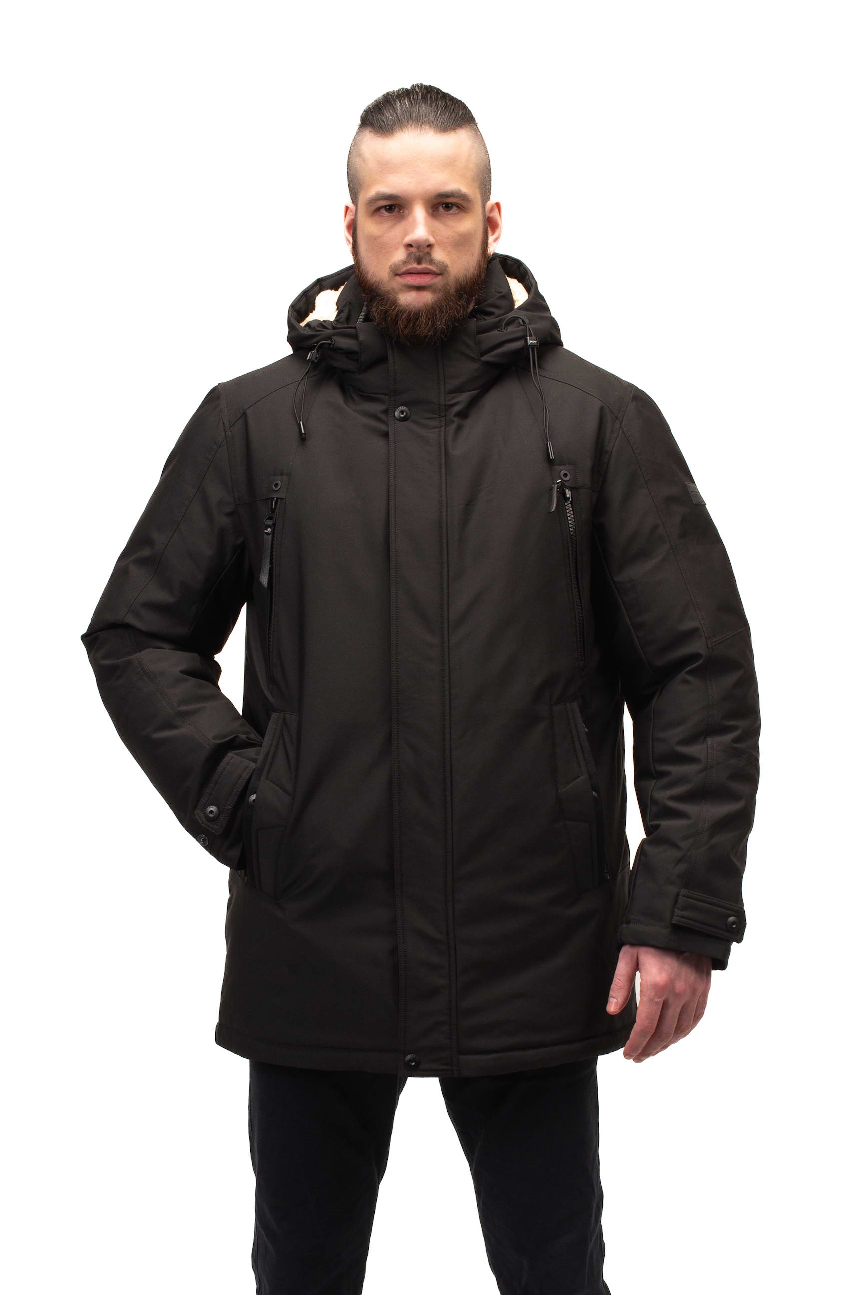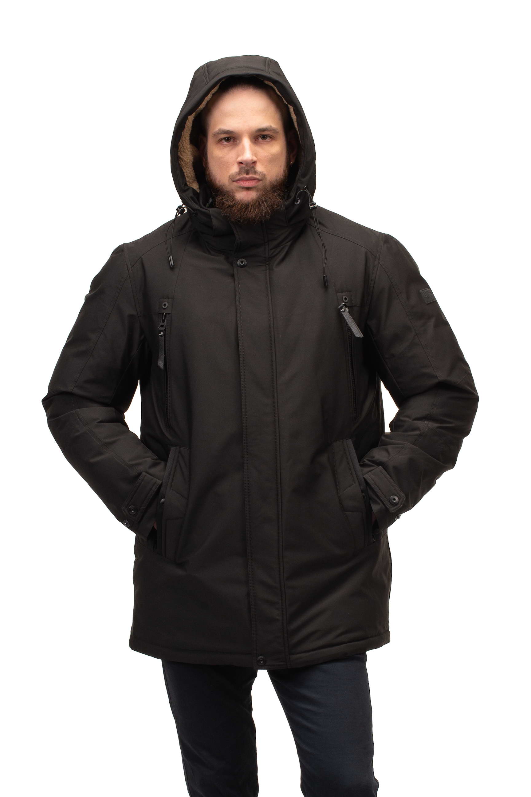 Застёжка на молнию с планкой усиливает защиту от холода и ветра, обеспечивая дополнительную герметичность. Боковые и нагрудные карманы повышают практичность модели, позволяя удобно хранить необходимые вещи.