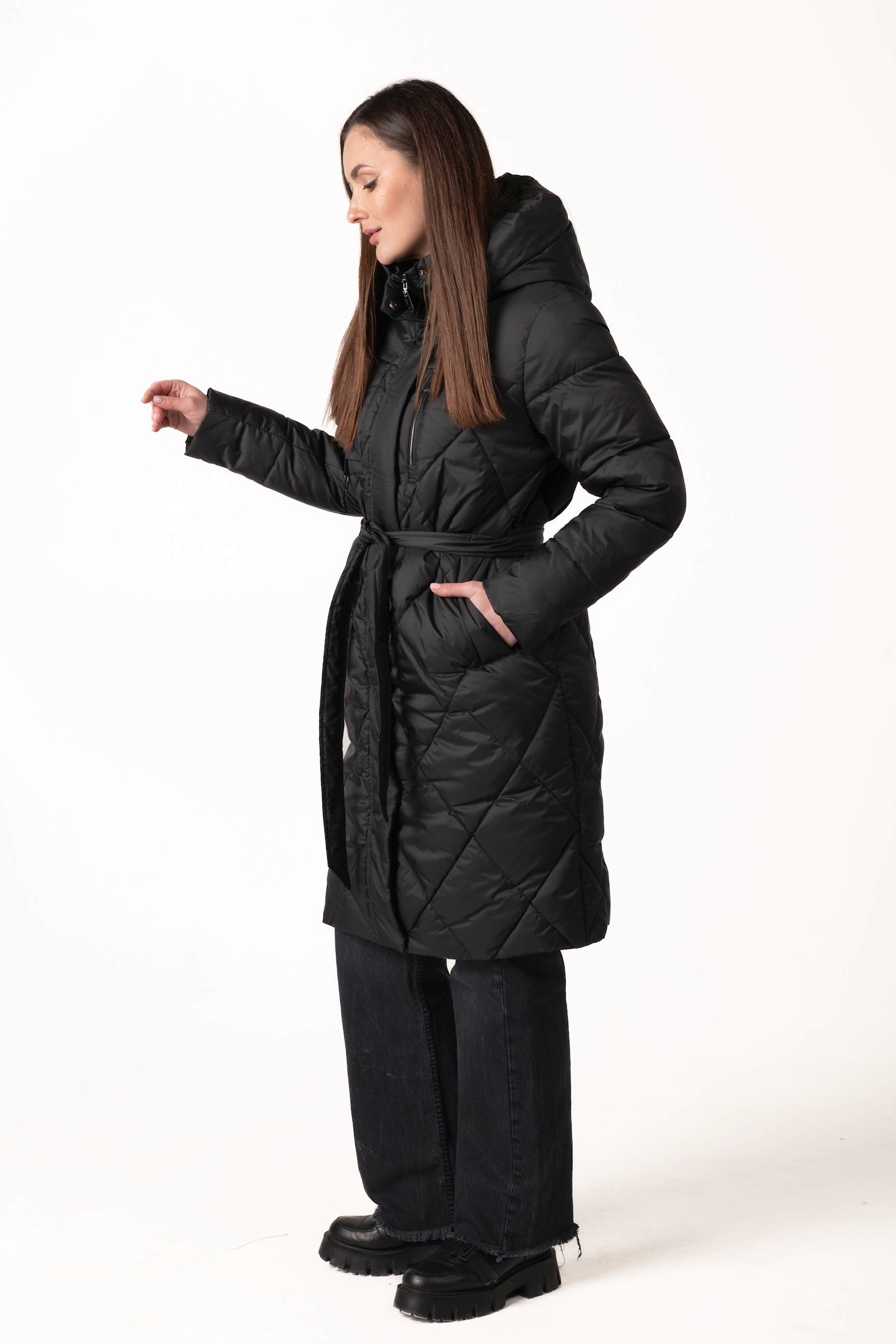 Элегантный женский биопуховик чёрного цвета — это удачное сочетание классического дизайна и современной функциональности для зимнего сезона. Ромбовидная стёжка придаёт модели выразительность и подчёркивает силуэт, делая пуховик стильным элементом повседневного гардероба. Если вы ищете, где купить женский зимний пуховик, эта модель станет универсальным выбором для холодного времени года.