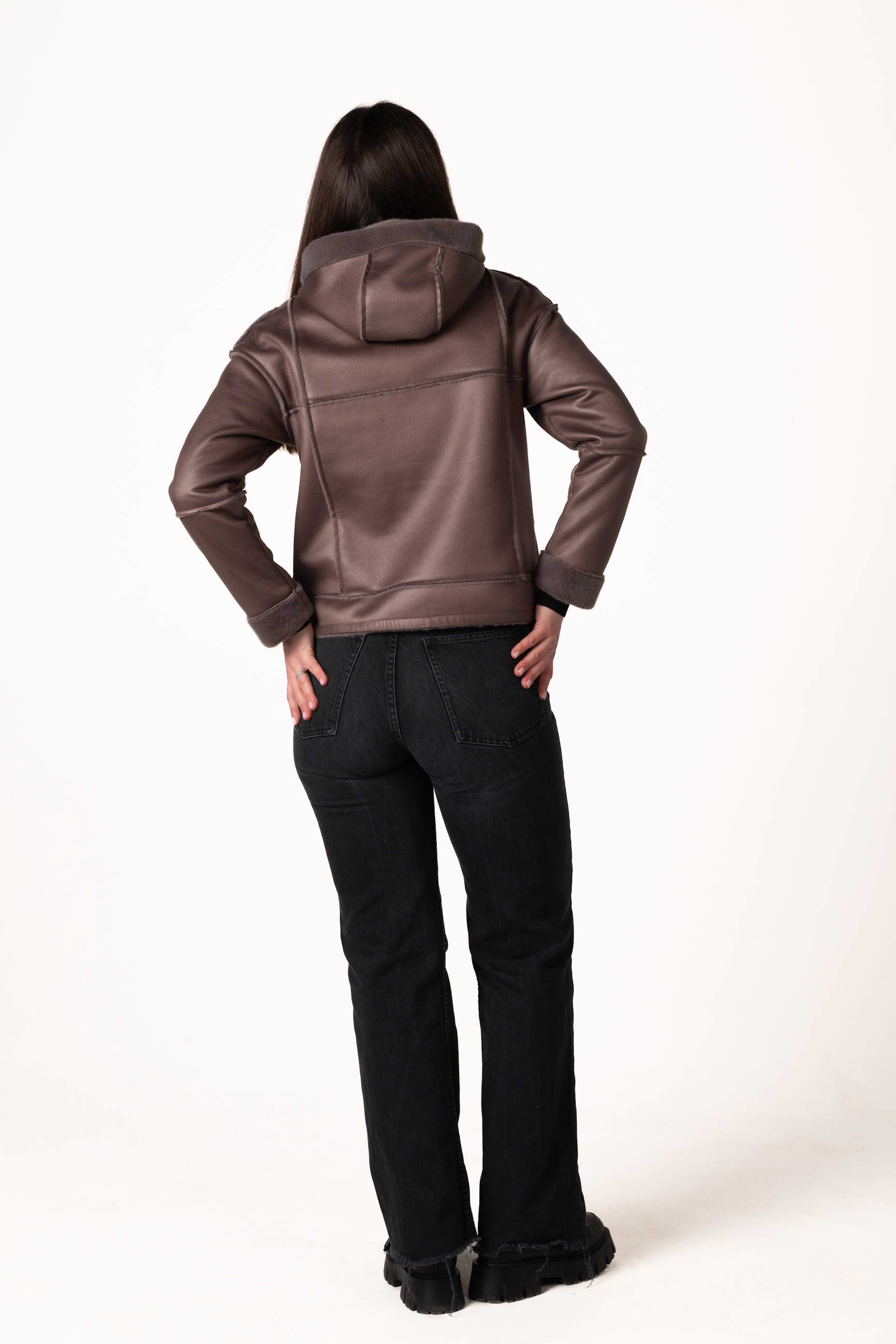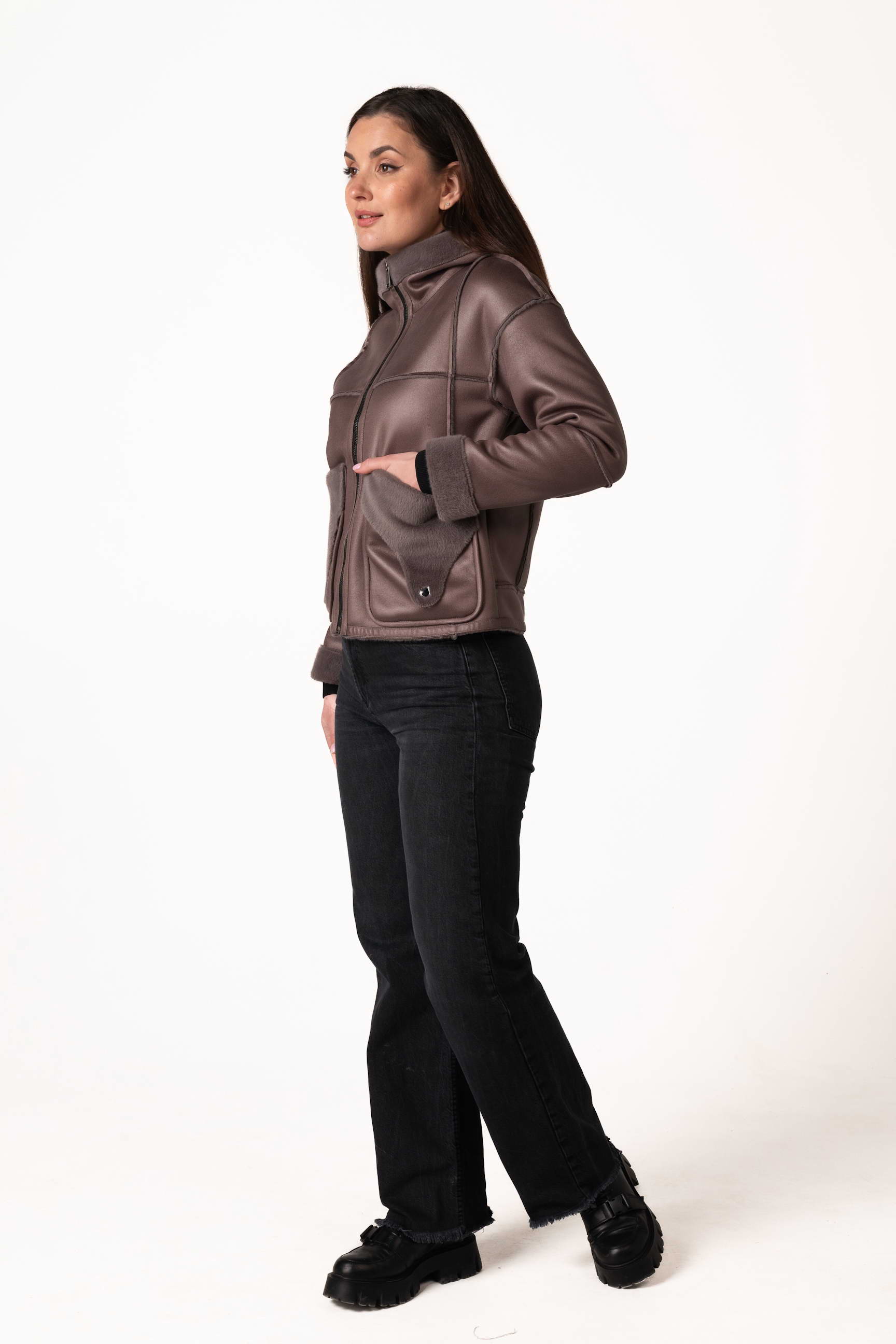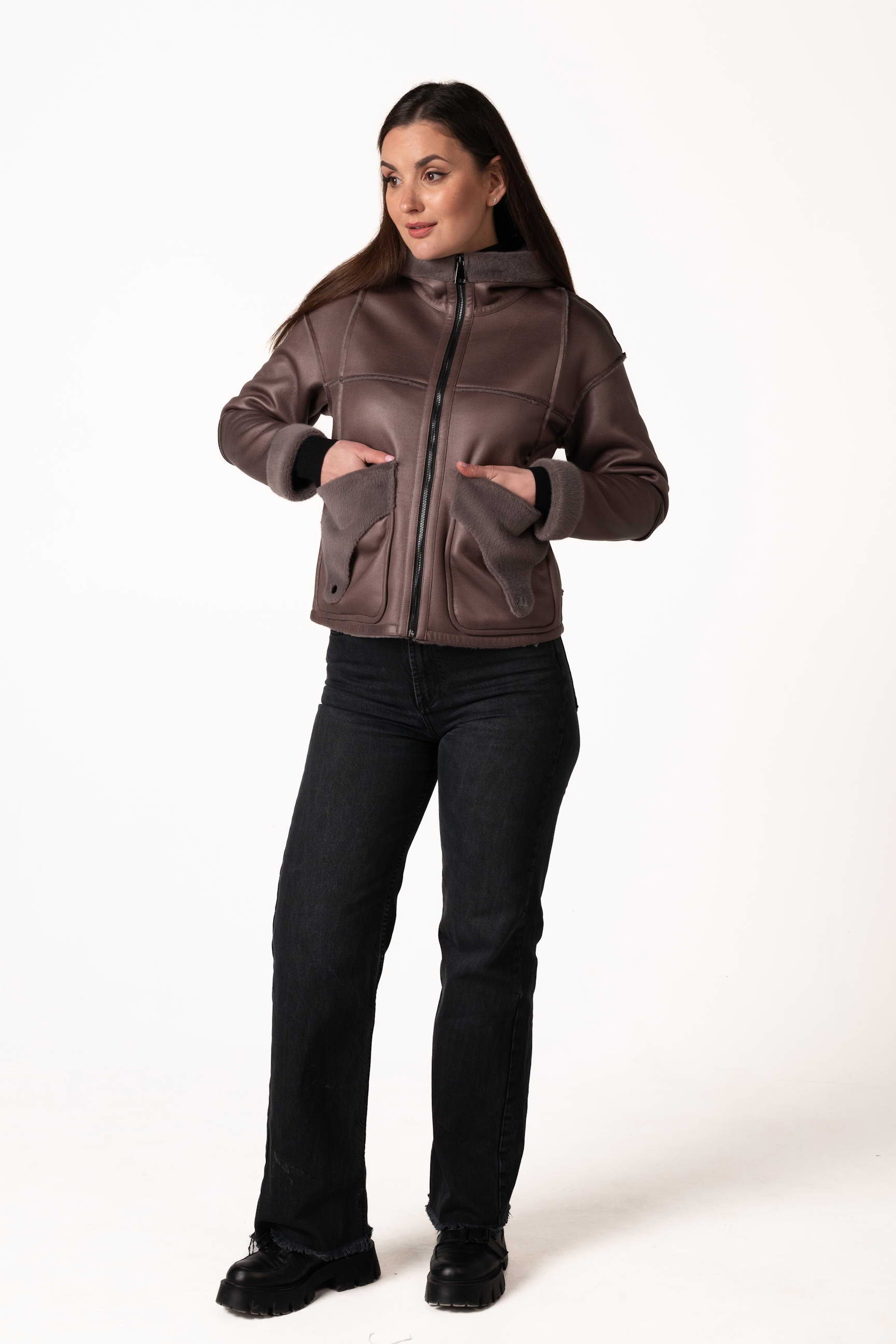 Молния делает ношение лёгким и удобным, а накладные карманы, декорированные экомехом, добавляют тепла и изысканный акцент, одновременно обеспечивая практичность для мелких вещей или согревания рук.