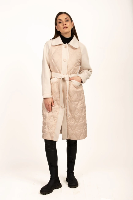 Цей жіночий біопуховик — справжня знахідка для тих, хто шукає не просто верхній одяг, а стильне рішення для весни та осені. Модель виконана в ніжному молочному кольорі, який додає образу свіжості та жіночності. Поєднання плащової тканини та кашеміру створює приємну на дотик фактуру, а утеплювач біопух забезпечує легке, але надійне збереження тепла. Такий демісезонний пуховик з поясом чудово підходить для міського стилю, подорожей або ділових образів. Основні характеристики: Сезон: весна / осінь Матеріал: мікс плащівки та кашеміру — комфортний, м’який і стильний Утеплювач: біопух — легкий, теплий та екологічний Колір: вишуканий молочний — освіжає і пасує до всього Комір: відкладний — додає елегантності та підходить під шарф чи хустку Застібка: гудзики — класика, що завжди актуальна Кишені: накладні — об’ємні, зручні й додають стилю Пояс: підкреслює талію і формує жіночний силует Довжина: 105 см — ідеальна для прохолодної погоди Цей демісезонний жіночий пуховик з біопухом гармонійно поєднує комфорт, трендовий вигляд і функціональність. Його легко комбінувати з джинсами, класичними брюками чи сукнями. Чому варто купити демісезонну куртку з біопухом? - Легка, тепла і м’яка на дотик - Стильне поєднання плащовки та кашеміру - Пояс формує виразний силует - Колір та фасон — універсальні для будь-якого гардеробу Замовляй жіночий біопуховик кольору молоко вже зараз — зустрічай міжсезоння з комфортом та елегантністю!
