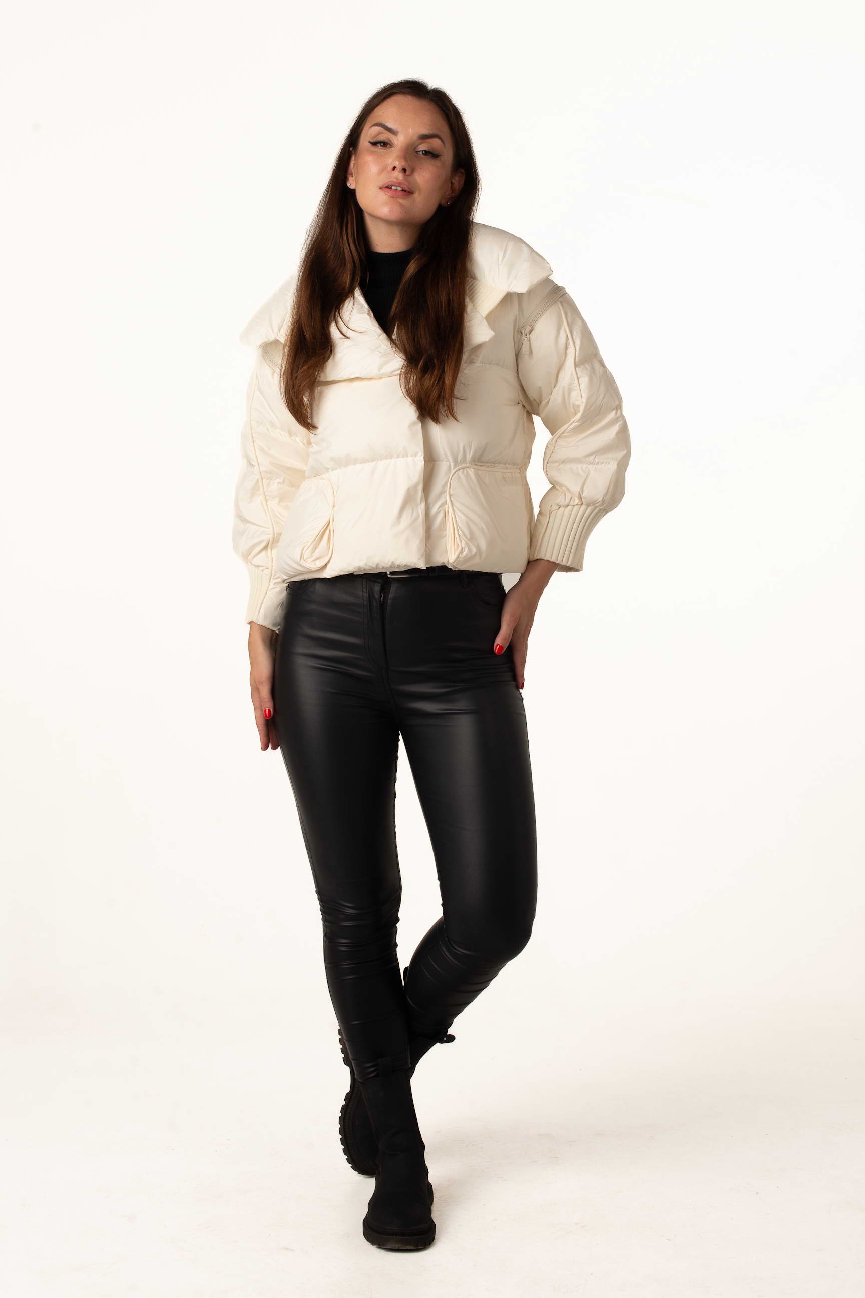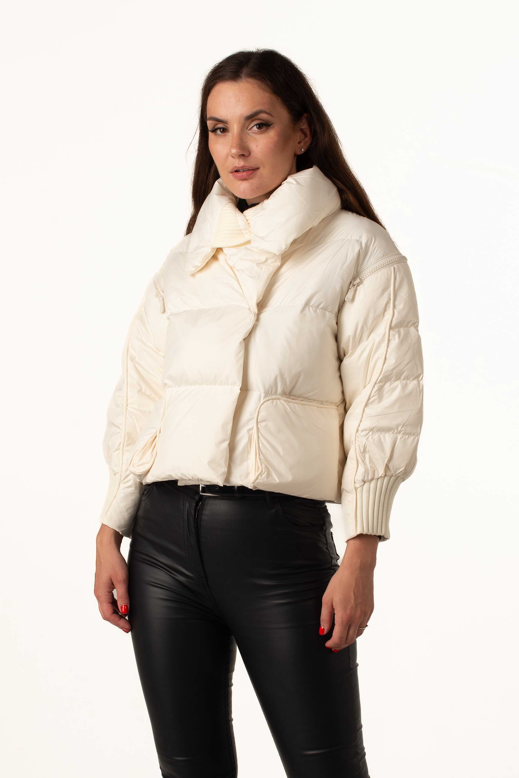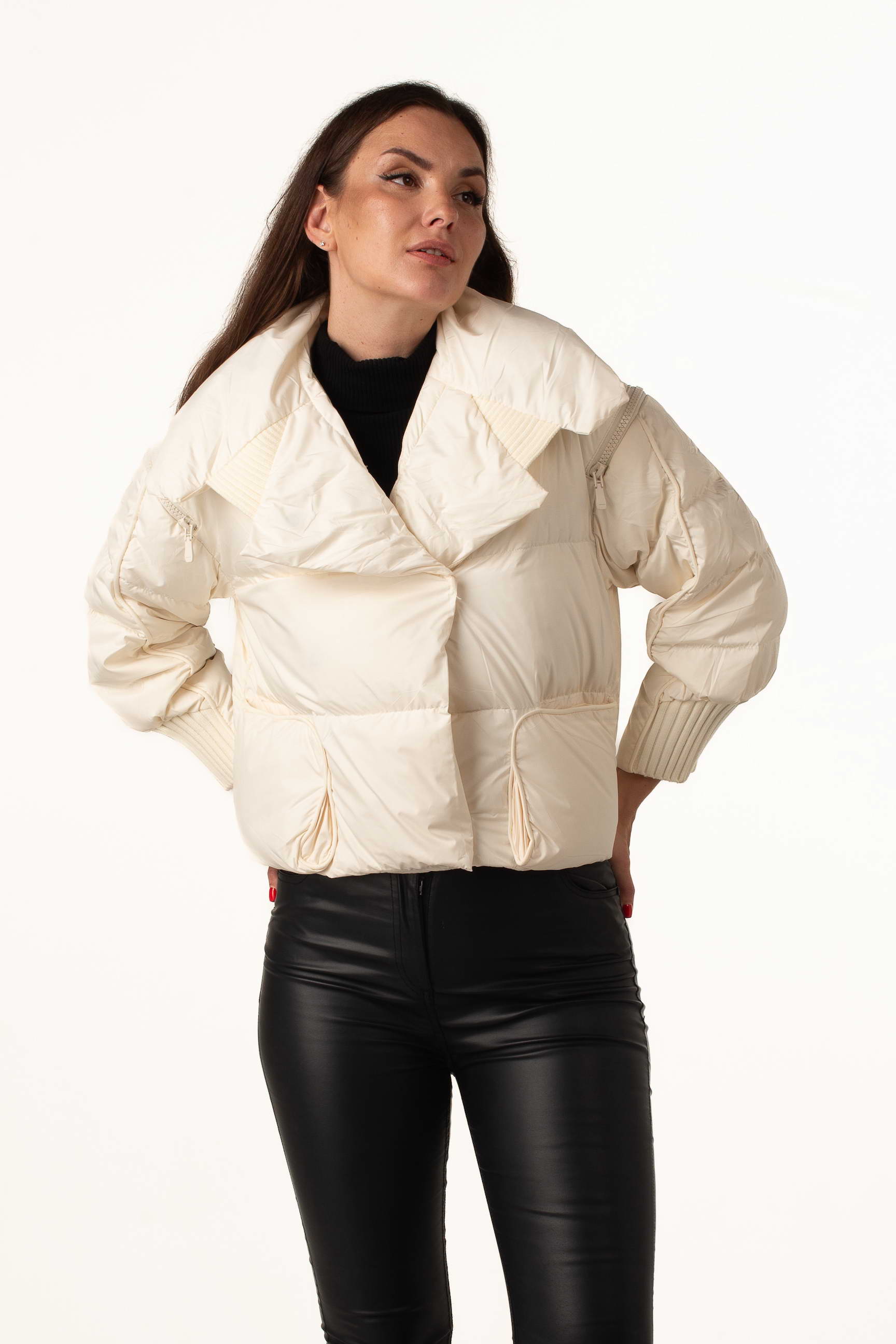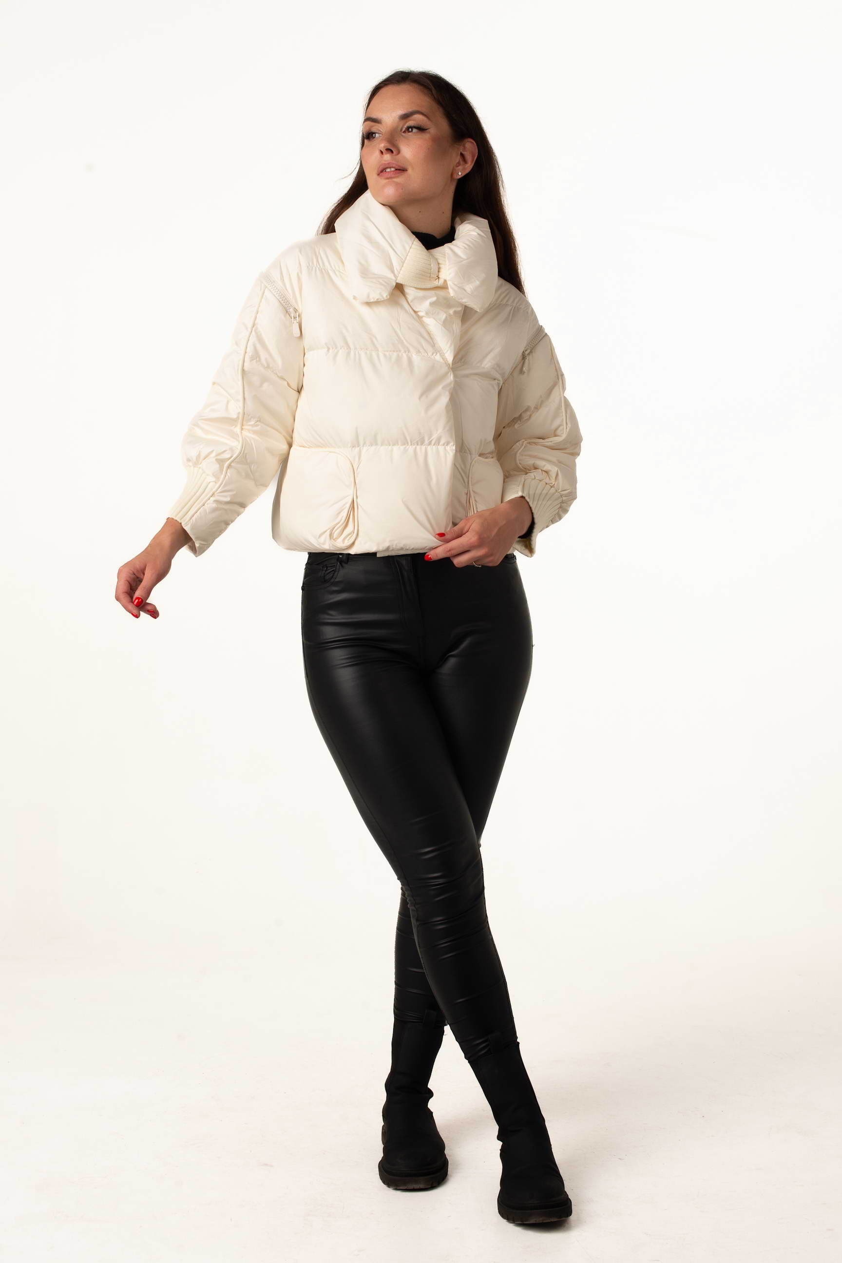 Молочный пуховик с натуральным пухом сочетает лёгкость, тепло и стиль. Он подчёркивает элегантность образа и подходит для любого зимнего гардероба.