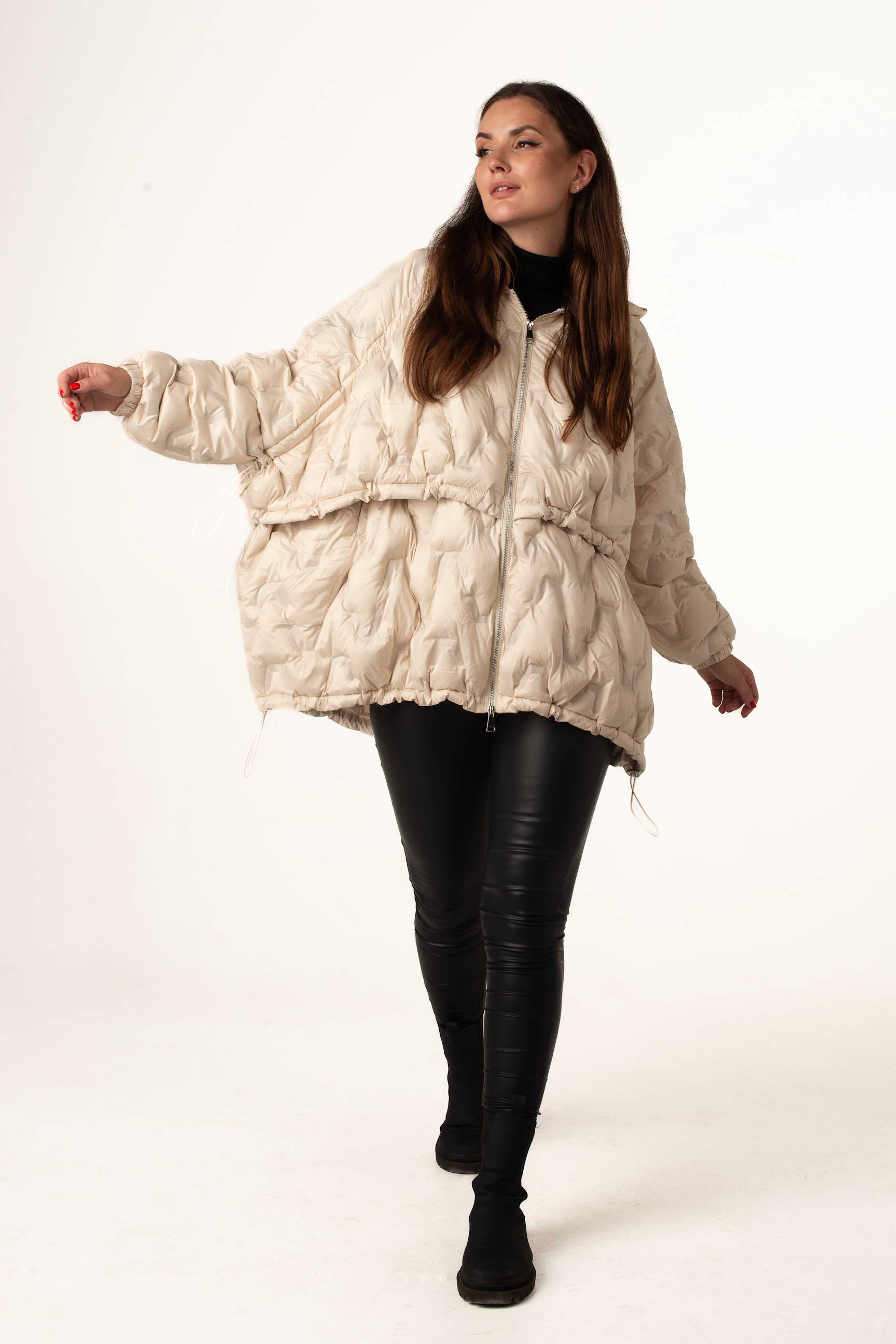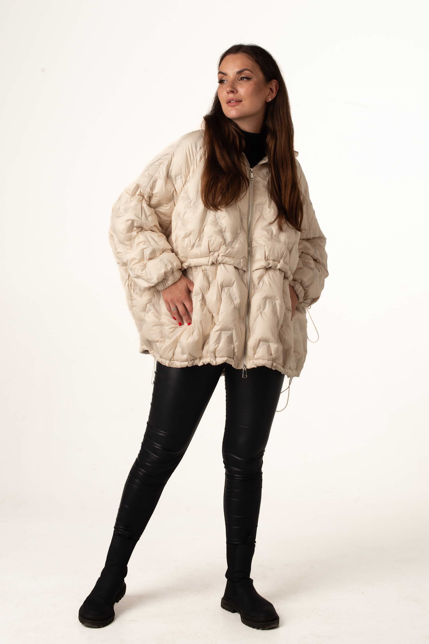 Молочный пуховик оверсайз сочетает тепло и легкость с модным дизайном. Он идеально подходит для городского стиля, прогулок и активного отдыха зимой.