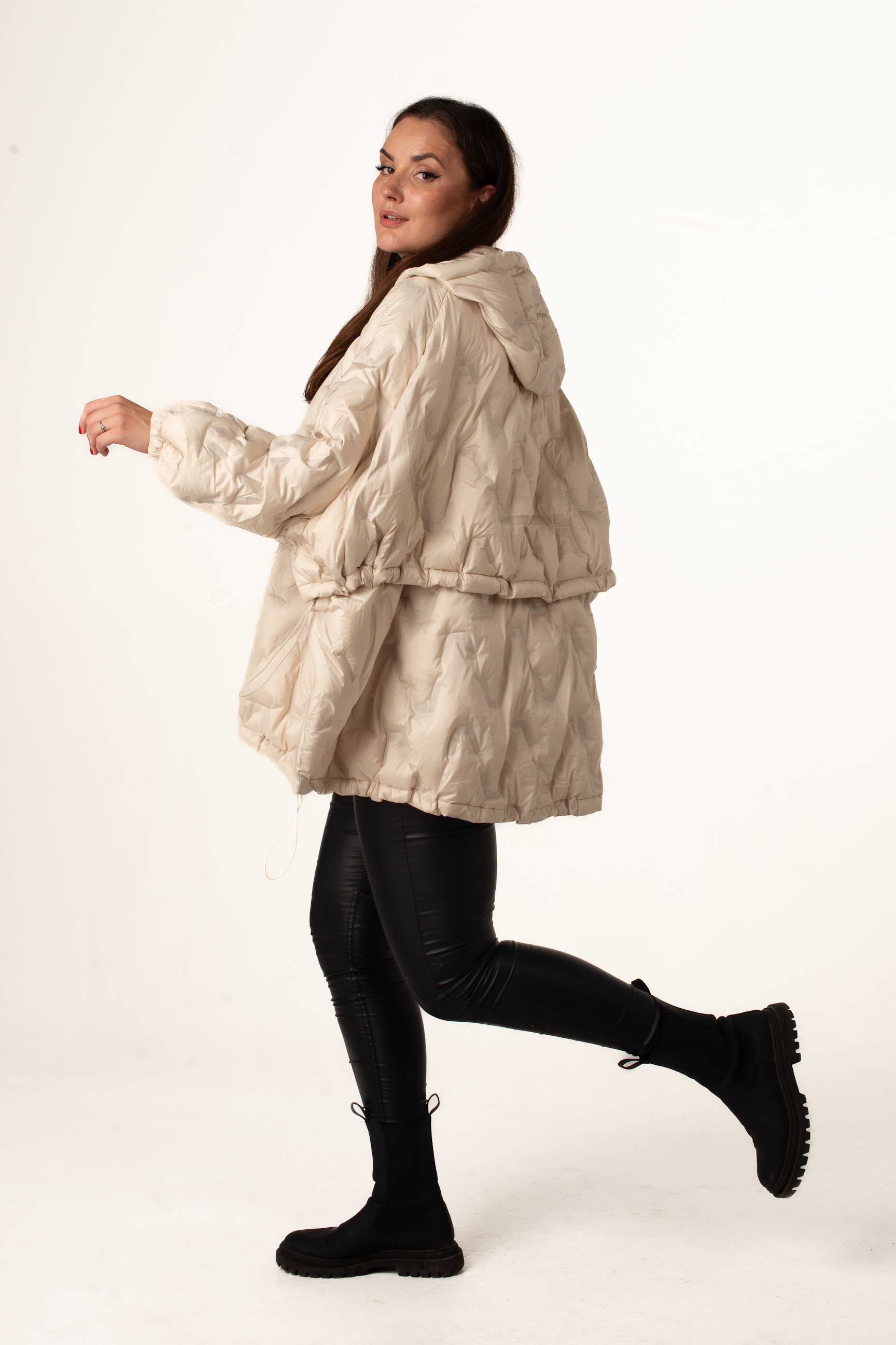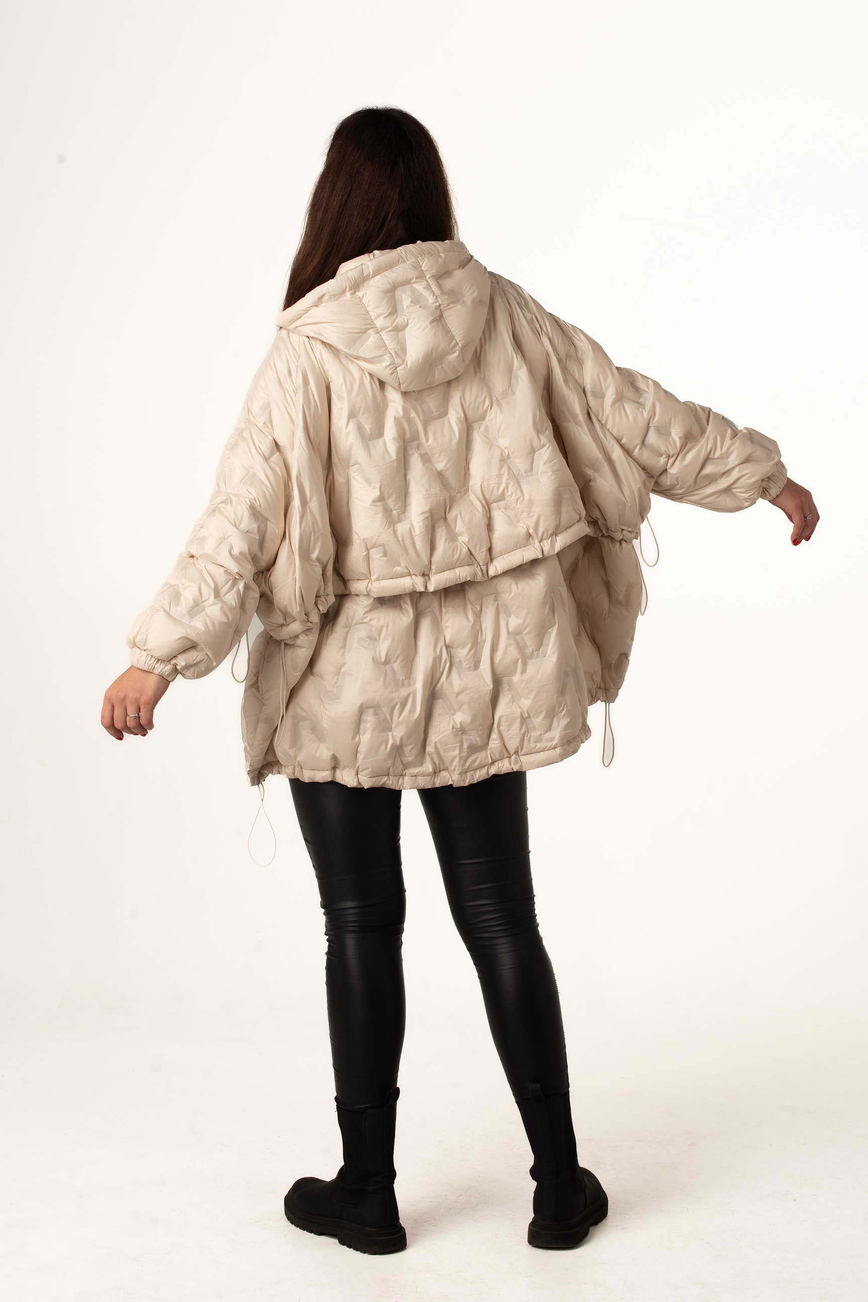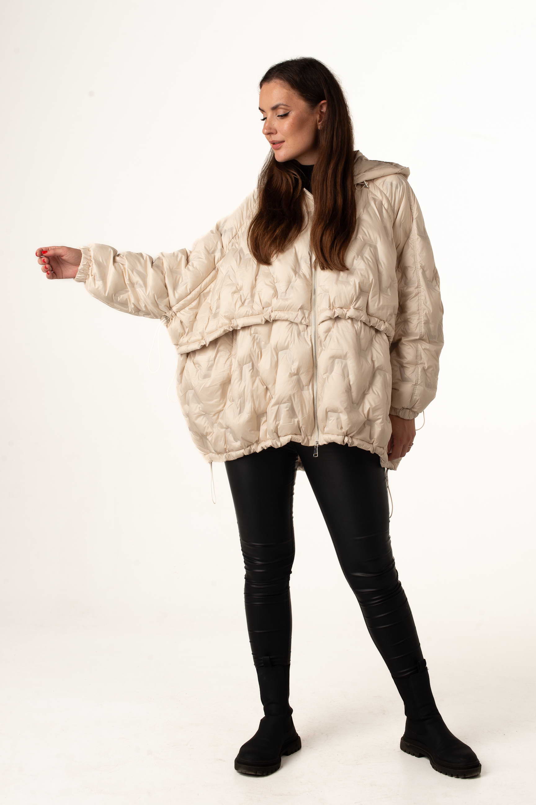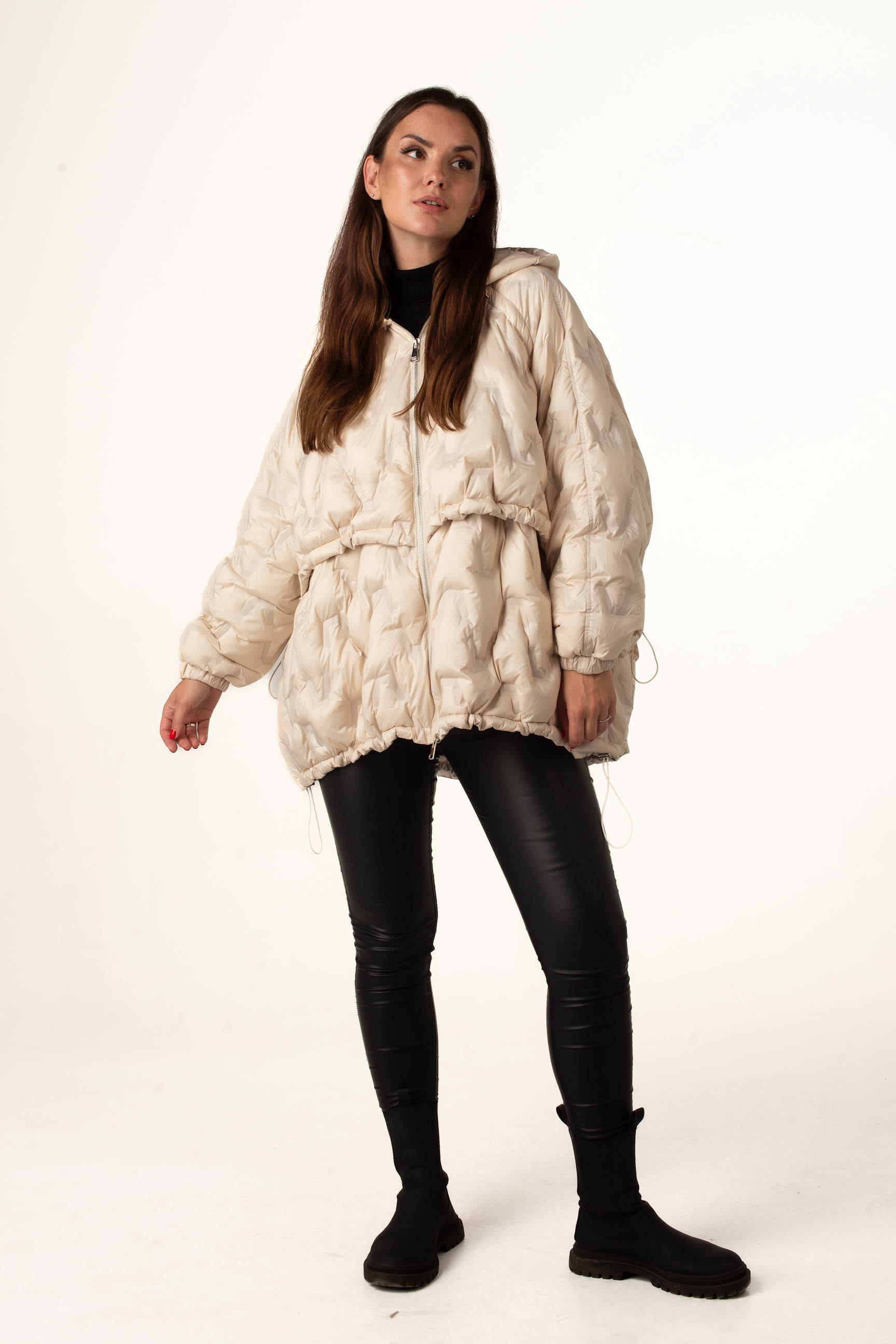Молочный женский пуховик оверсайз с натуральным пухом создан для тех, кто ценит комфорт, тепло и модный силуэт. Модель сочетает легкость и практичность, а капюшон с кулисками обеспечивает дополнительную защиту от ветра и снега.