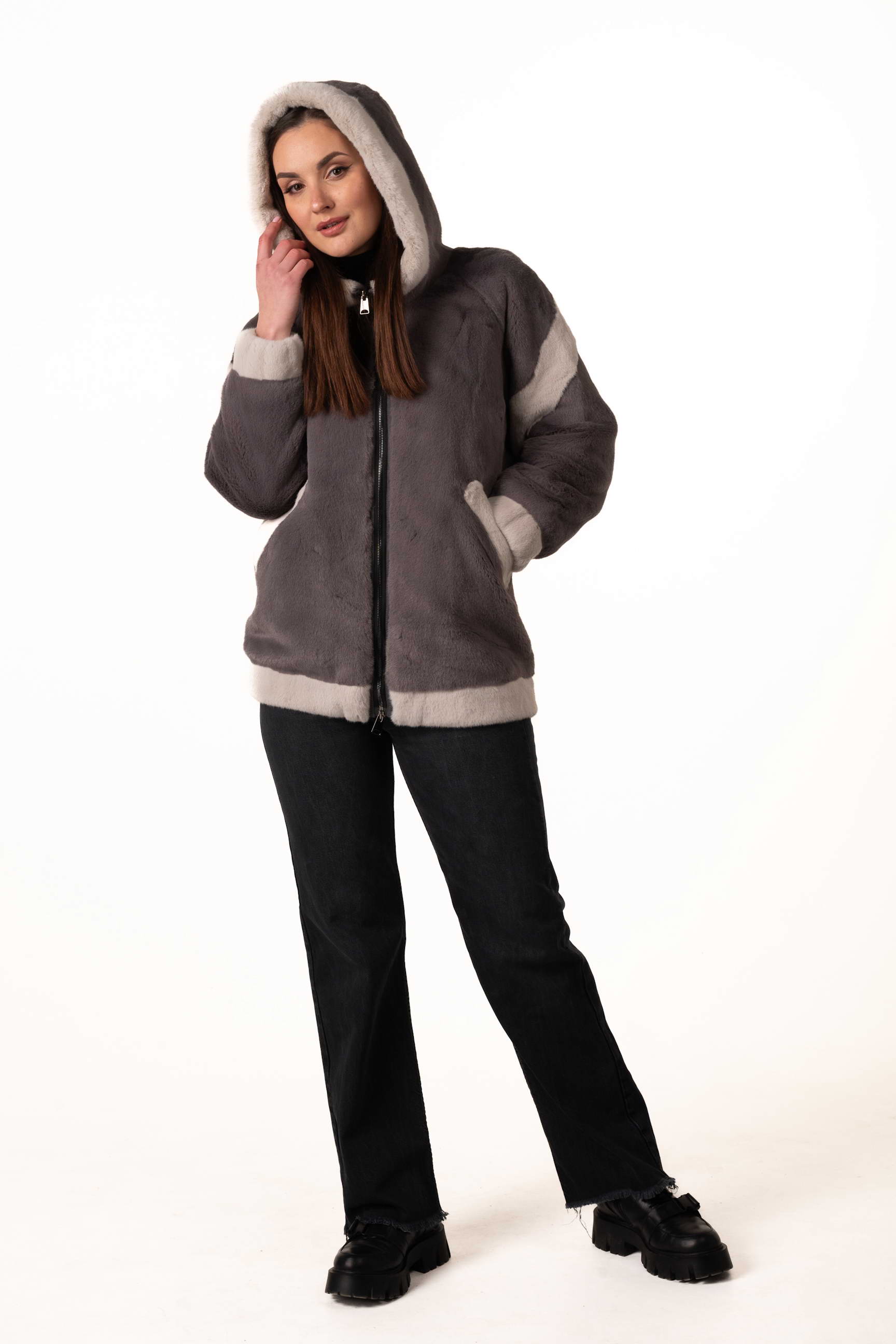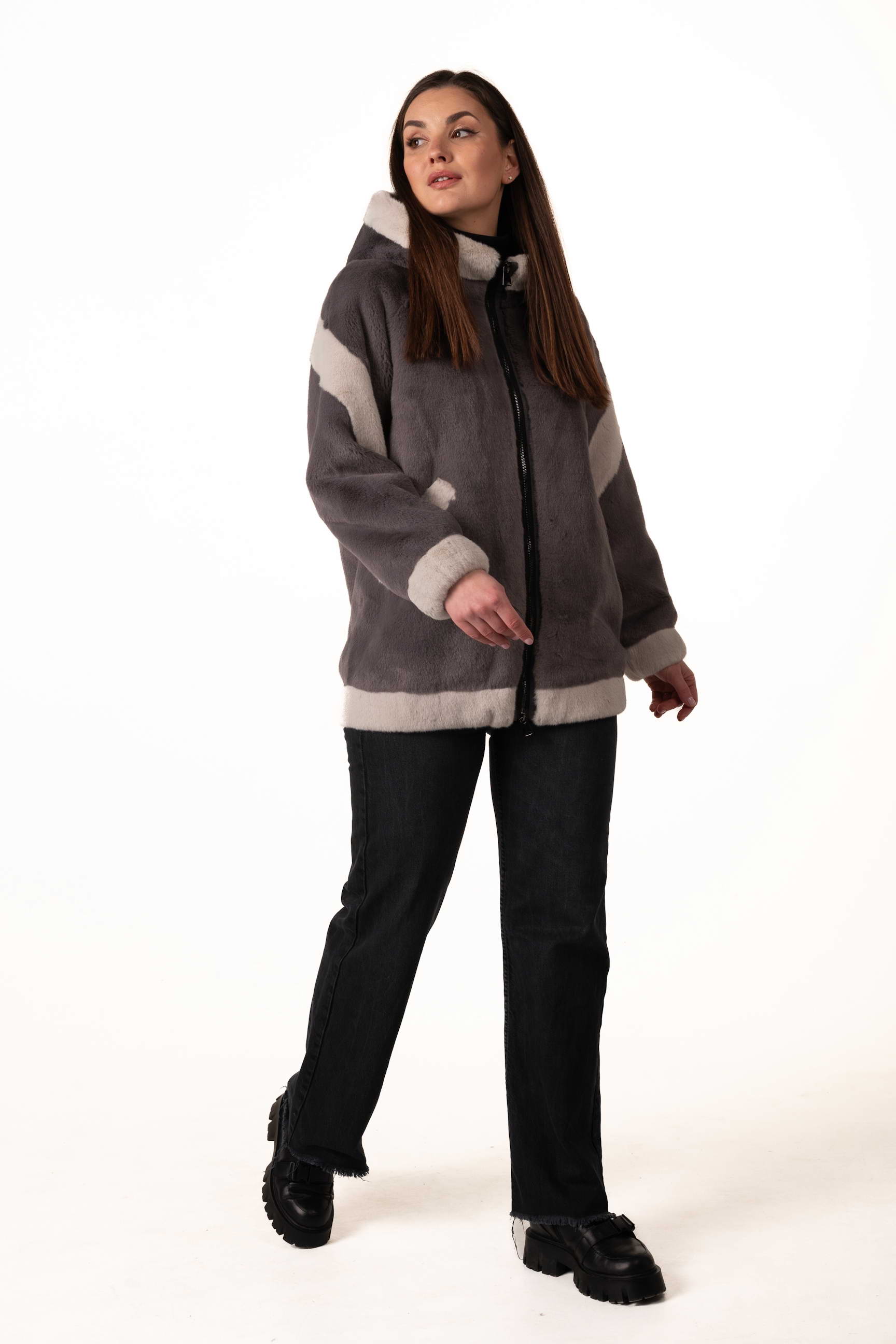 Длина 75 см делает шубу компактной, лёгкой и универсальной: она подходит как для повседневной носки в городе, так и для прогулок или встреч в холодную погоду.