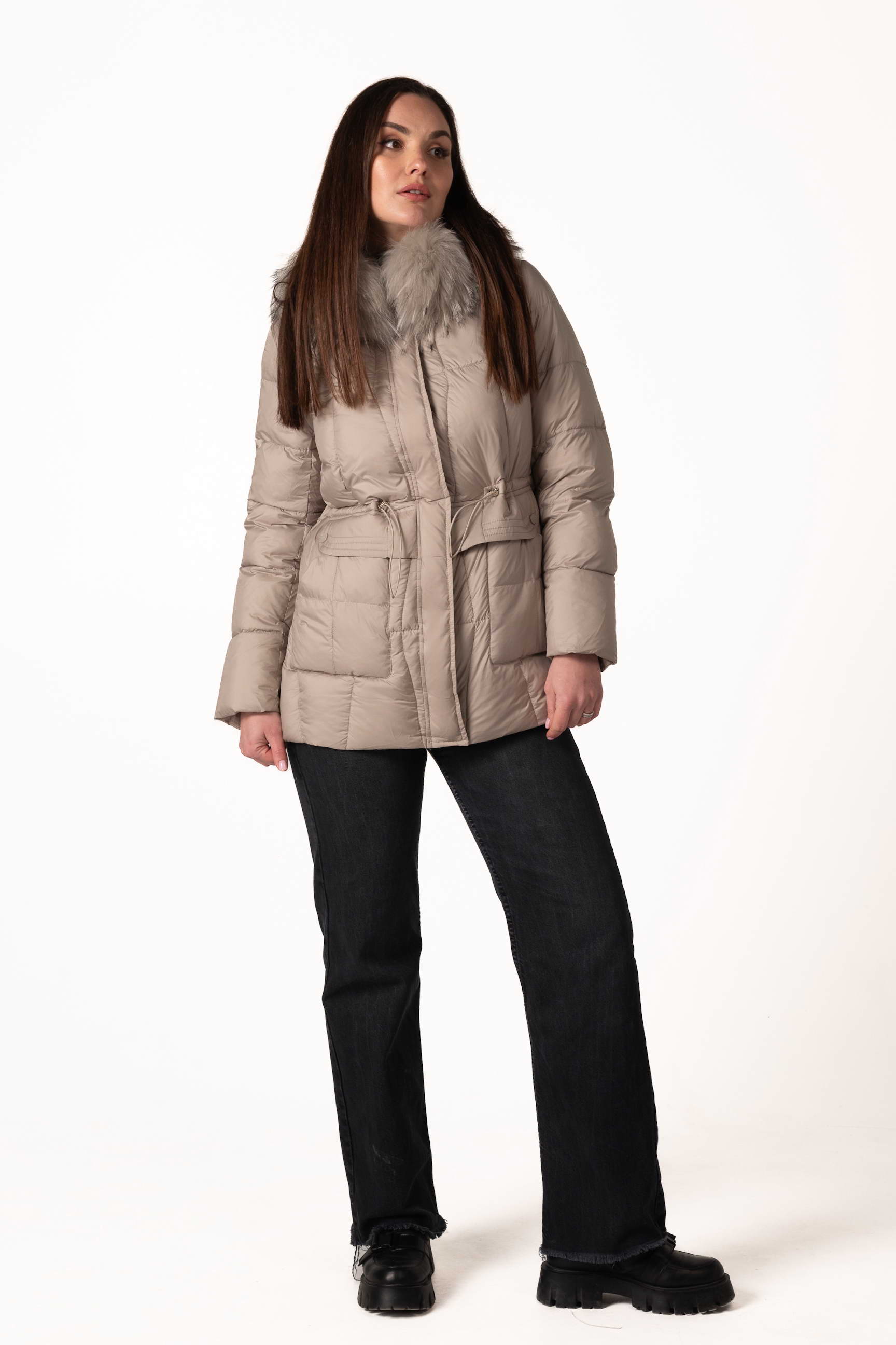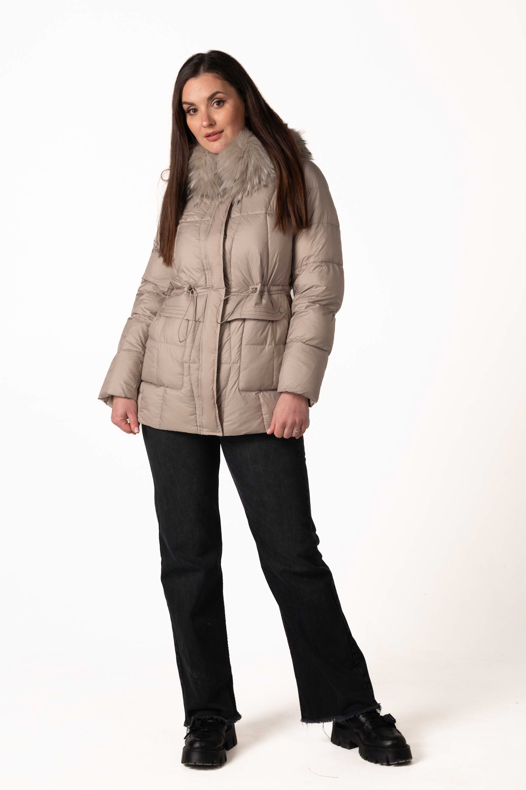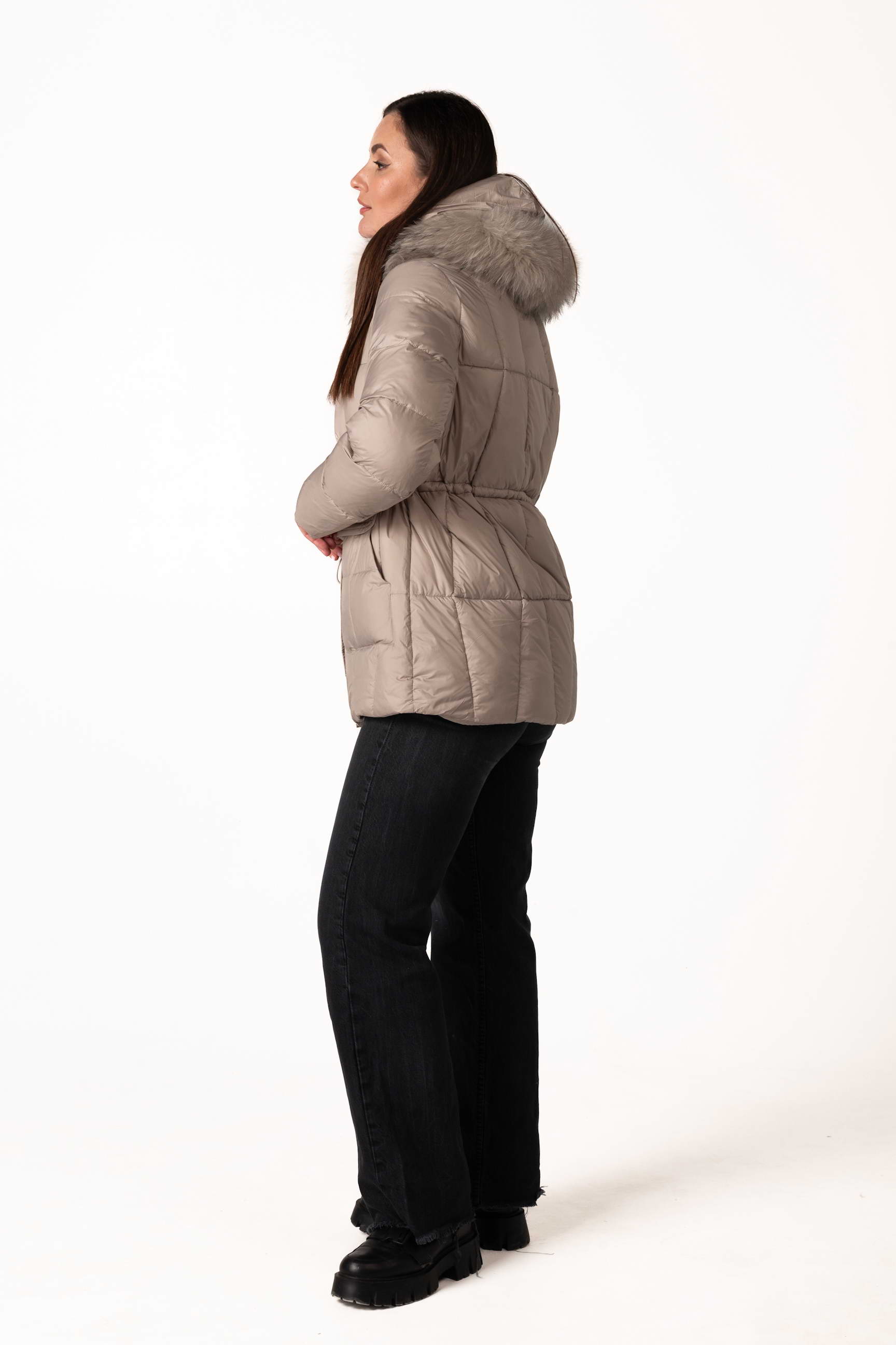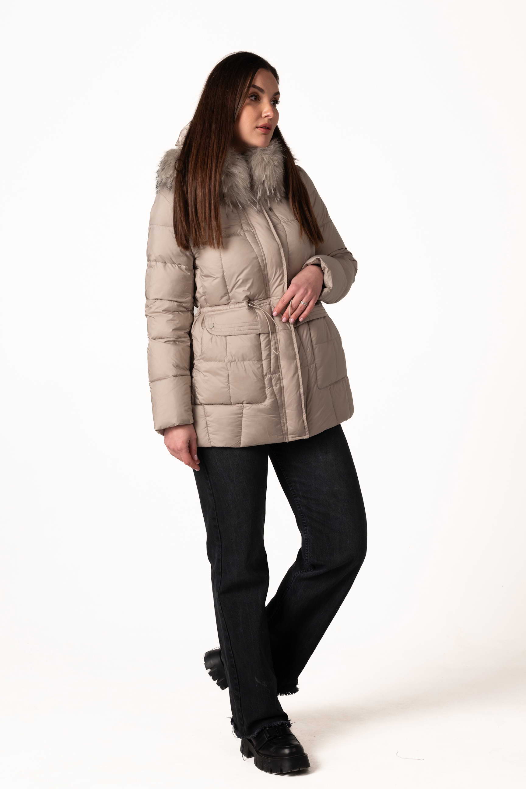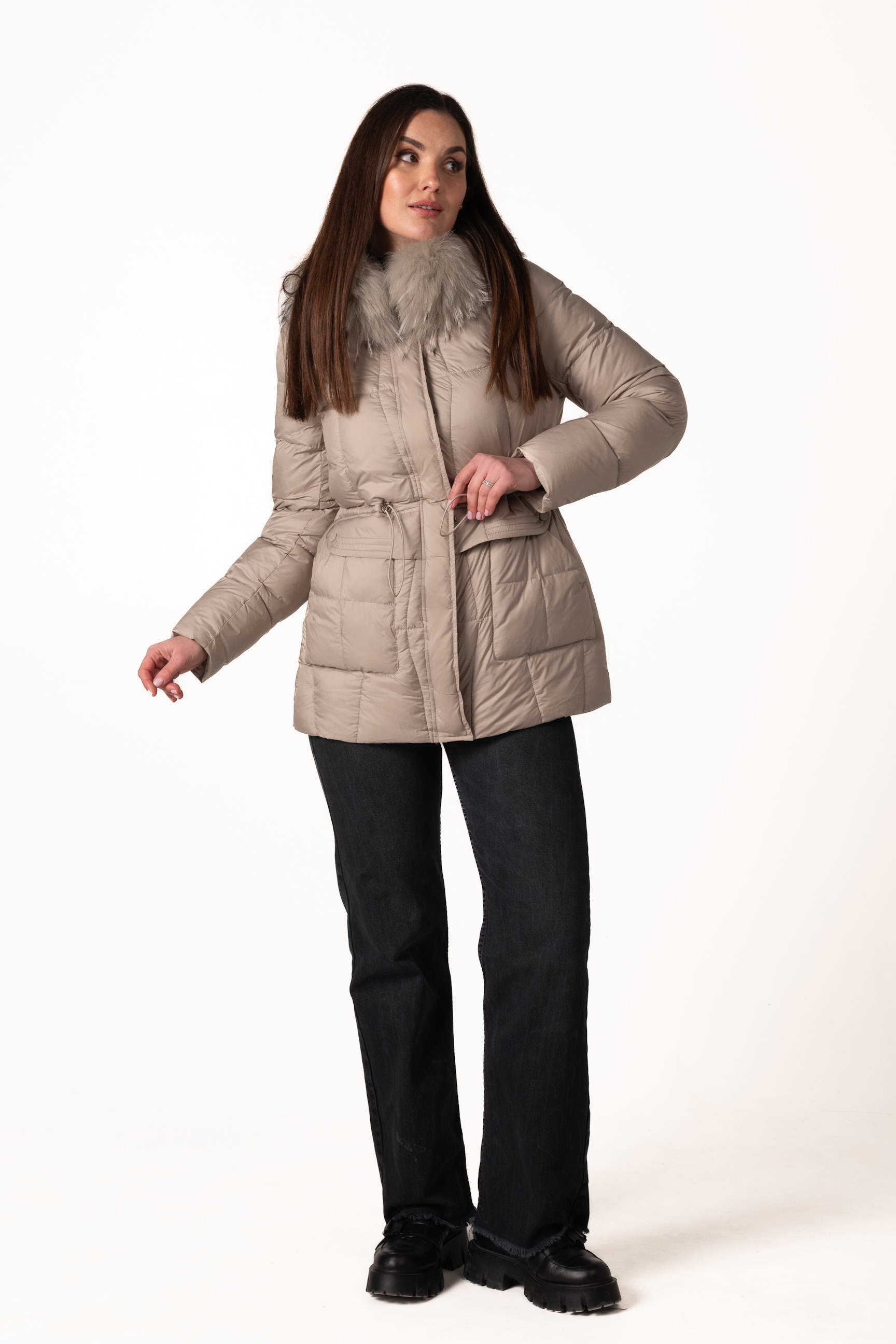 Стильный серый женский биопуховик — современная, теплая и практичная модель для зимнего сезона. Отстегивающийся капюшон с мехом енота и кулиска на талии позволяют регулировать посадку и создавать индивидуальный силуэт, а фигурная прострочка придает пуховику изысканный и современный вид. Если вы ищете, где купить женский зимний пуховик, эта модель станет идеальным выбором для повседневного ношения.