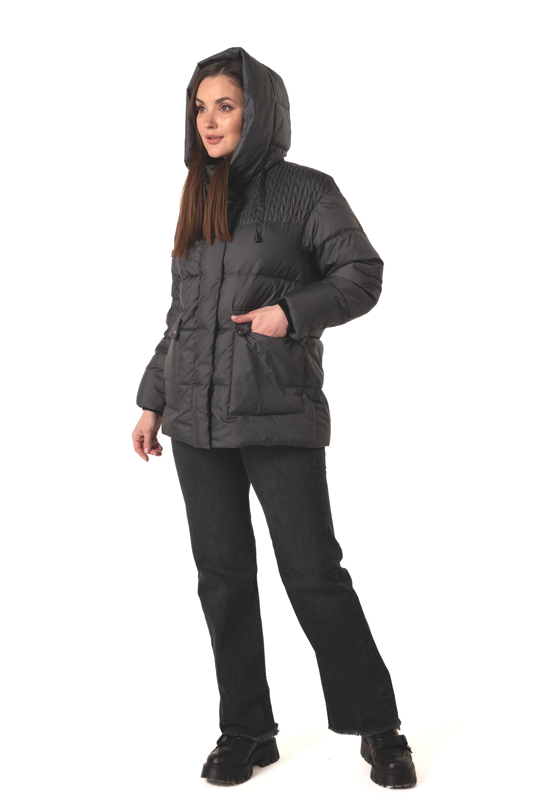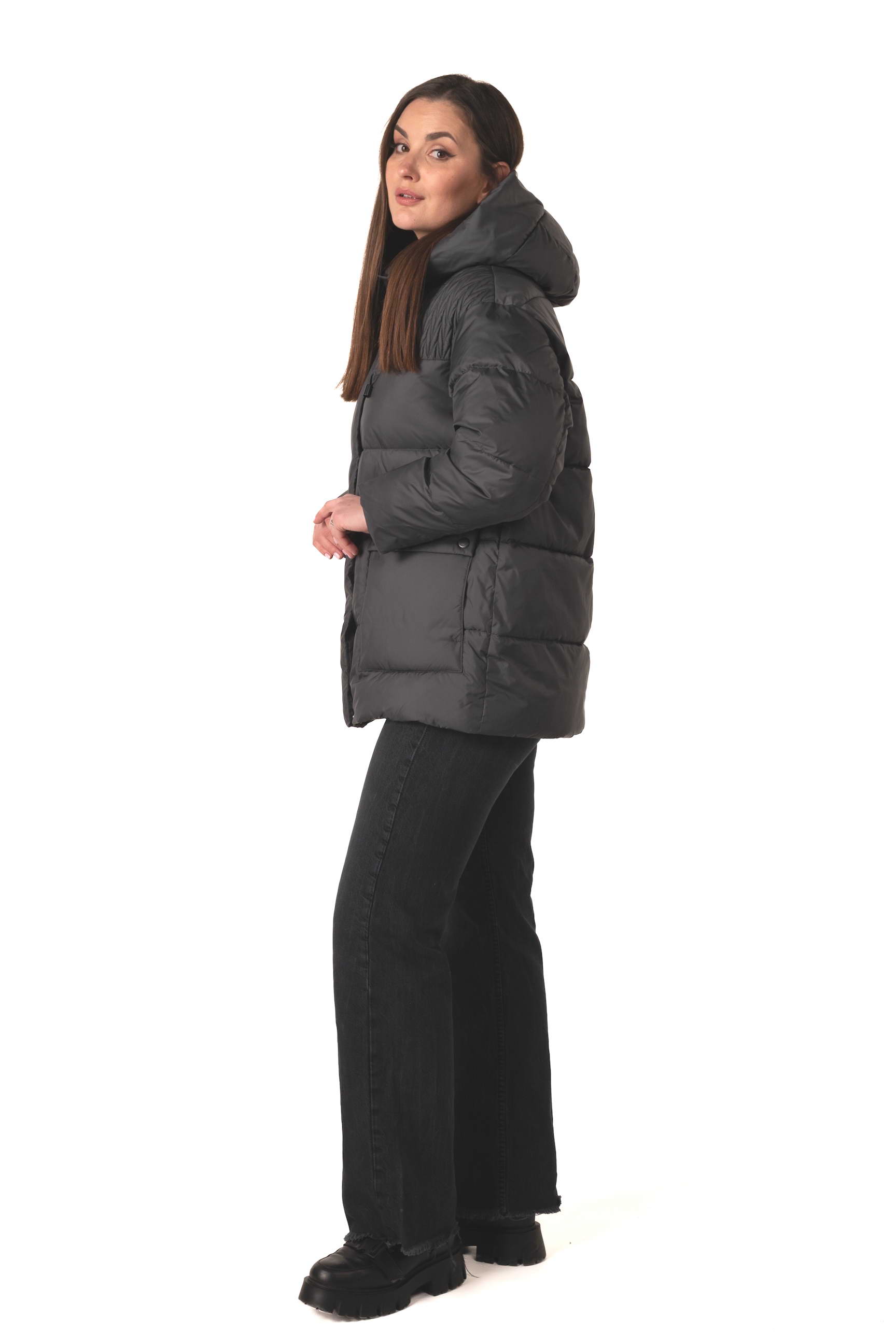 Темно-серый оттенок — практичный и элегантный выбор для холодного времени года. Он легко сочетается с любыми аксессуарами, добавляет образу строгости и современности.