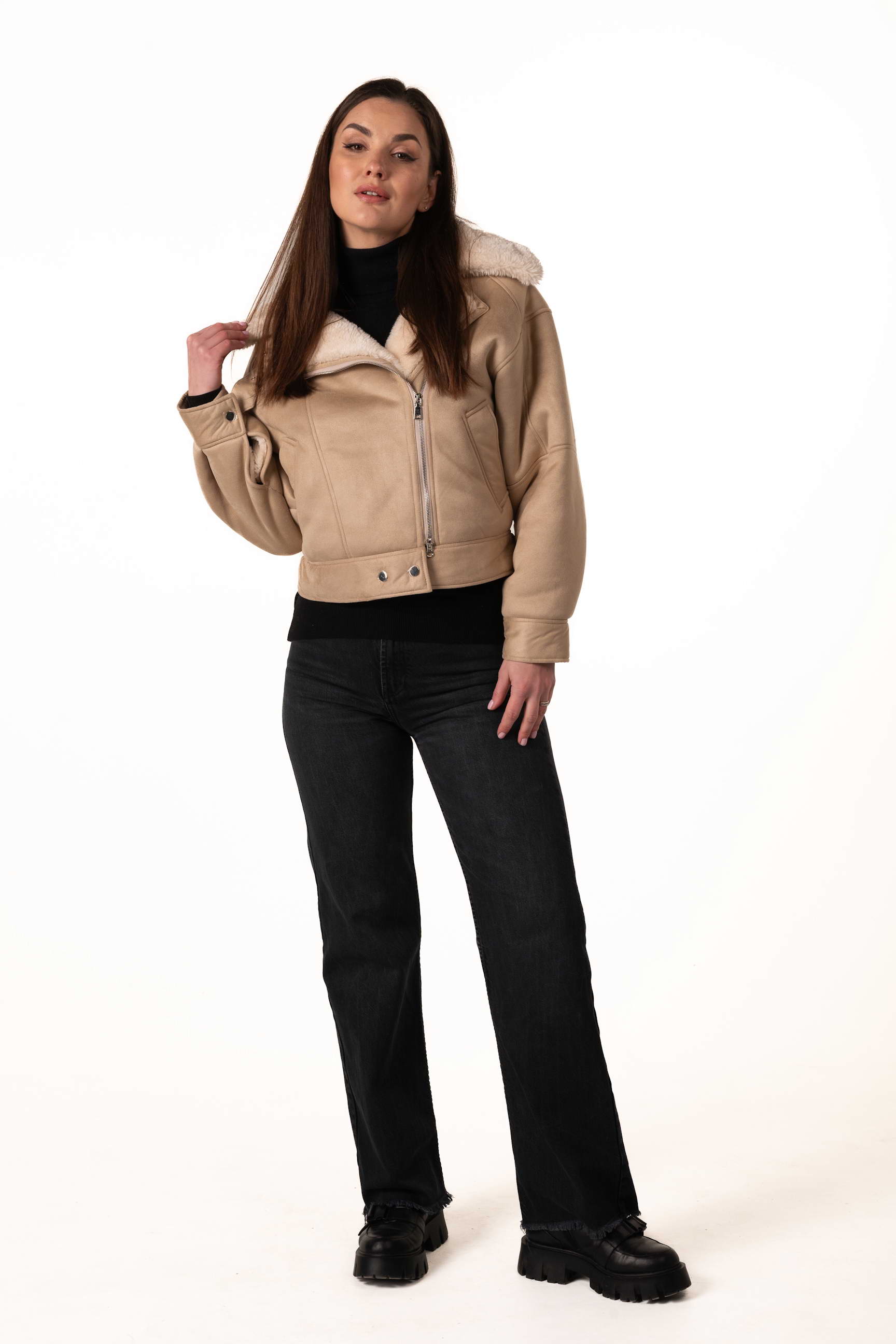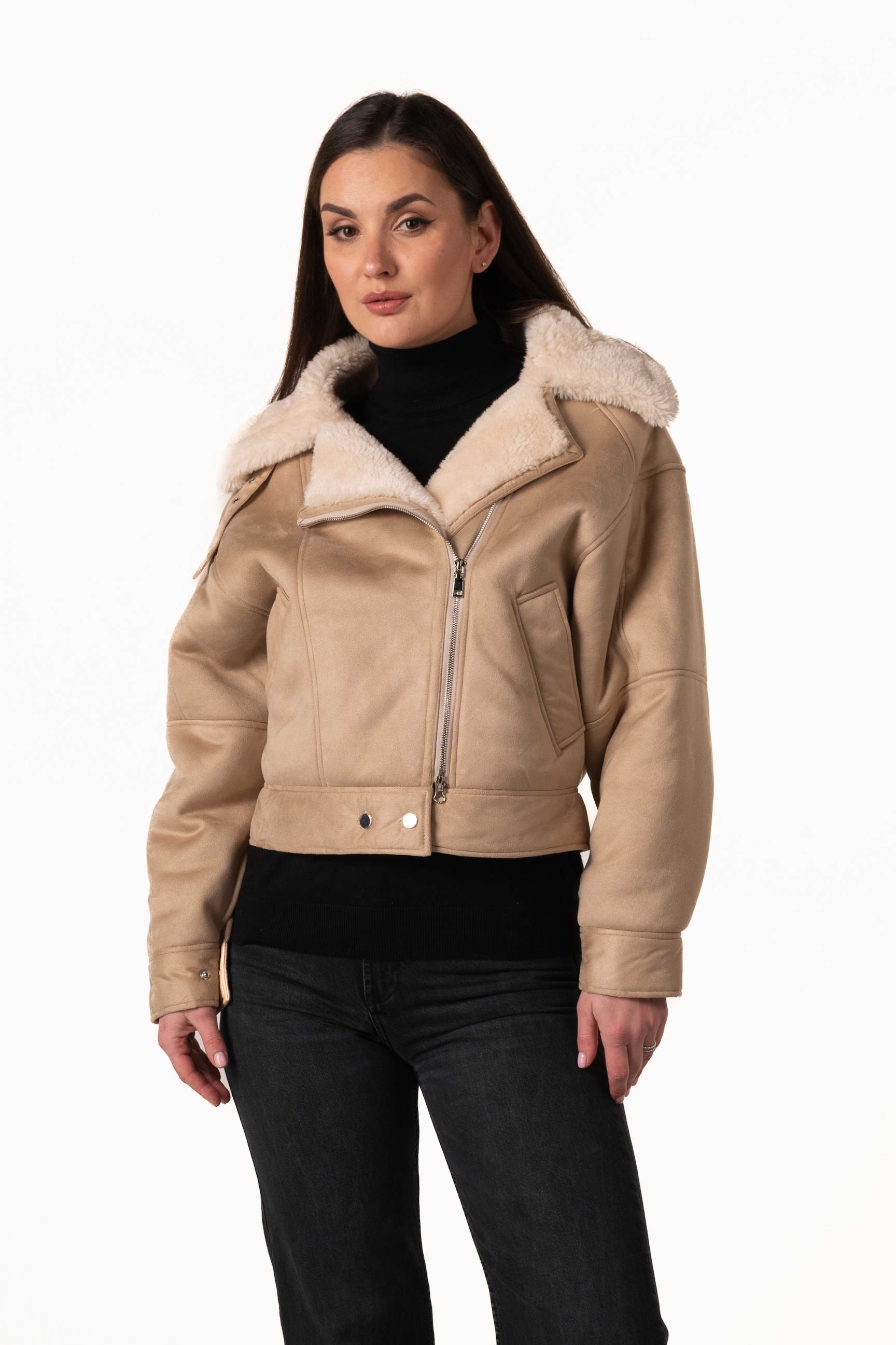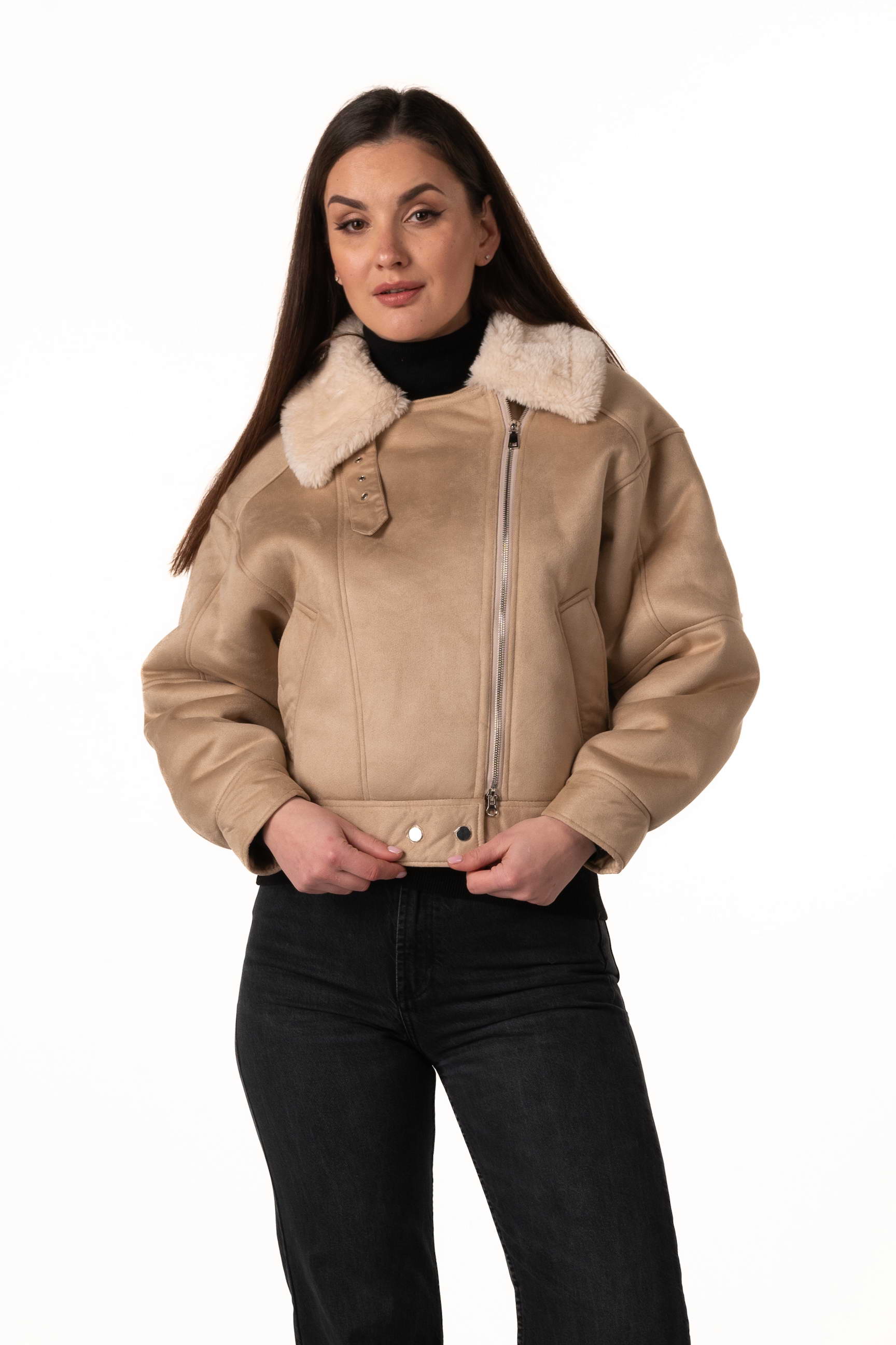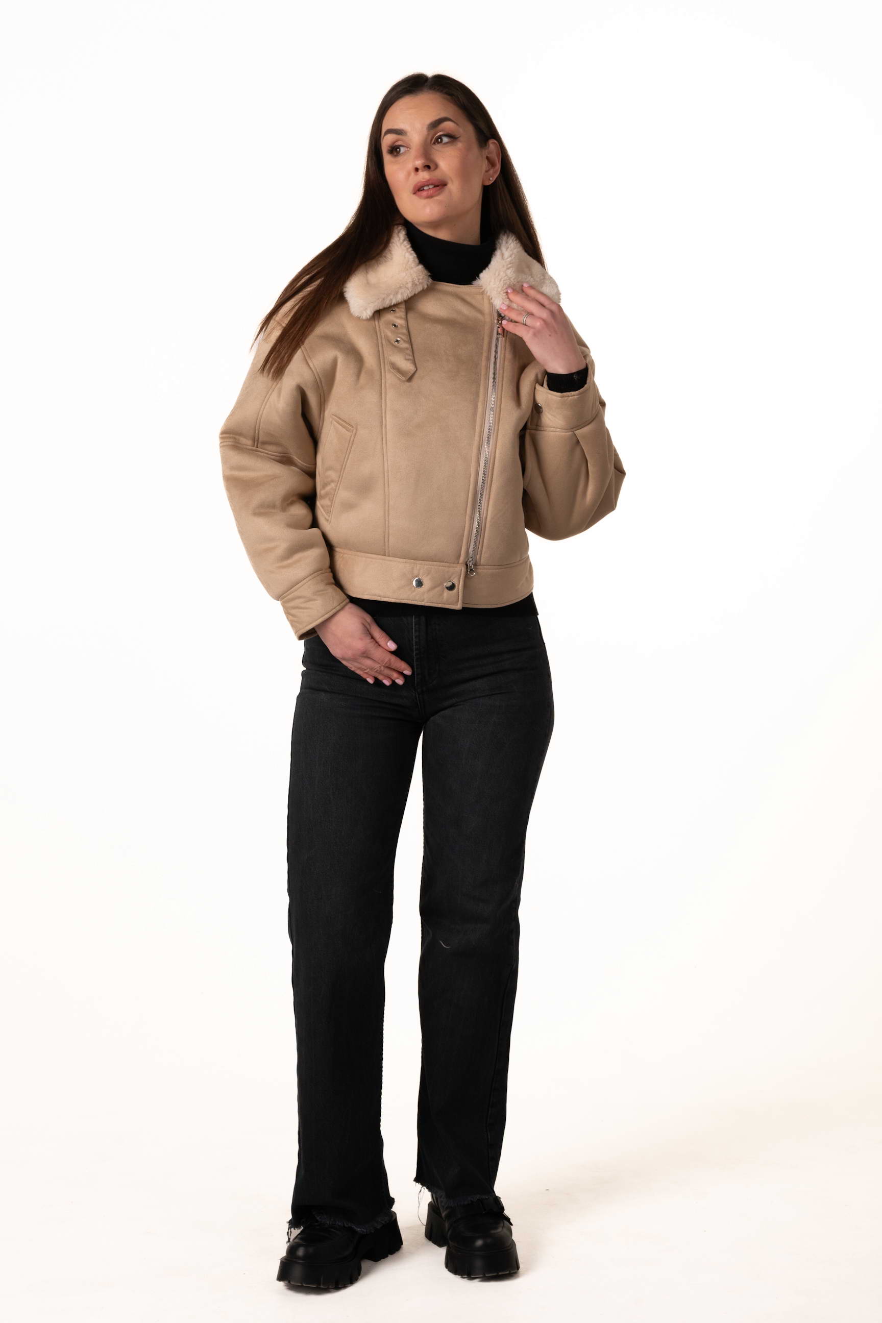 Купить женскую эко-дублёнку-бомбер бежевого цвета — значит выбрать современный стиль, комфорт и тепло этой зимой.