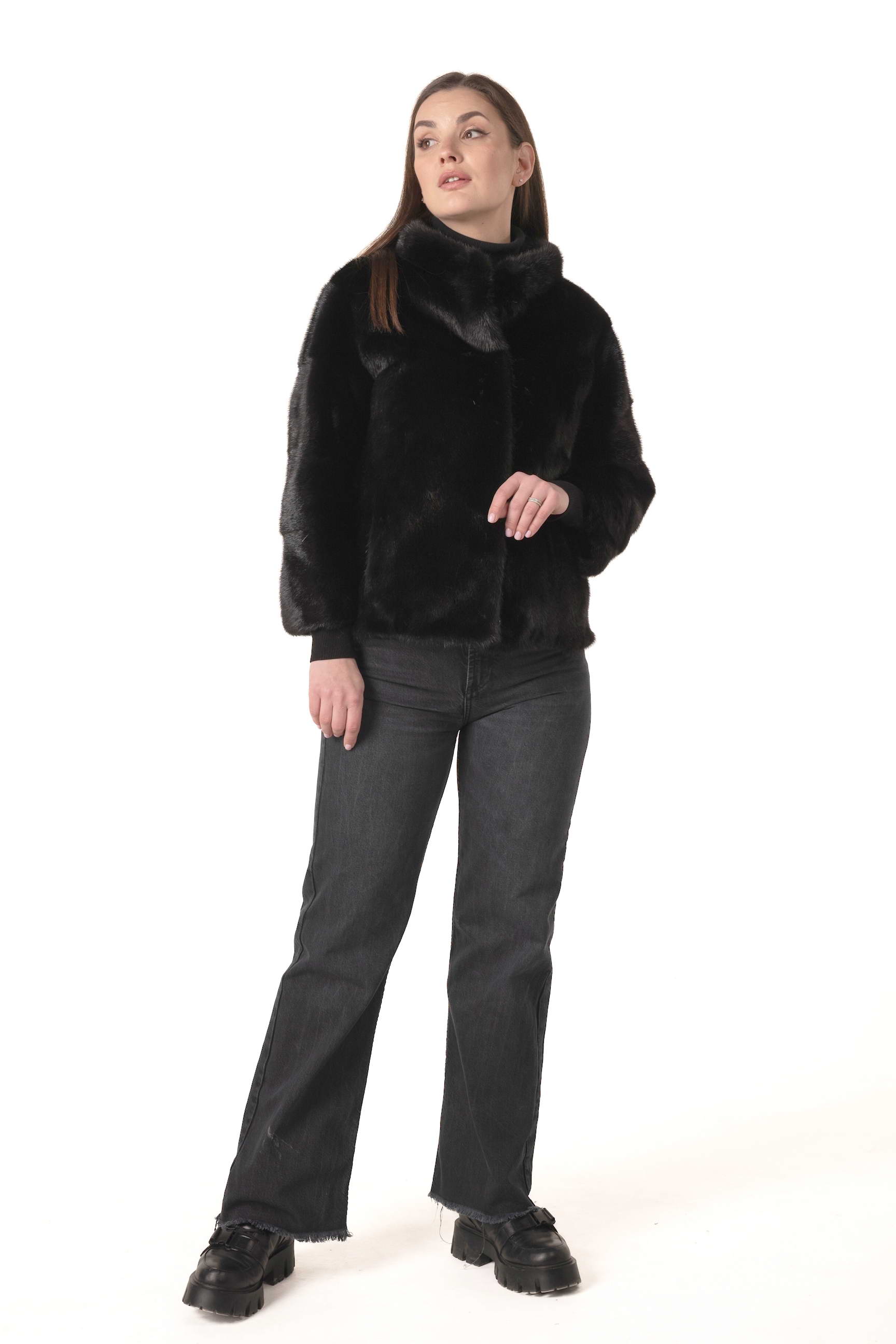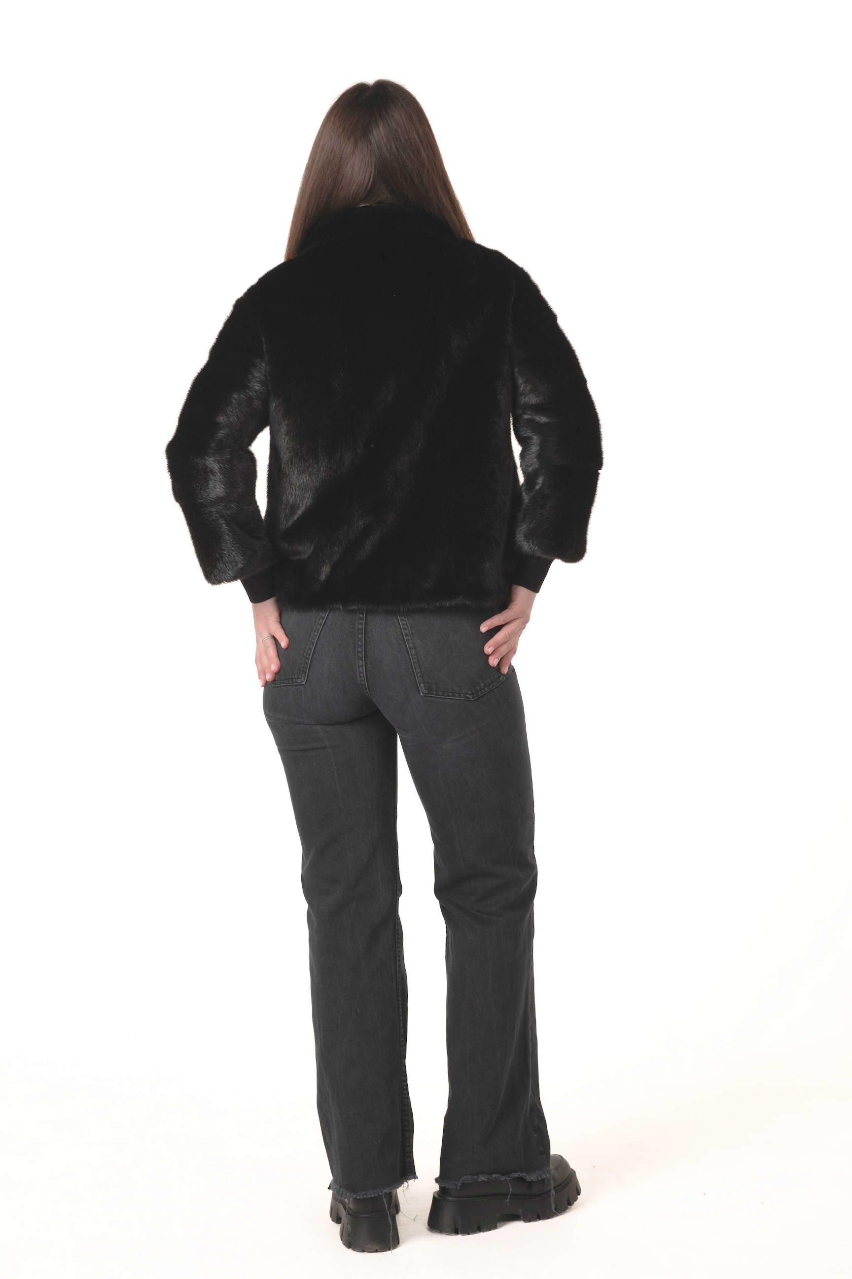 Классический чёрный цвет выглядит роскошно и универсально, подчёркивает фактуру меха и легко сочетается с любыми образами — от повседневных до вечерних. Прямой крой обеспечивает комфортную посадку и сохраняет элегантный силуэт.