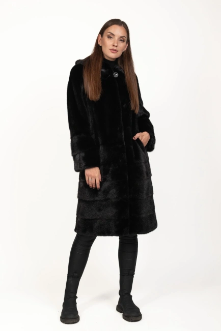 Эта женская шуба из натурального меха норки – настоящее сокровище для гардероба современной женщины. Универсальная модель в глубоком черном цвете, сочетающая классическую элегантность, функциональность и современные детали. Полный трансформер – главное преимущество шубы: благодаря продуманному дизайну можно отстегнуть низ и рукава до длины, превратив роскошную шубу в удобную укороченную модель. Это идеальное решение для женщин, которые ценят практичность и любят менять стиль в зависимости от настроения или погоды. Основные характеристики: Цвет: классический черный – вечный тренд и символ элегантности Материал: натуральный мех норки, выложенный пластинами Низ и рукава: выполнены из поперечно выложенных пластин, что создает глубину и фактуру силуэта Фасон: прямой с удобным трансформированным кроем. Капюшон: удобный, глубокий, декорированный пуговицей для стильного акцента. Застежка: шубные крючки, сохраняющие аккуратный внешний вид Карманы: боковые, практичные и незаметные Длина: 110 см – для максимального комфорта и тепла в холодное время года. Эта норковая шуба-трансформер с капюшоном – идеальное сочетание женственности, универсальности и высокого качества. Она подойдет как к вечернему наряду, так и к более casual-лукам — все зависит от выбранного формата ношения. Купить норковую шубу — это: - сделать ставку на роскошь, не выходящую из моды - Инвестировать в тепло, комфорт и презентабельность - Получить два образа в одной модели – длинную и укороченную шубу Заказывай женскую норковую шубу-трансформер уже сейчас — и наслаждайся стилем и свободой выбора каждый день!
