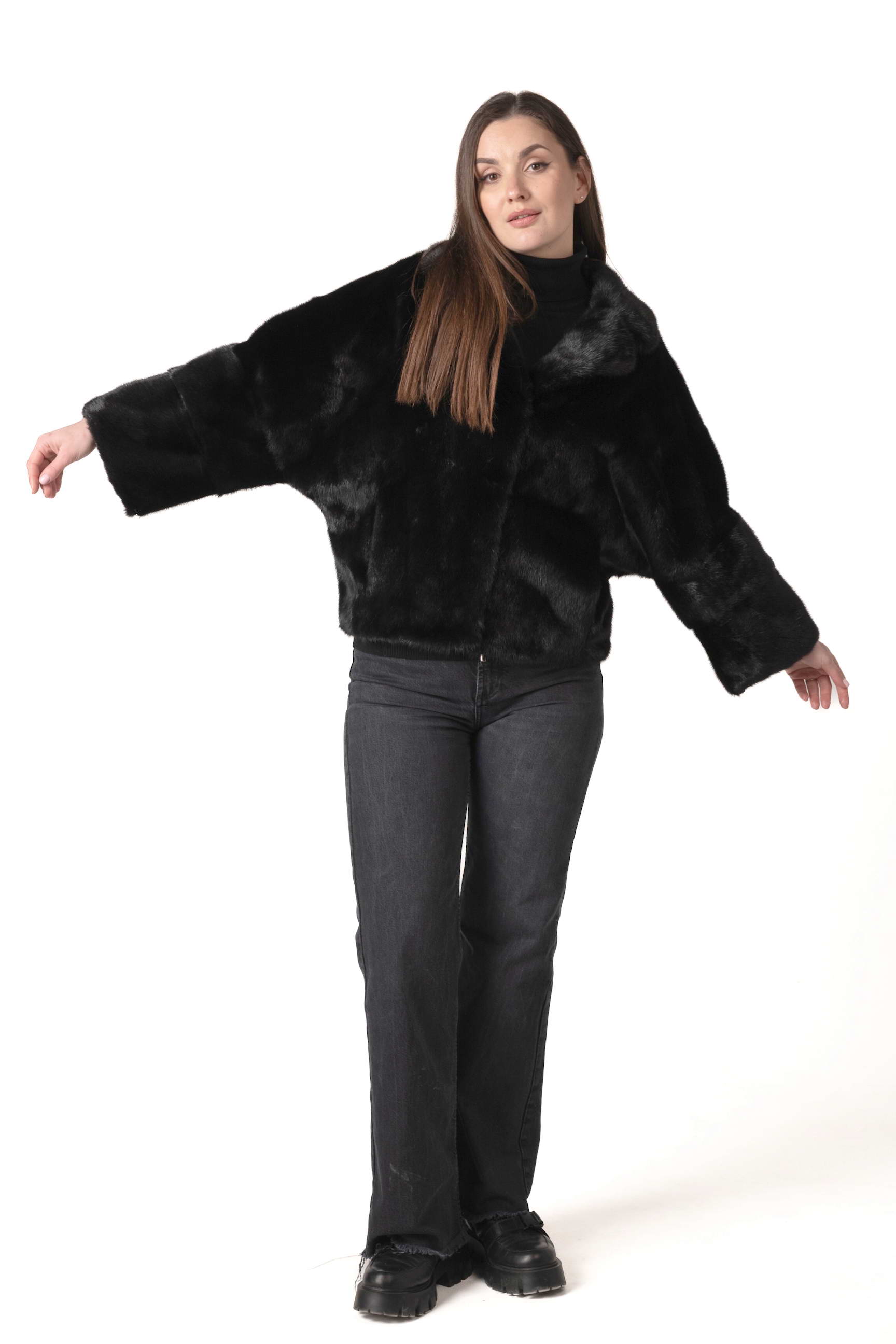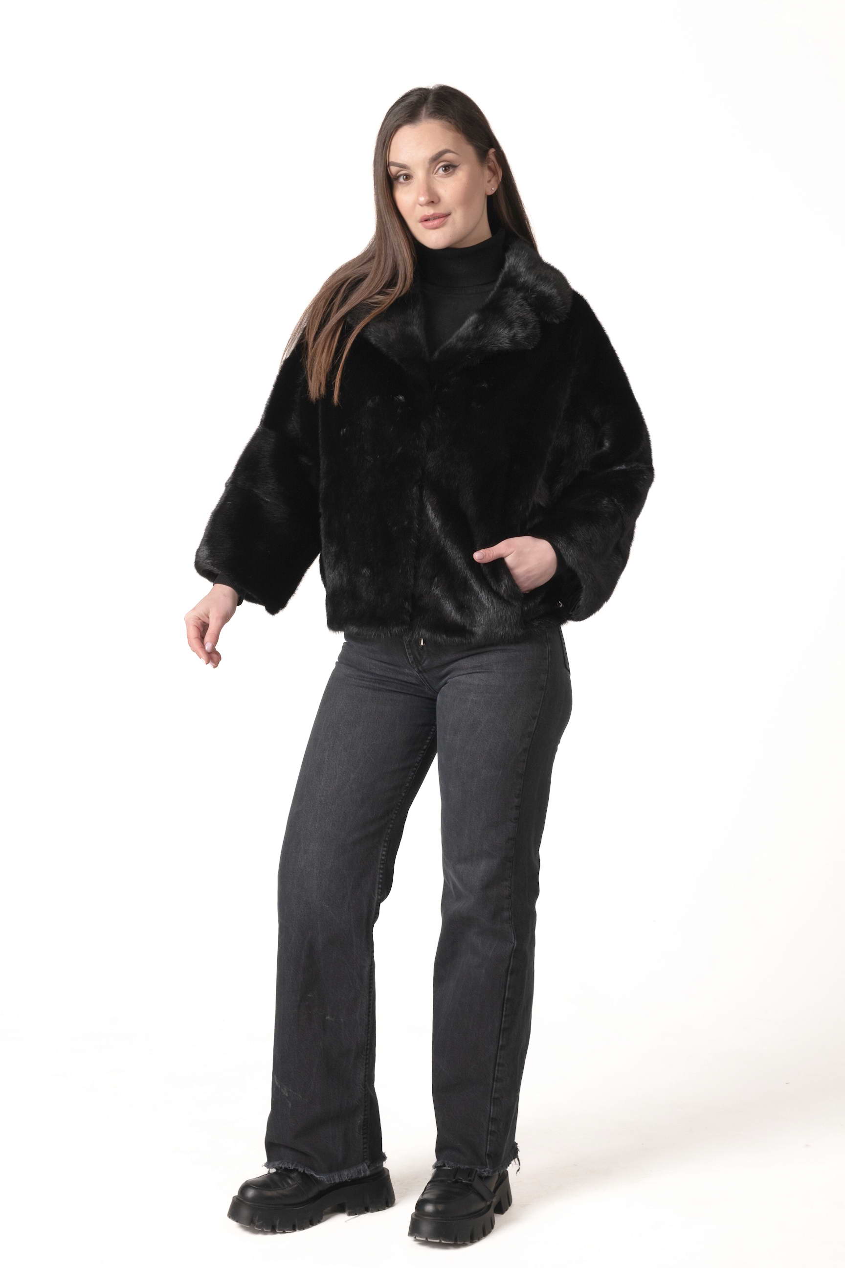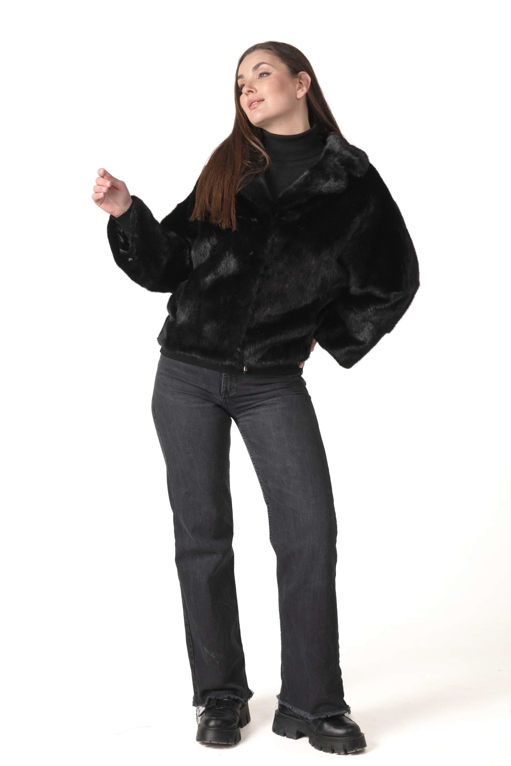 Прямой крой обеспечивает идеальную посадку и комфорт в повседневной носке, а чёрный цвет подчёркивает универсальность и премиальность изделия. Английский воротник придаёт образу элегантность и позволяет легко сочетать шубу с классическими и вечерними образами.
