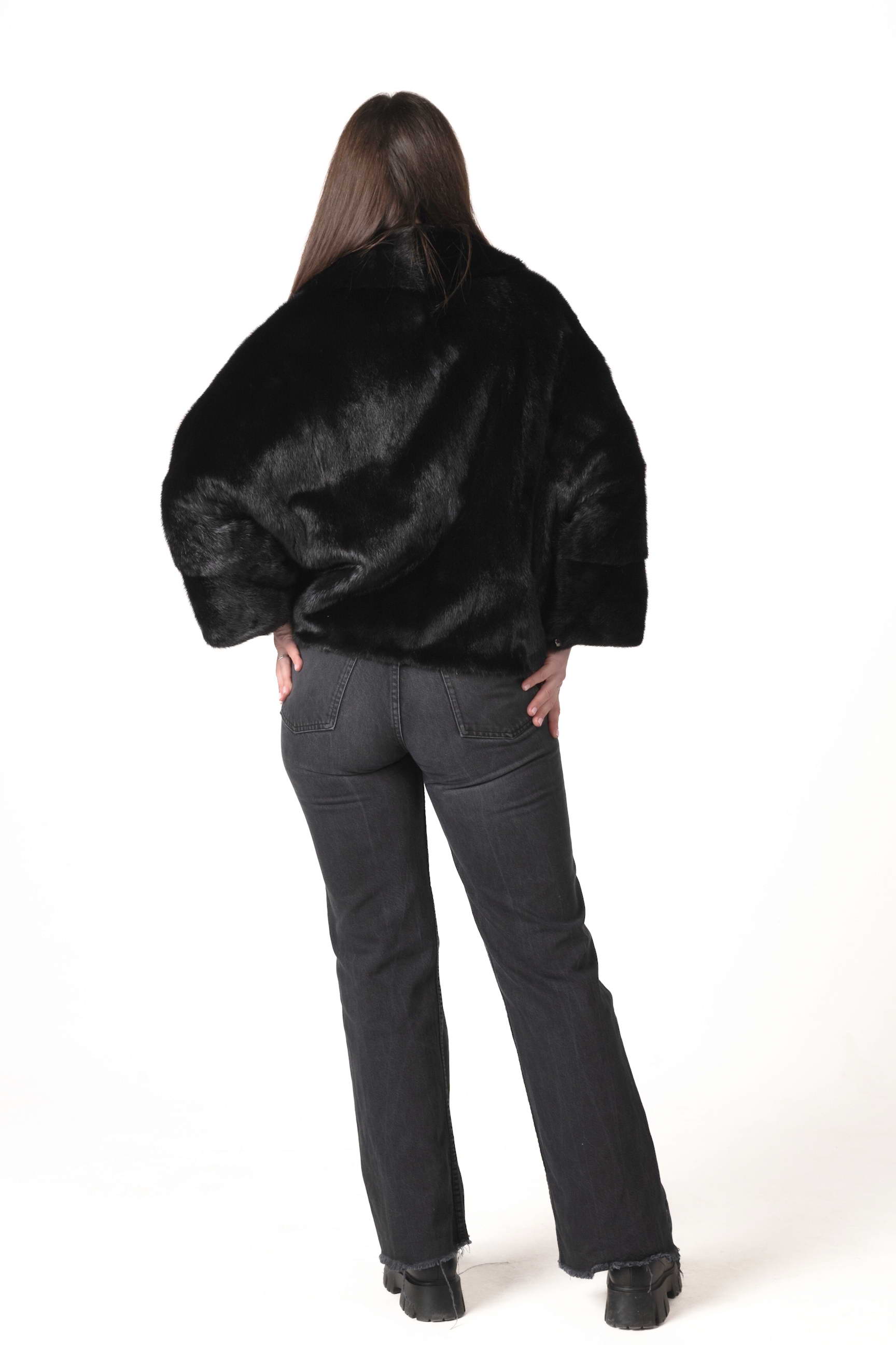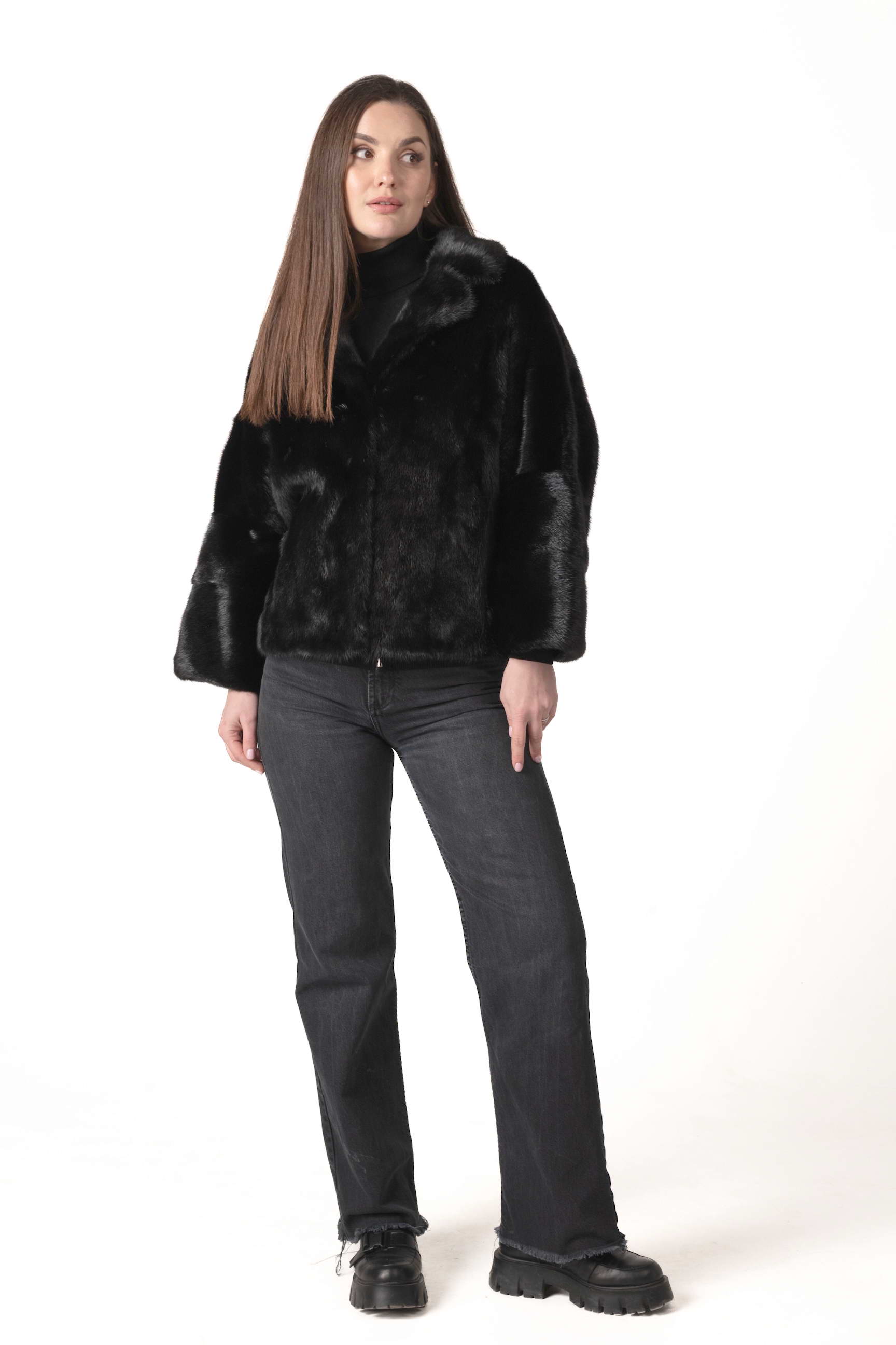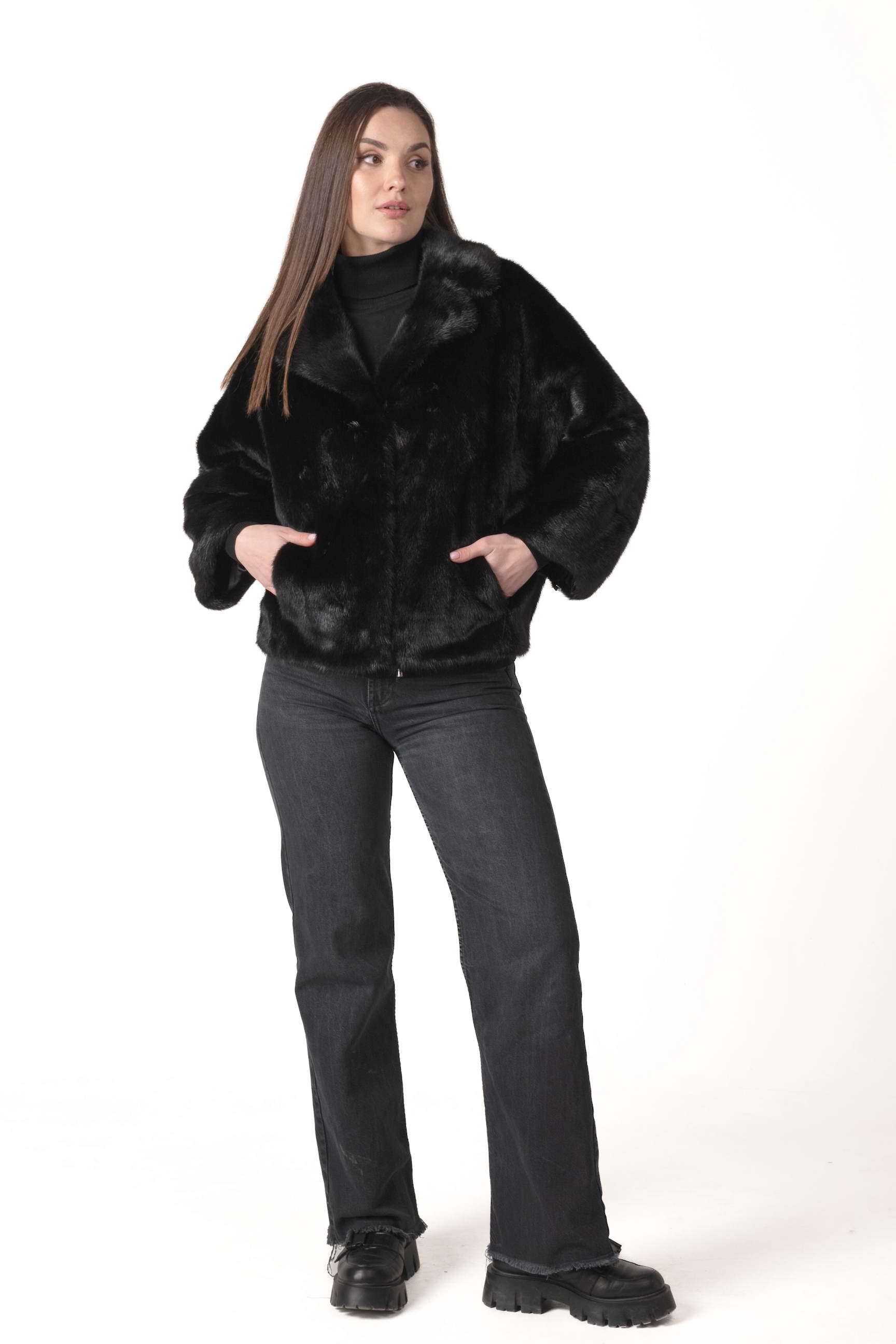 Прямой крой обеспечивает идеальную посадку и комфорт в повседневной носке, а чёрный цвет подчёркивает универсальность и премиальность изделия. Английский воротник придаёт образу элегантность и позволяет легко сочетать шубу с классическими и вечерними образами.