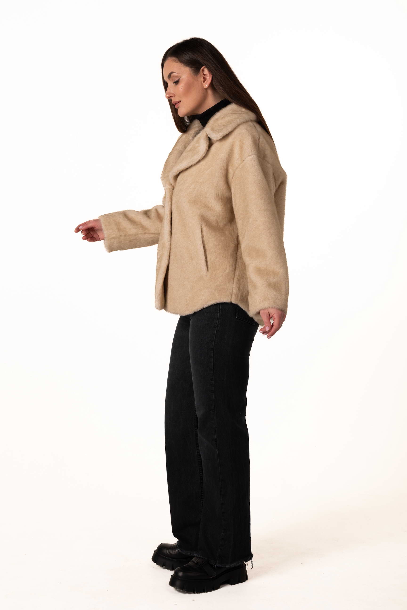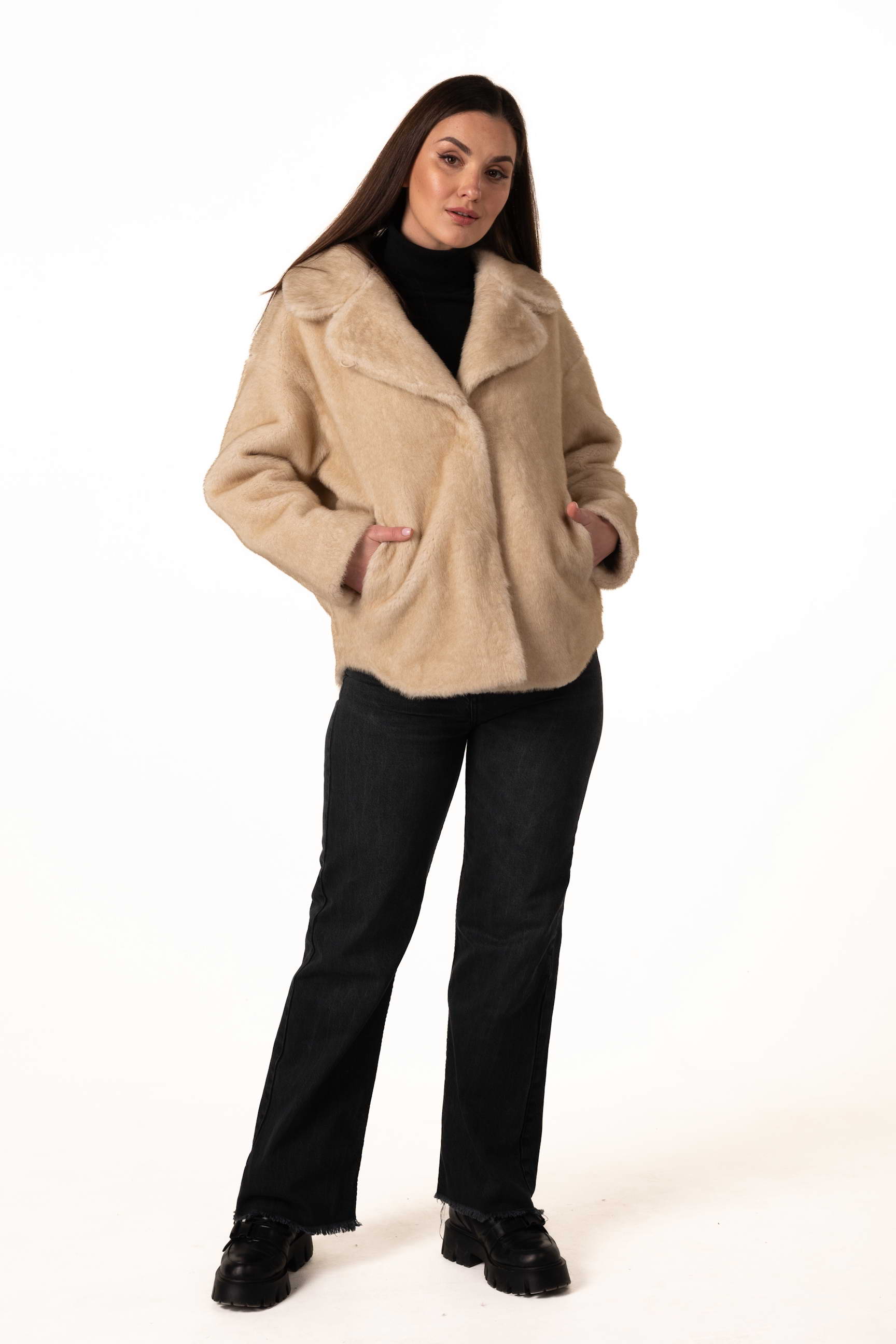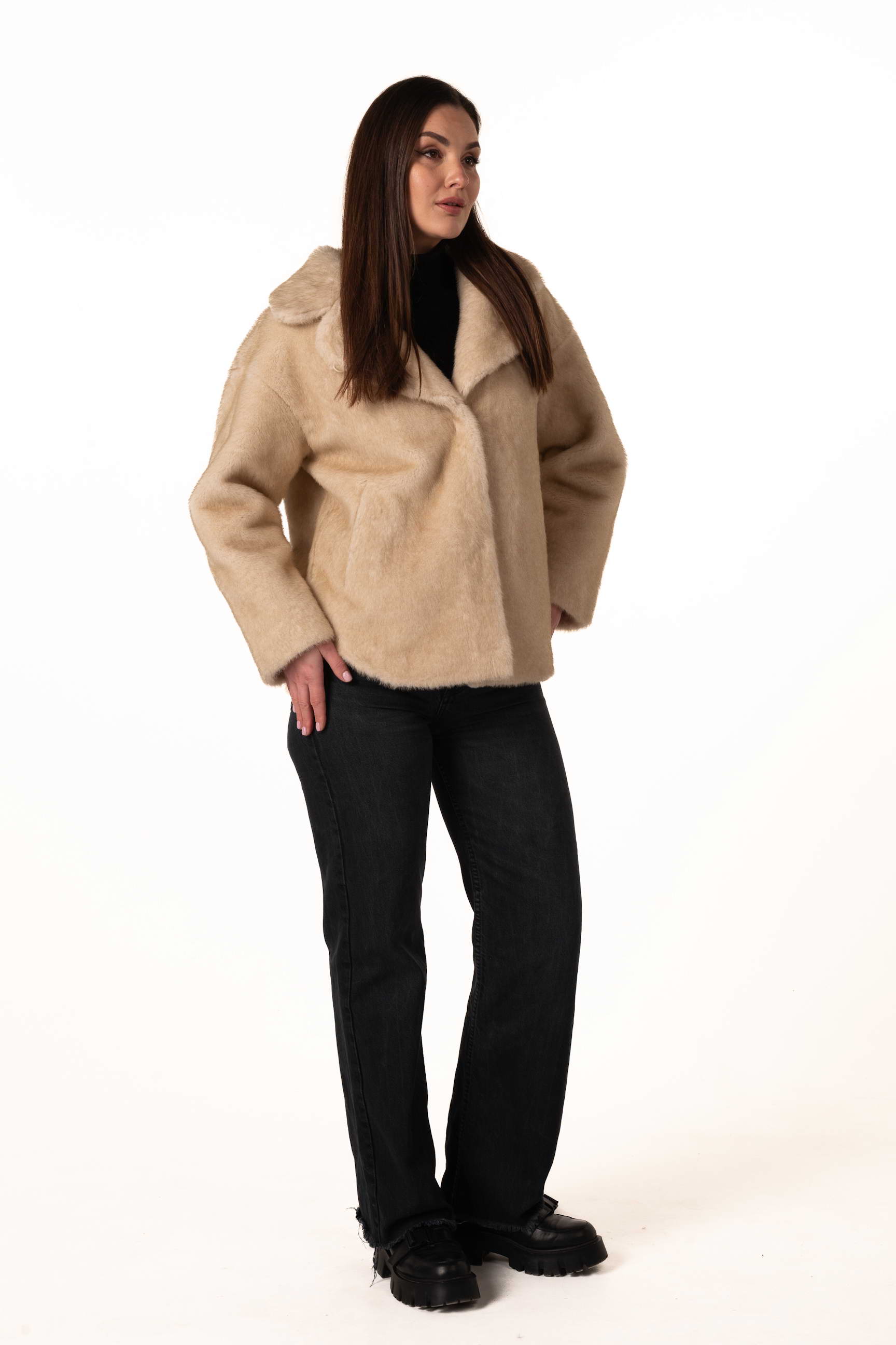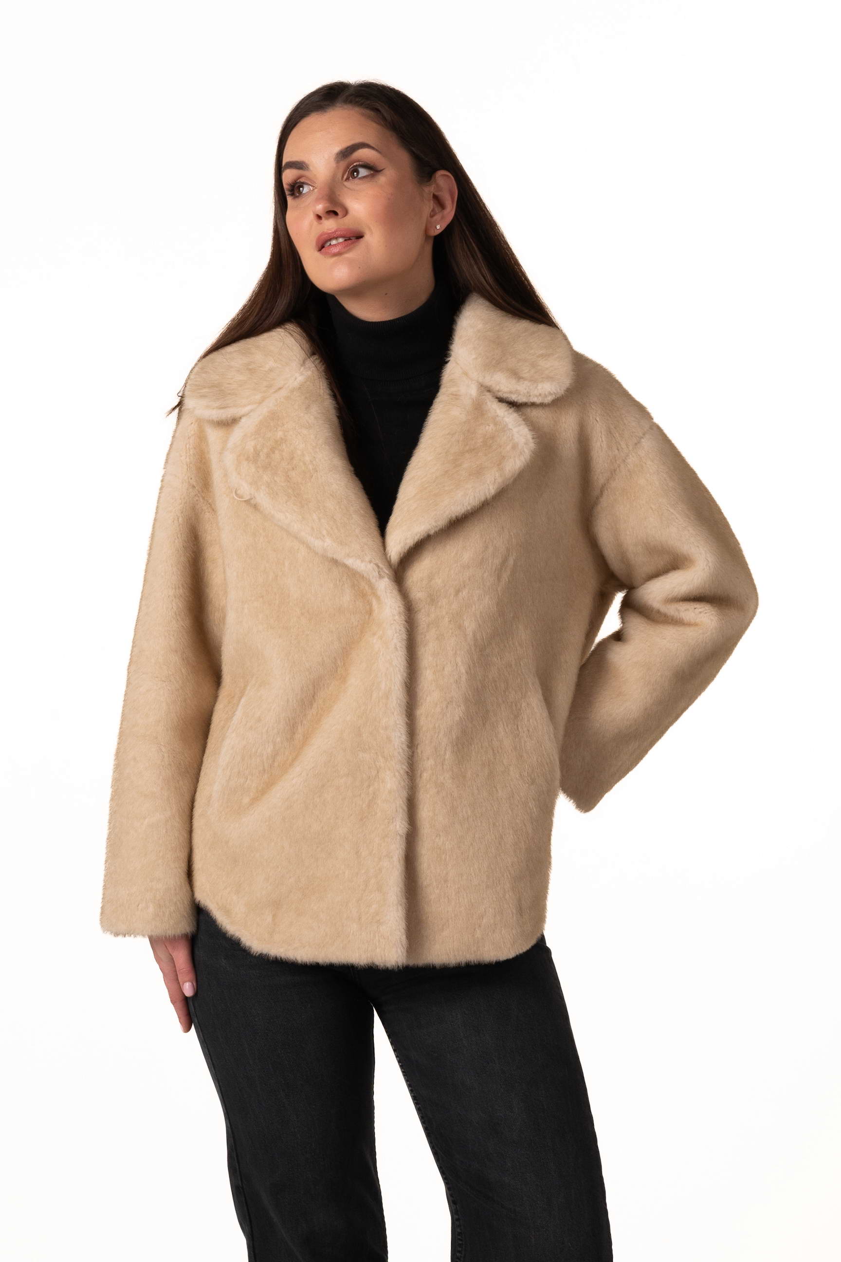 Современная женская шуба из искусственного меха — это идеальное сочетание элегантности, тепла и практичности для холодного сезона. Изделие выполнено из качественного искусственного меха, который мягкий, приятный на ощупь и хорошо сохраняет тепло, при этом не требует сложного ухода. Бежевый цвет придаёт образу нежность и универсальность, делая шубу идеальным дополнением к любому зимнему гардеробу.