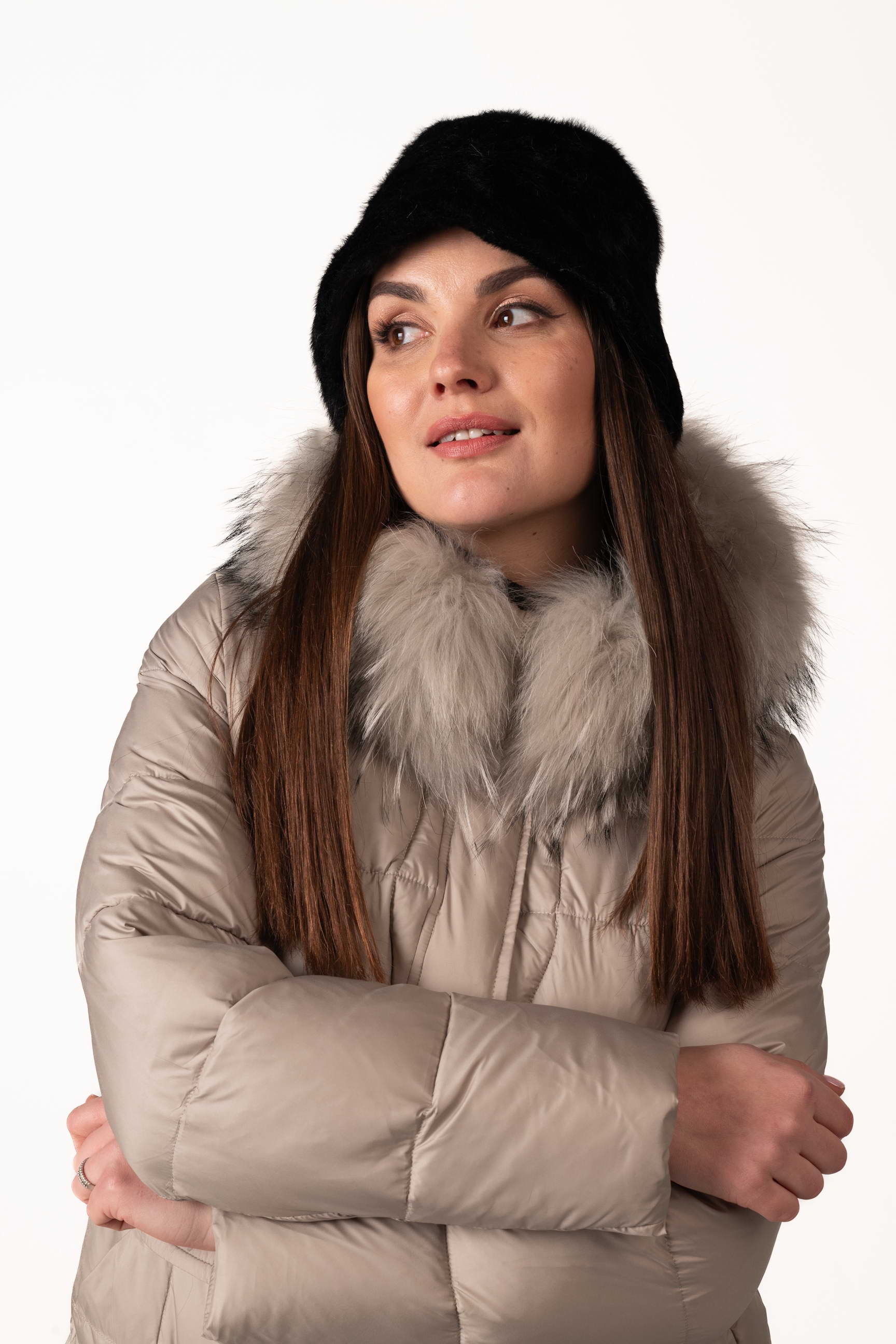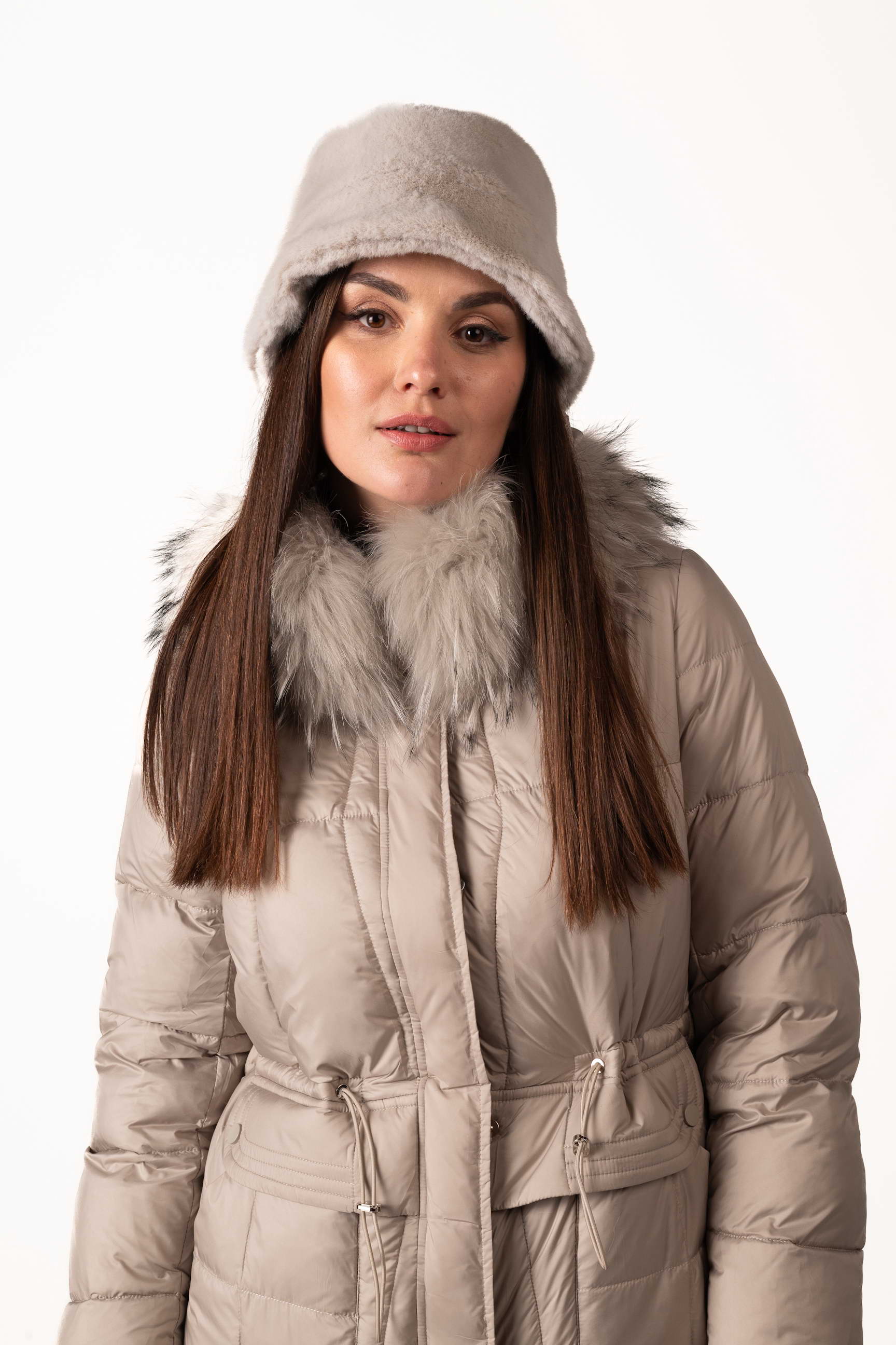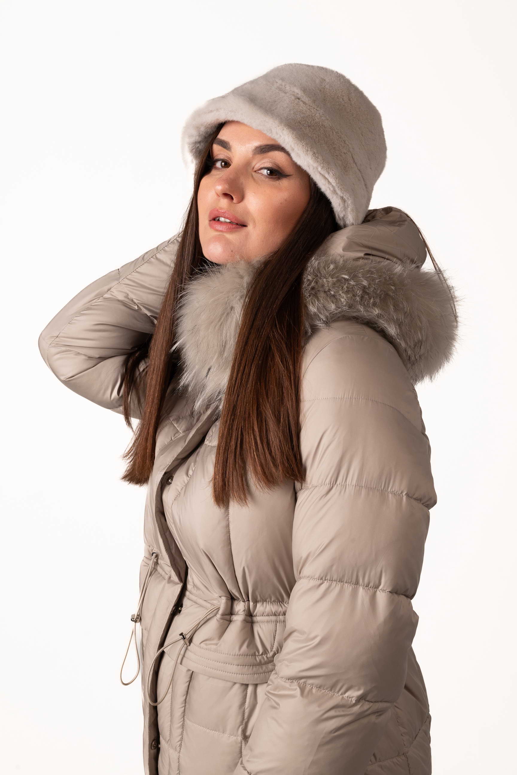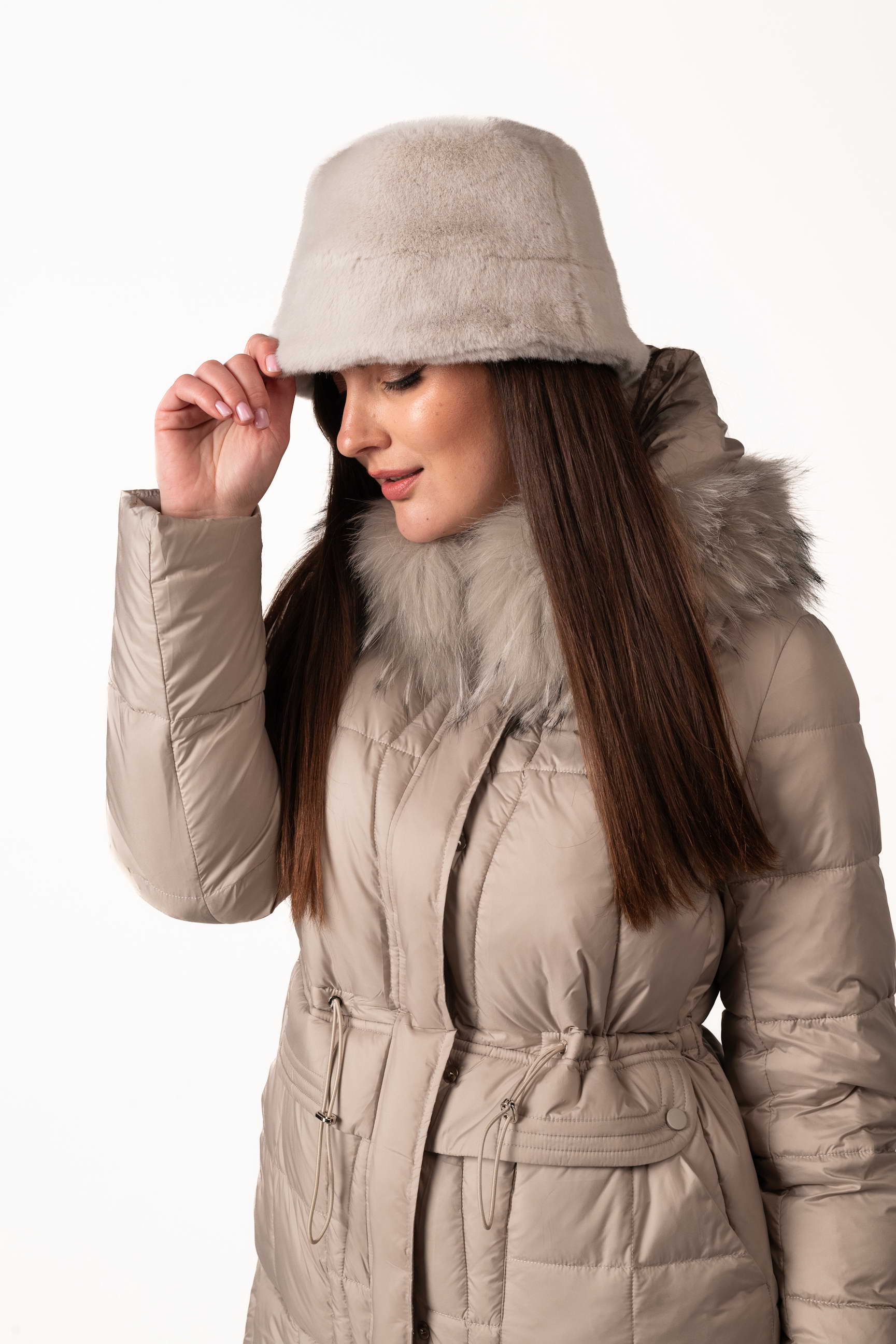 Шапка представлена в нескольких стильных цветах — серый, бежевый, коричневый, что позволяет выбрать вариант под любой зимний образ. Размеры шапки (обхват головы) — 55 см, 56 см, 57 см, чтобы каждая могла подобрать идеальную посадку.