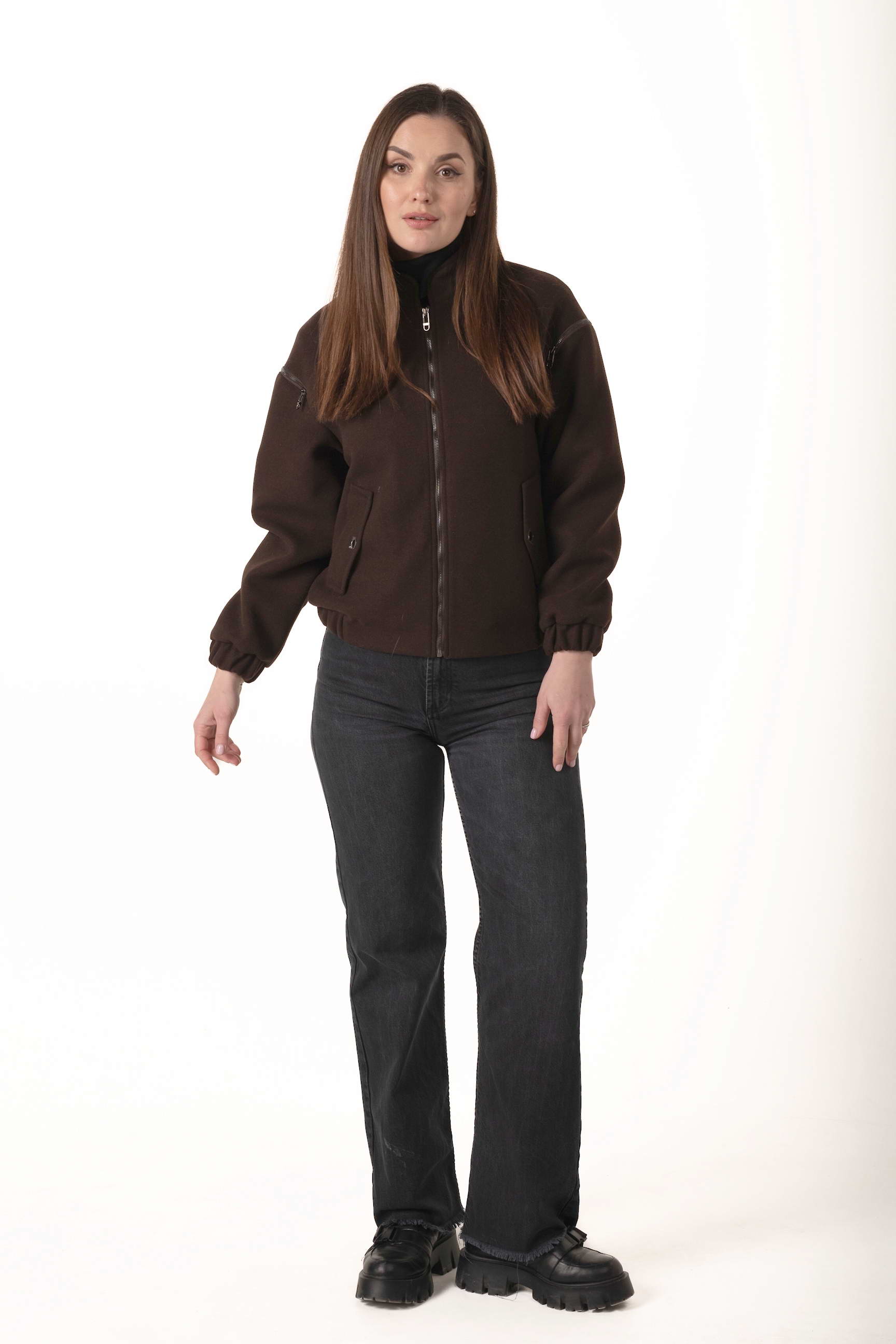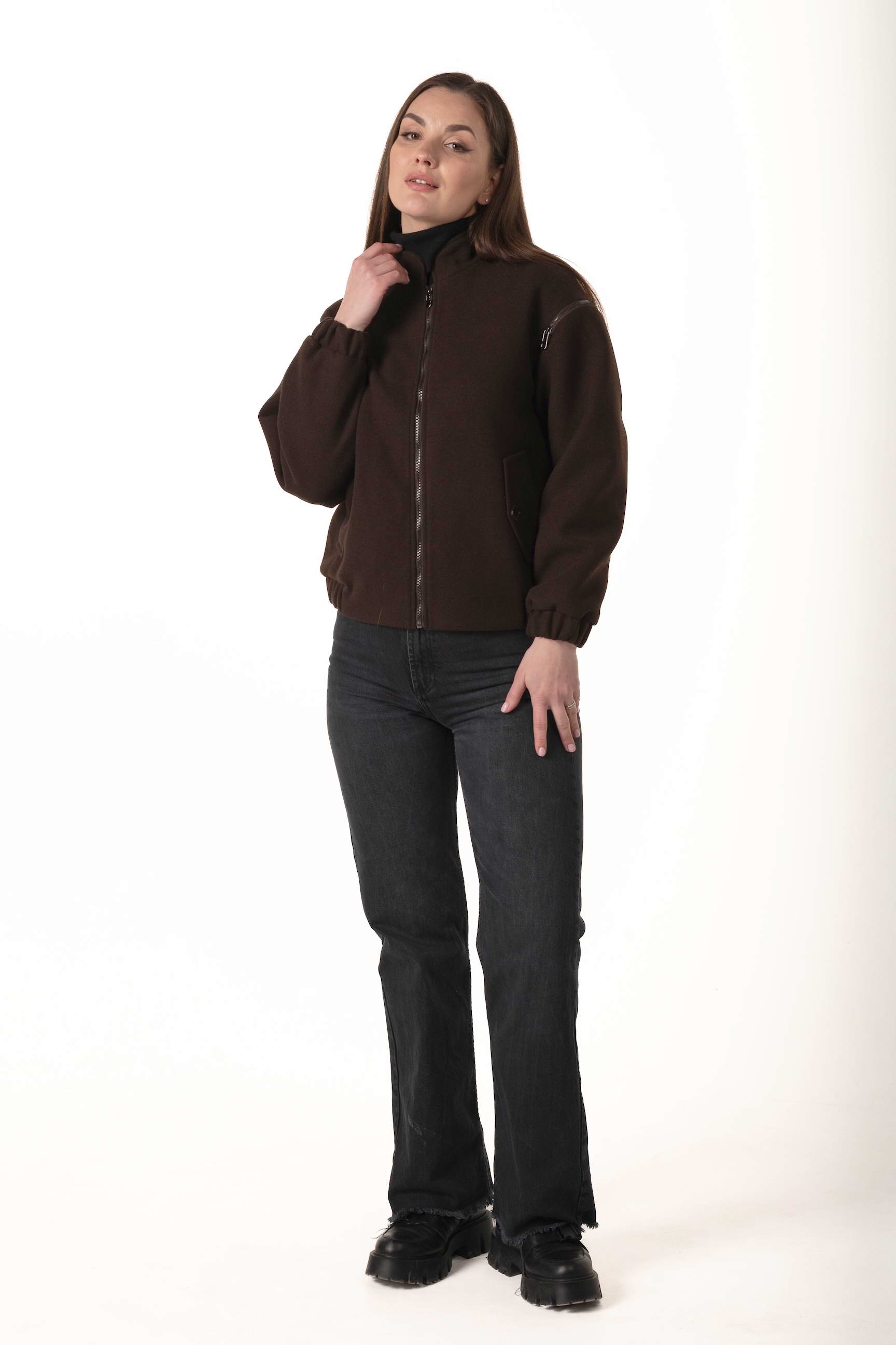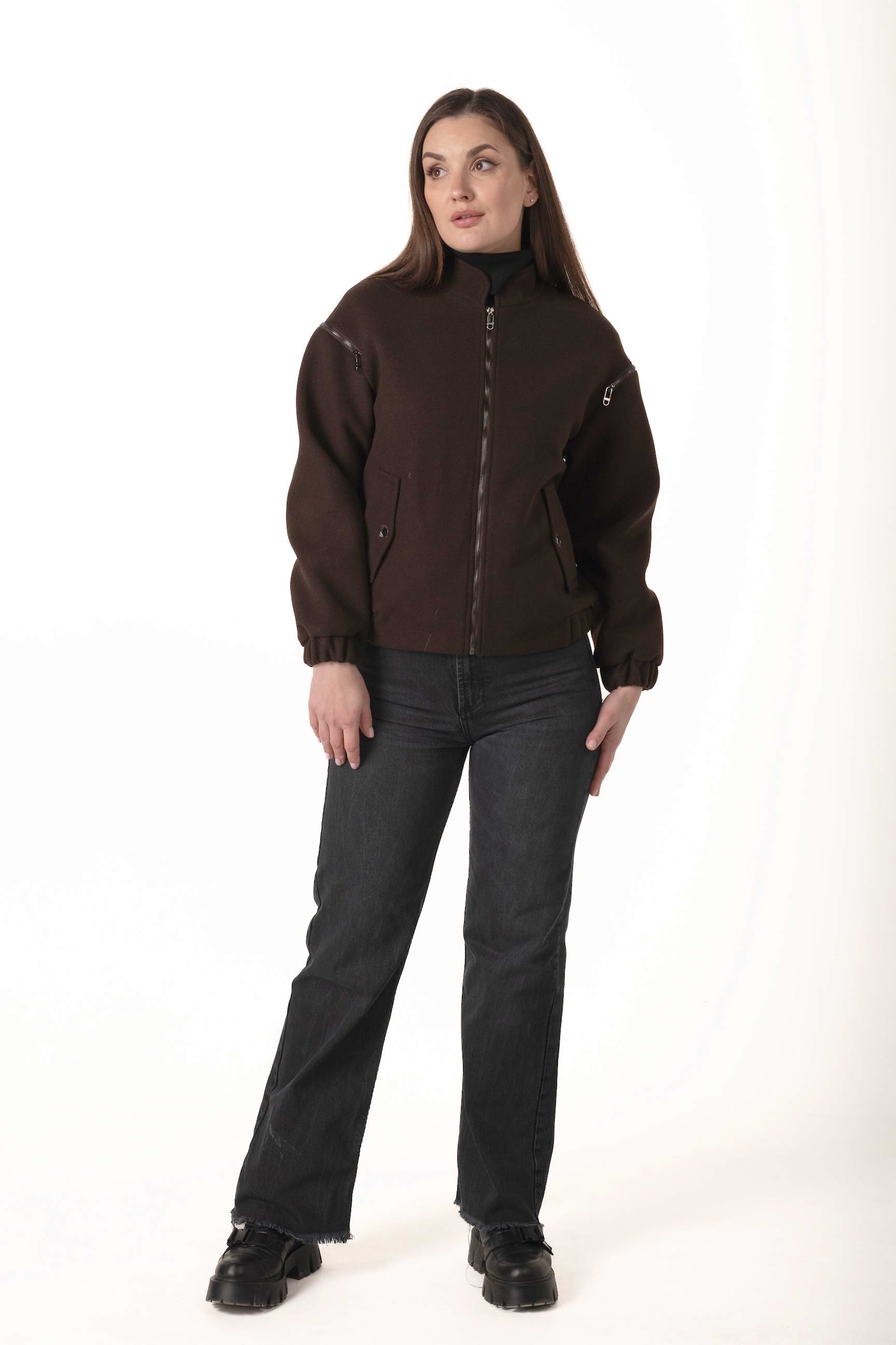 Силуэт-бомбер и длина 62 см создают современный образ, подчеркивая стиль и свободу движений. Коричневый цвет добавляет элегантности и универсальности, сочетается с любым гардеробом и подходит для повседневного ношения.