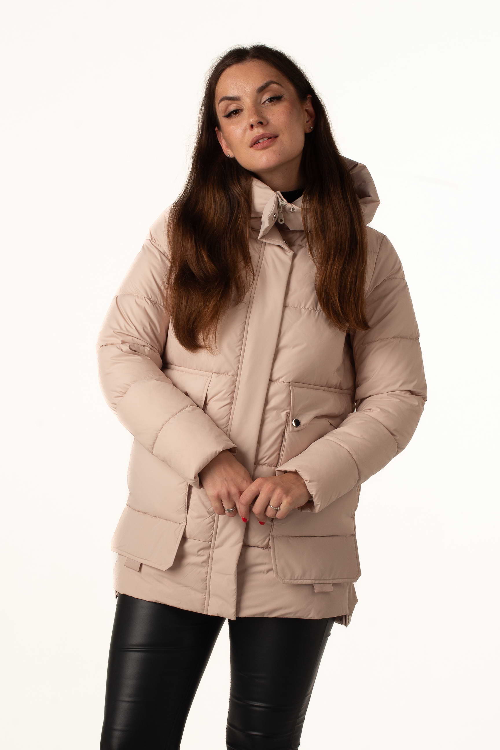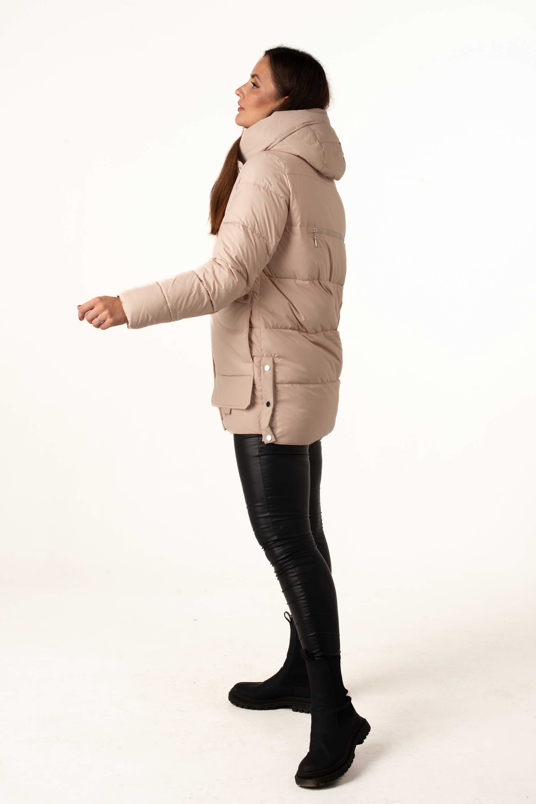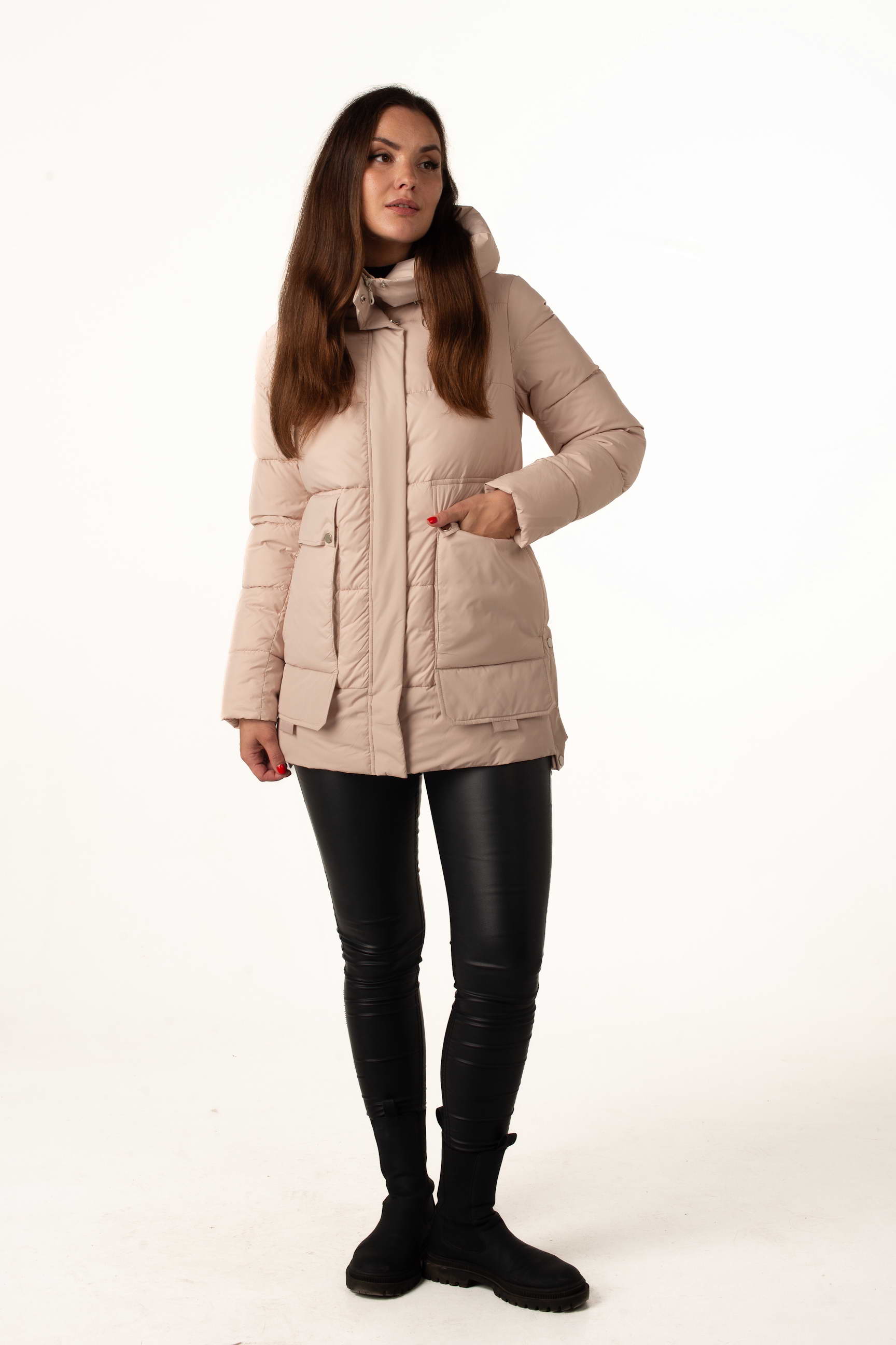 Биопуховик бежевого цвета сочетает стиль и функциональность, лёгкий и тёплый, подчёркивает индивидуальный стиль и создаёт комфорт в зимнее время.