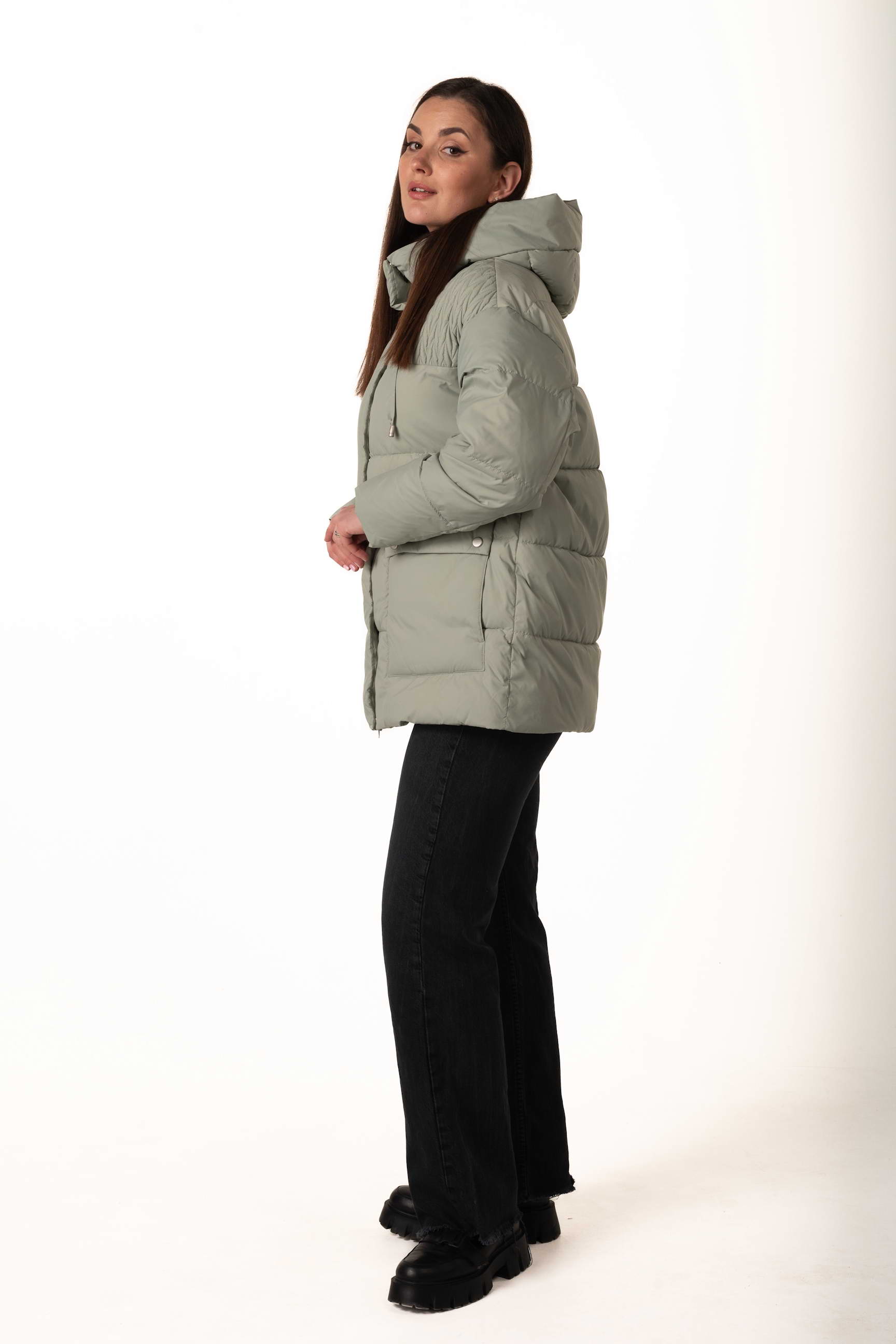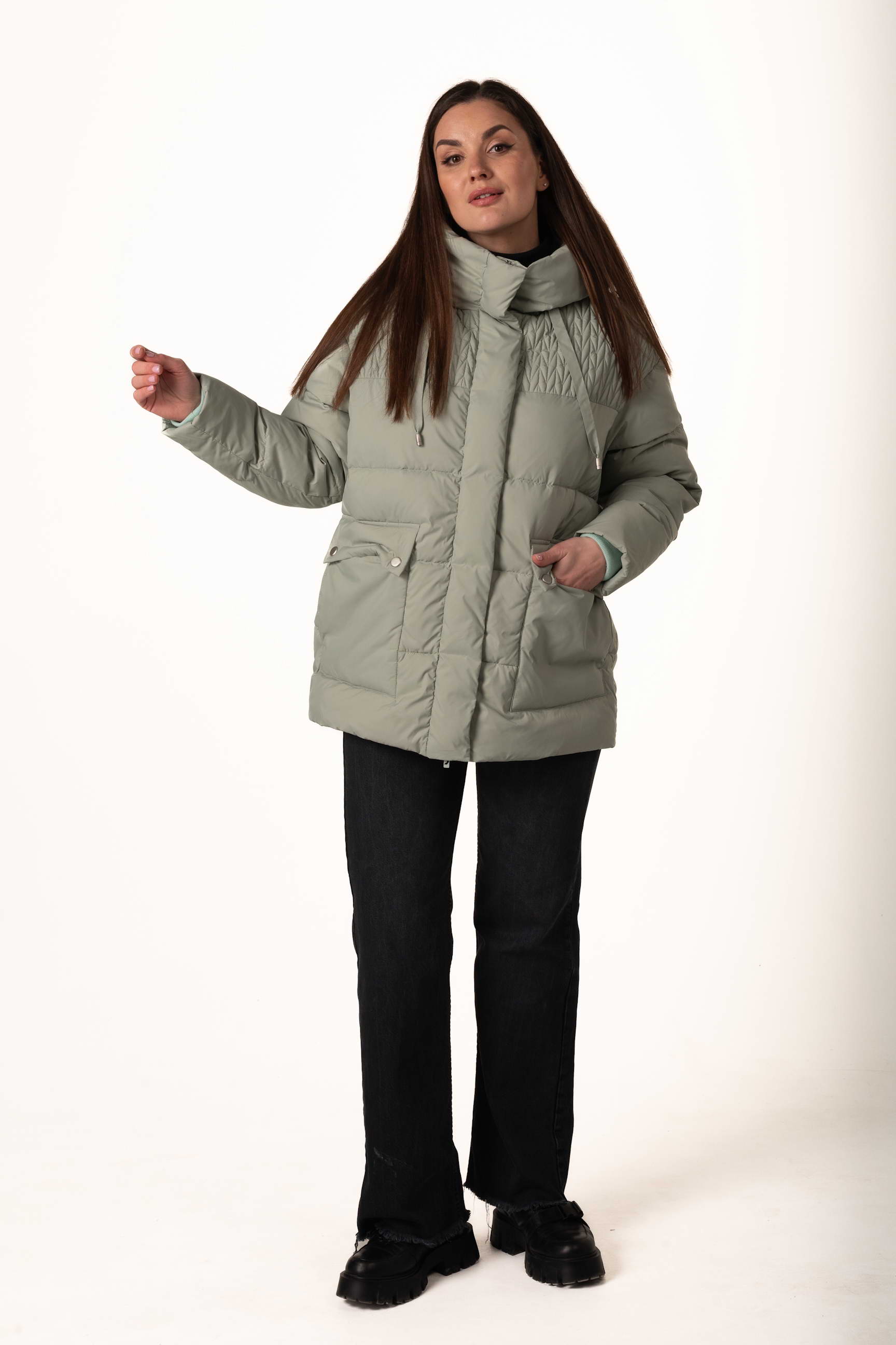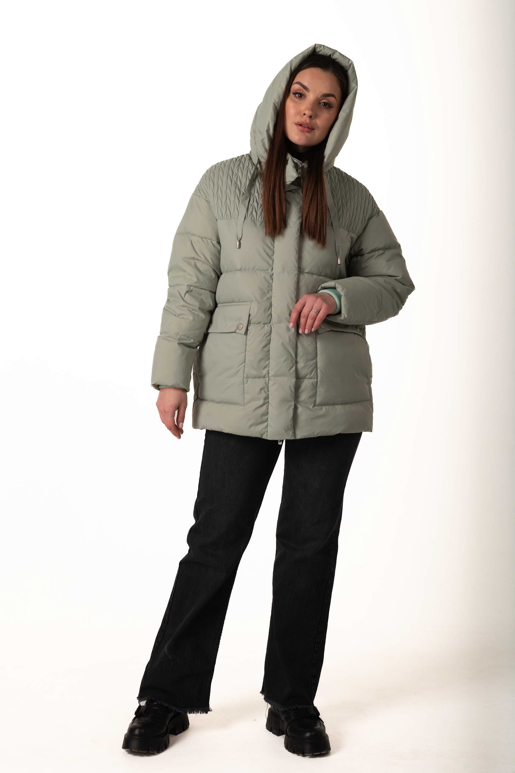 Прямой крой формирует элегантный и универсальный силуэт, позволяет сочетать пуховик с многослойными образами и подходит для разных типов фигуры.