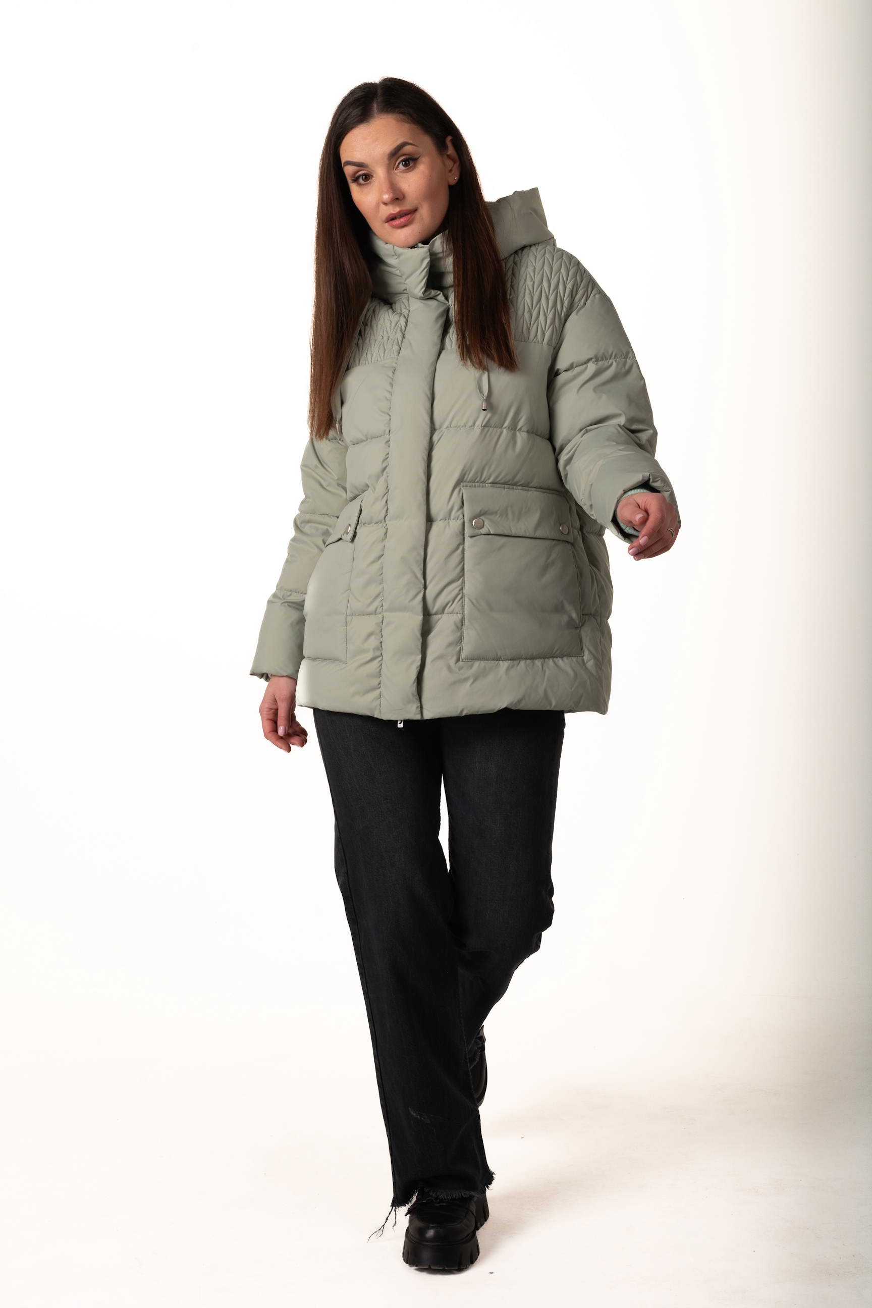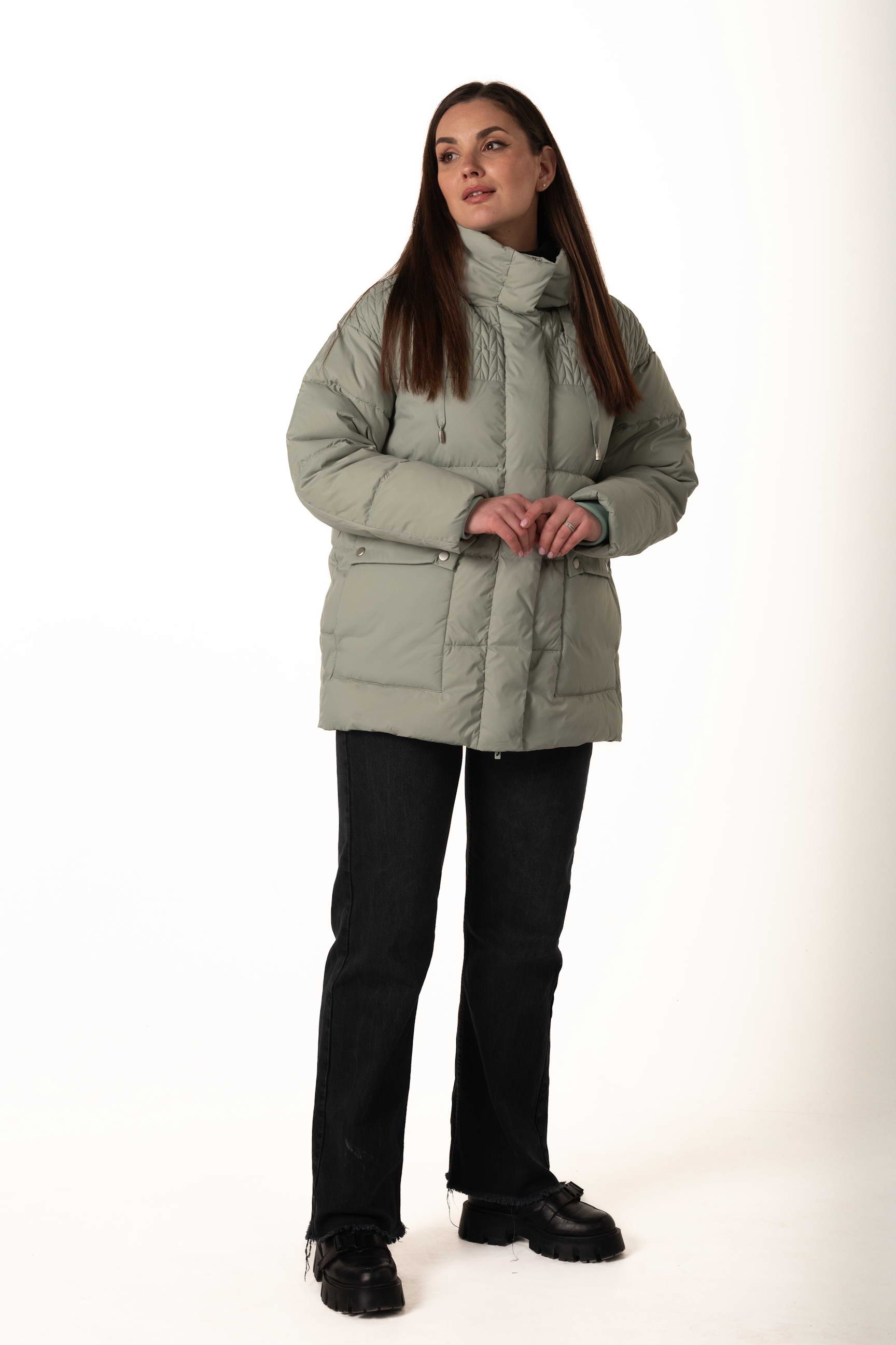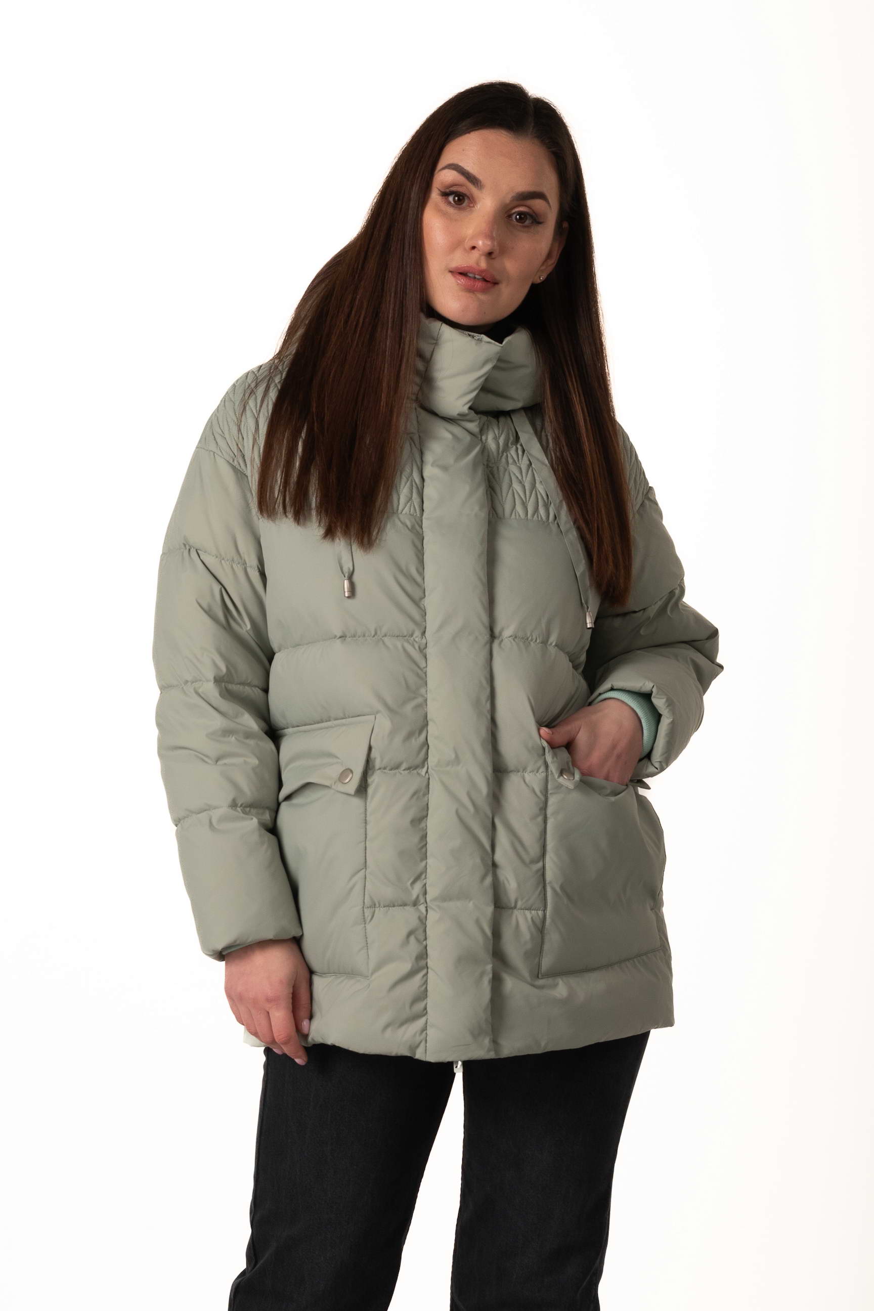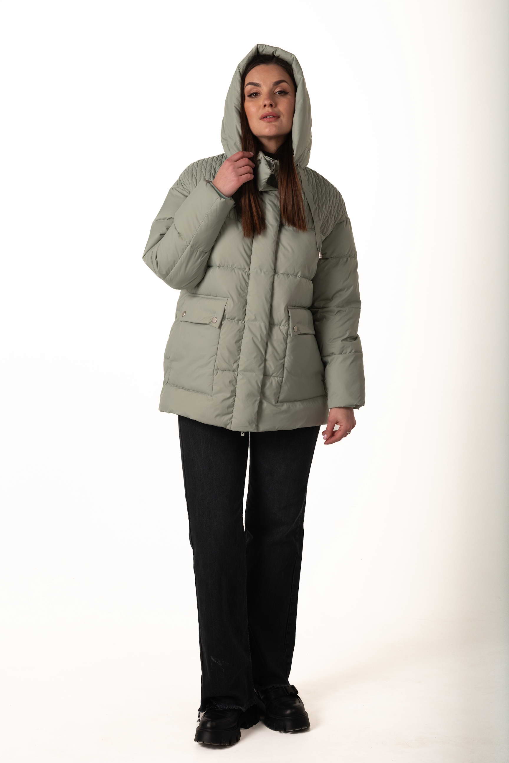 Прямой крой формирует элегантный и универсальный силуэт, позволяет сочетать пуховик с многослойными образами и подходит для разных типов фигуры.