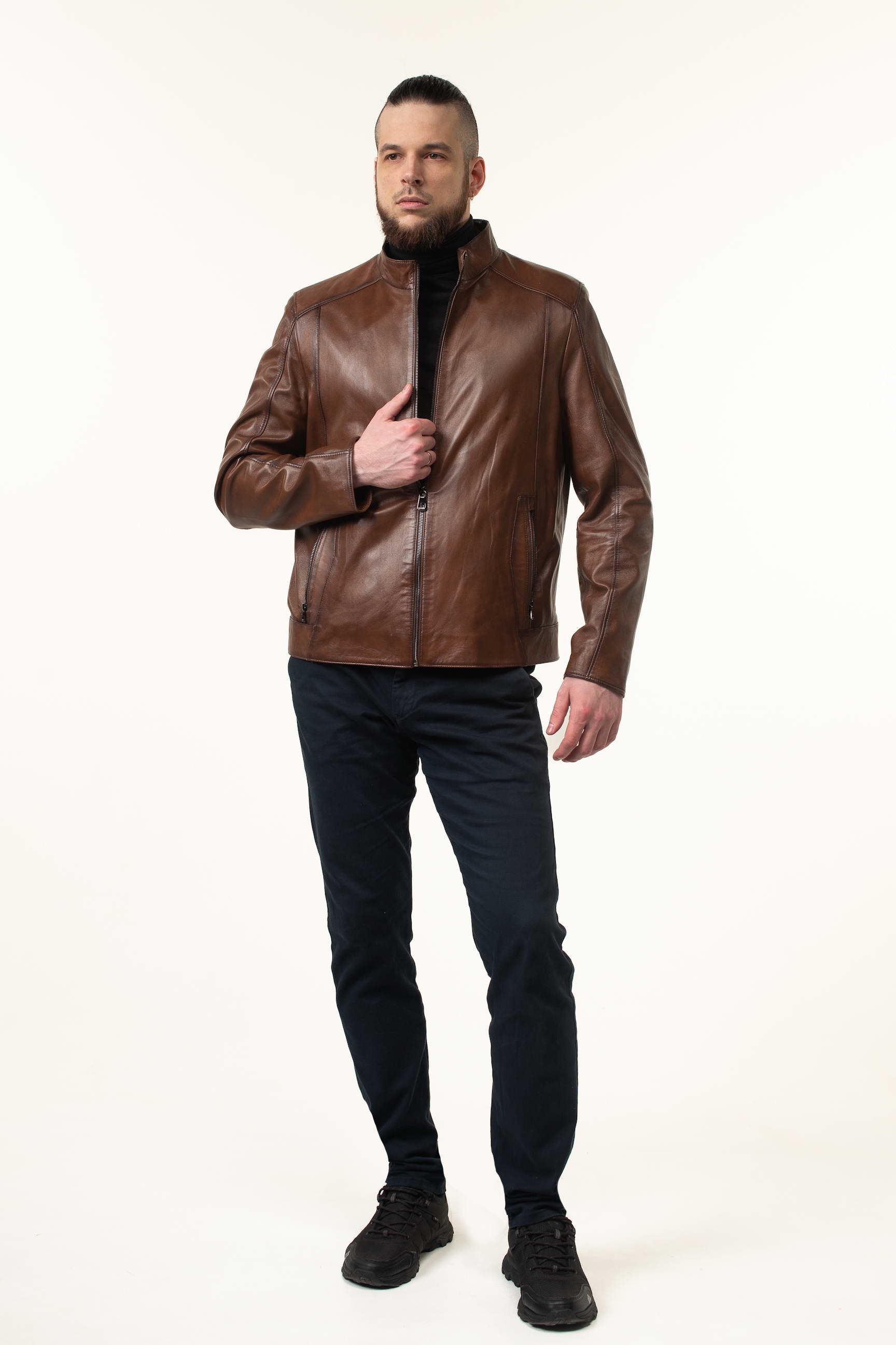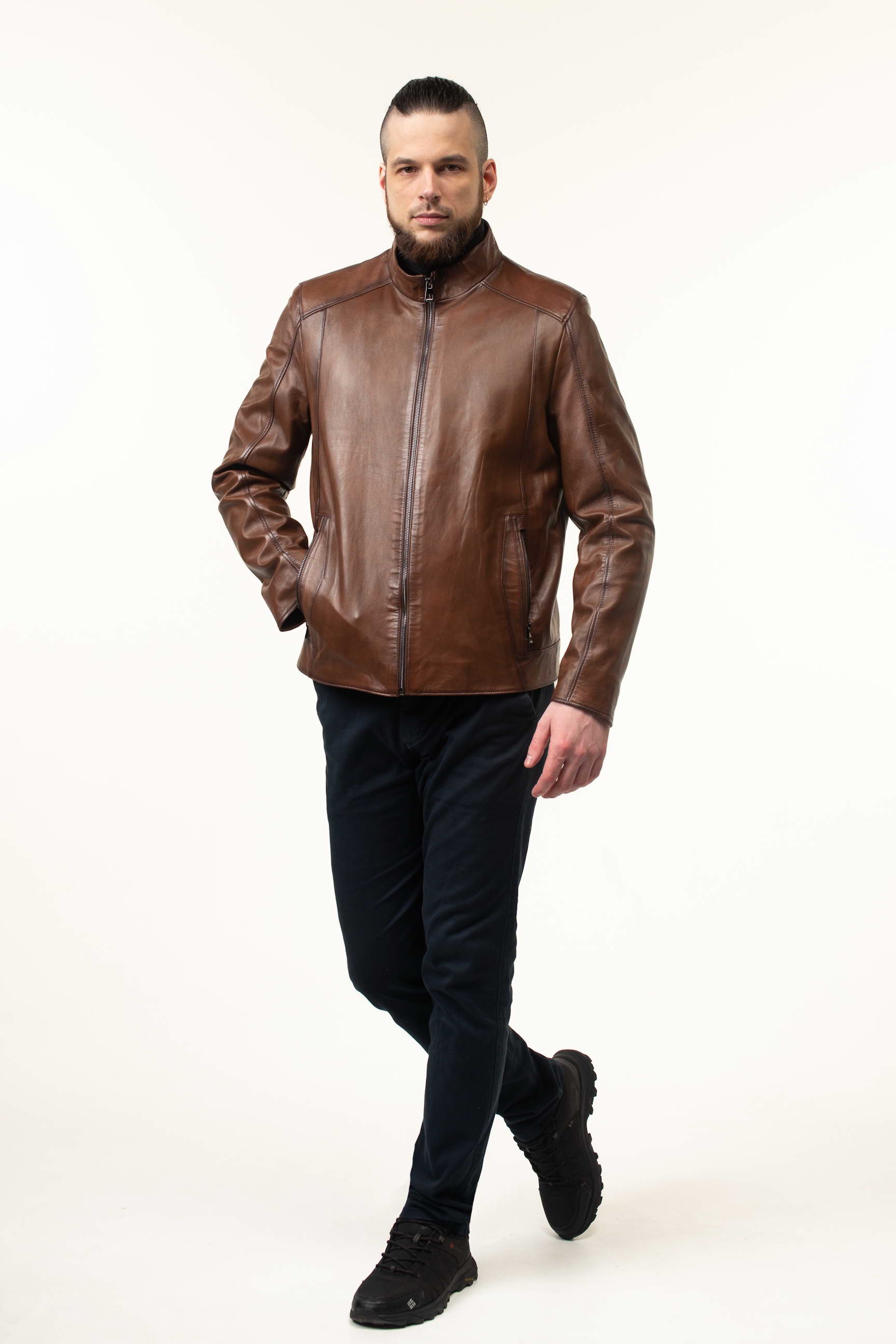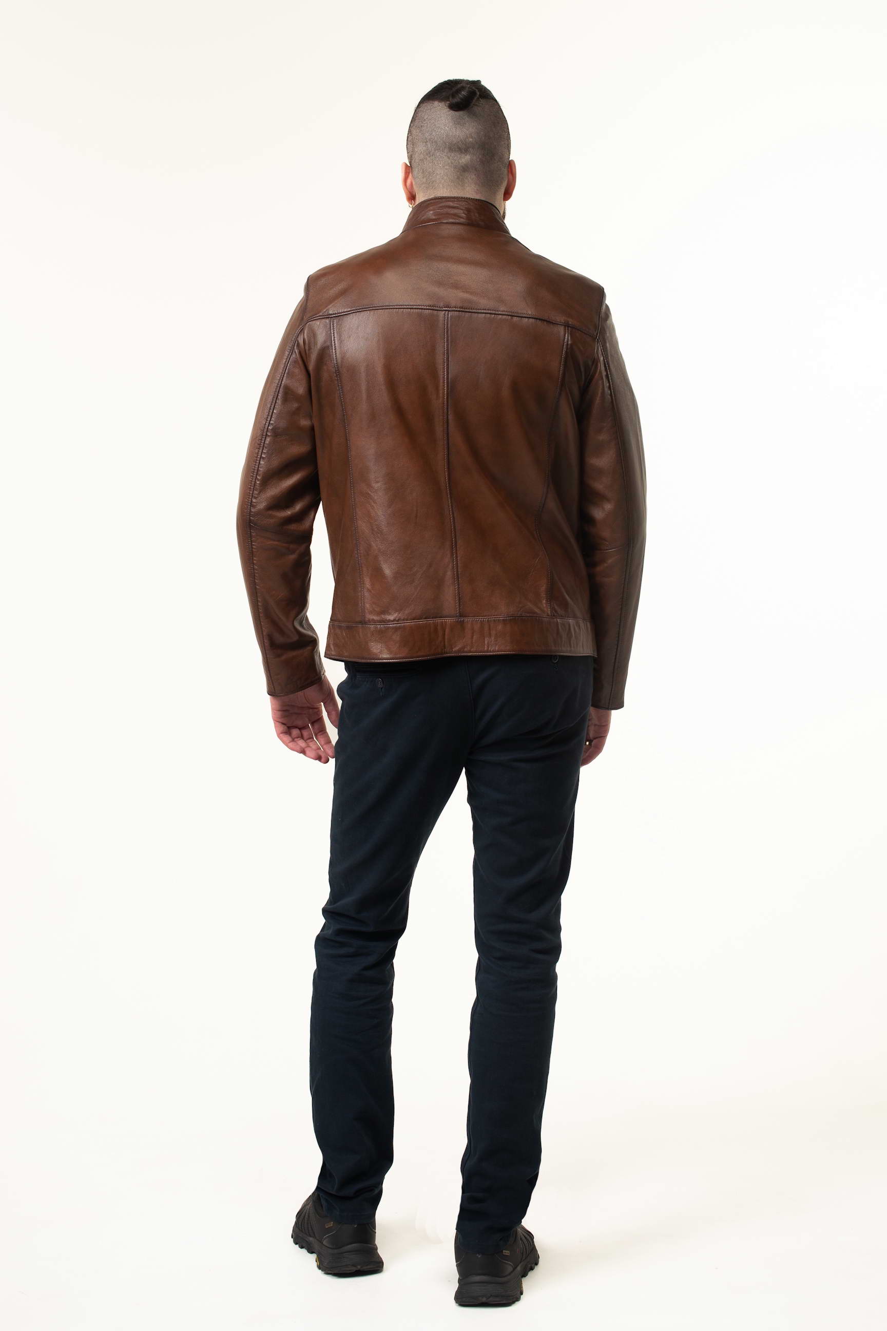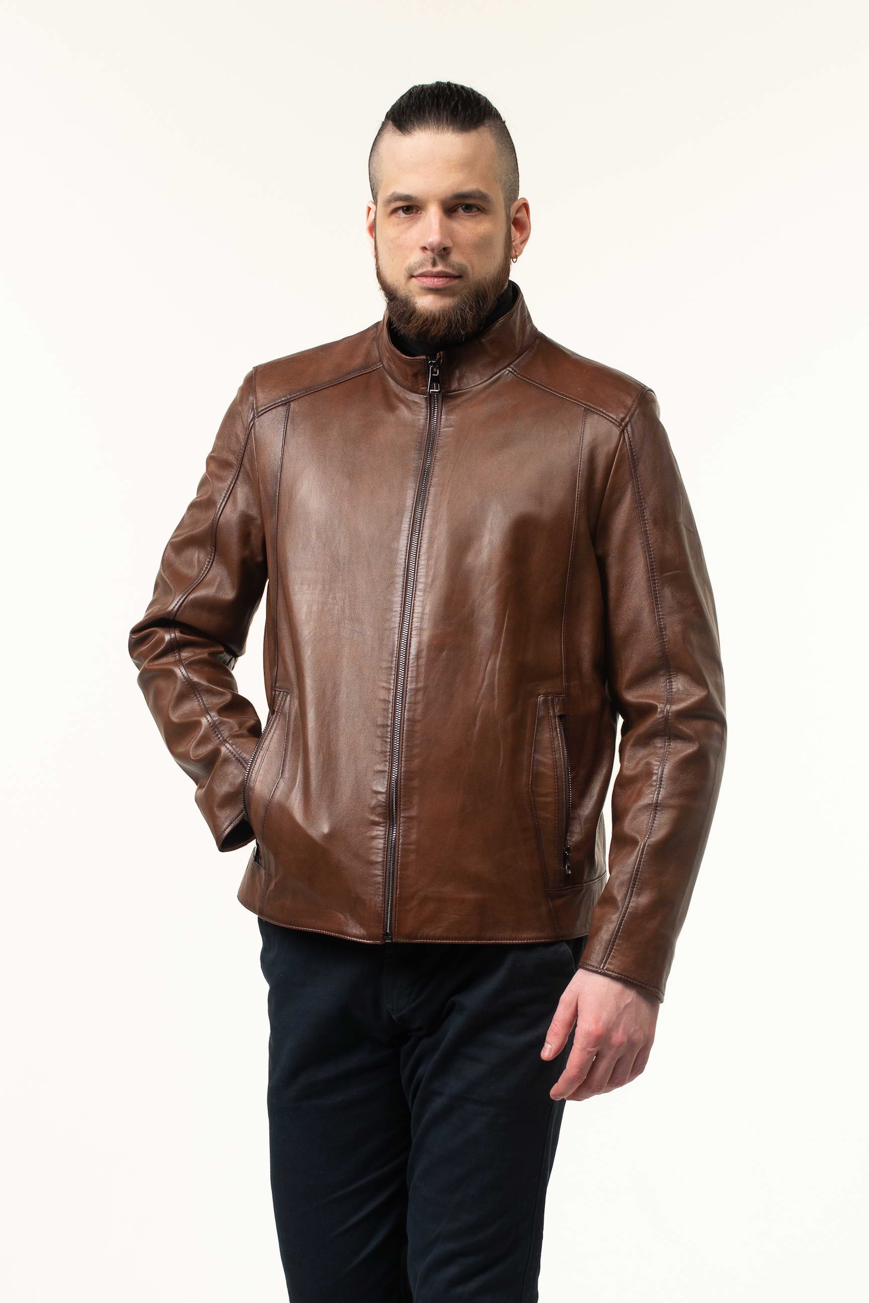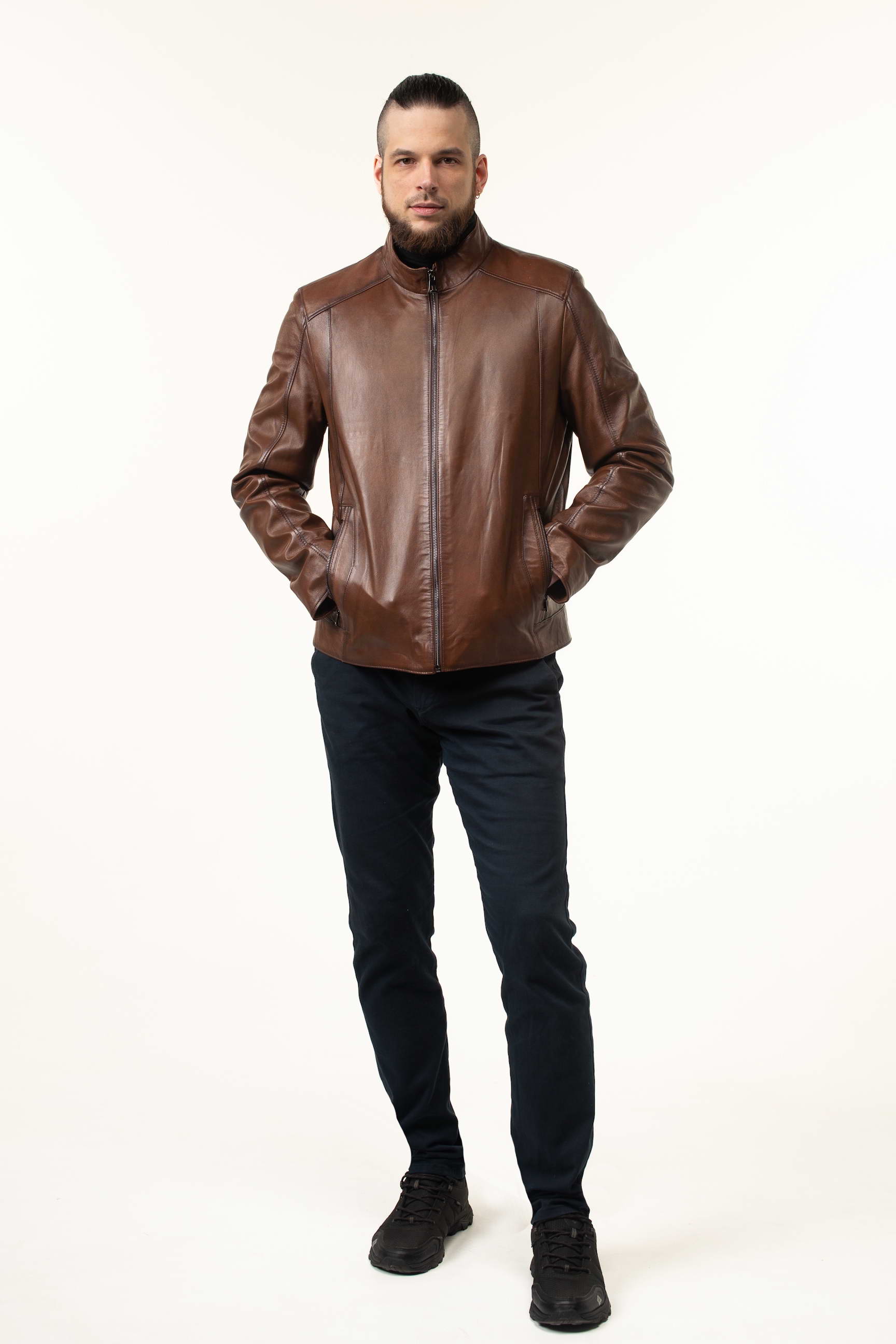 Сучасна чоловіча шкіряна куртка для сезону весна/осінь — це ідеальне поєднання елегантності, практичності та преміальної якості. Модель виконана з натуральної телячої шкіри, яка вирізняється гладкою текстурою, міцністю та довговічністю. Насичений коричневий відтінок підкреслює стиль і статус власника, а затемнені шви додають глибини та сучасного характеру.