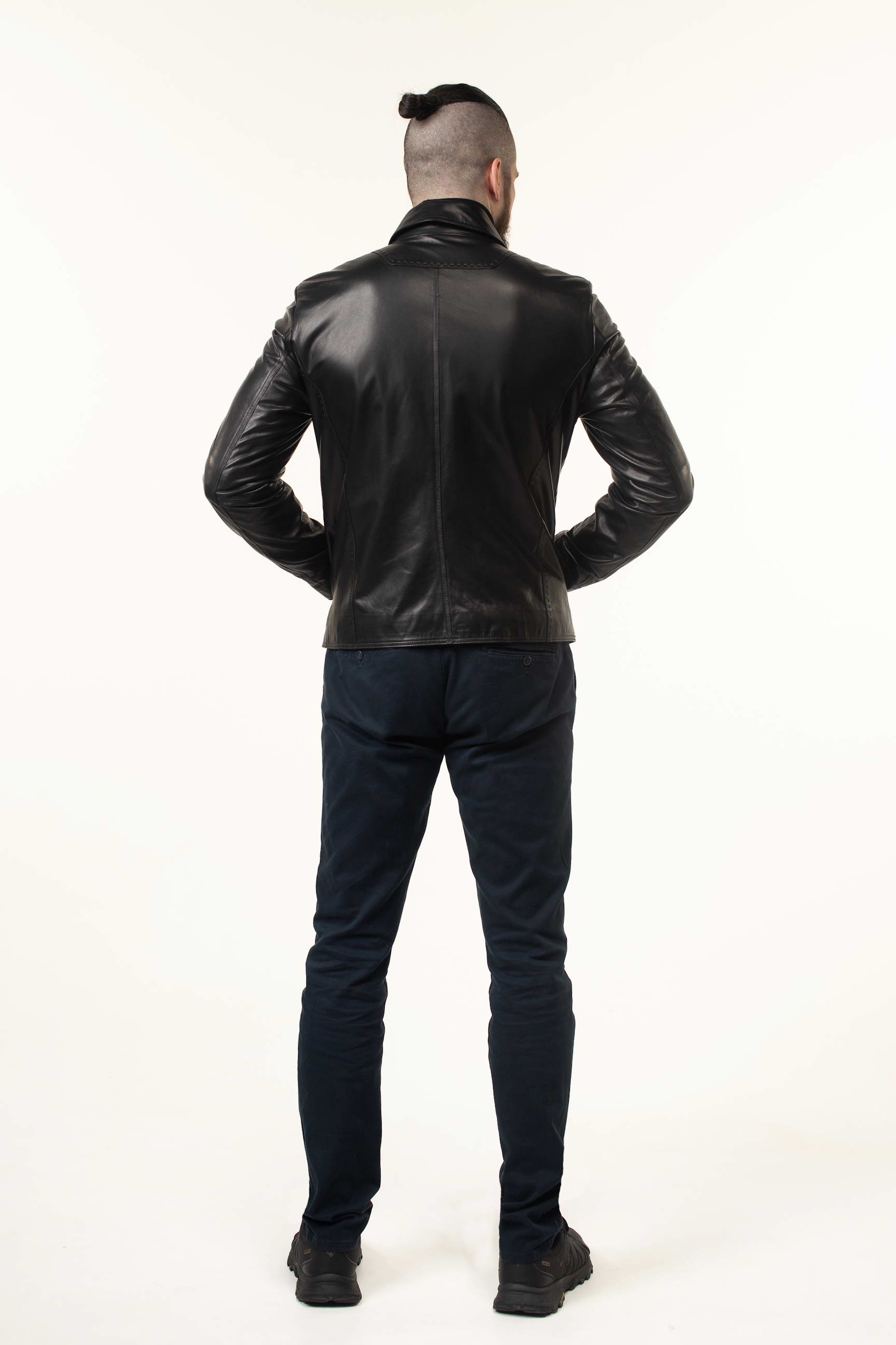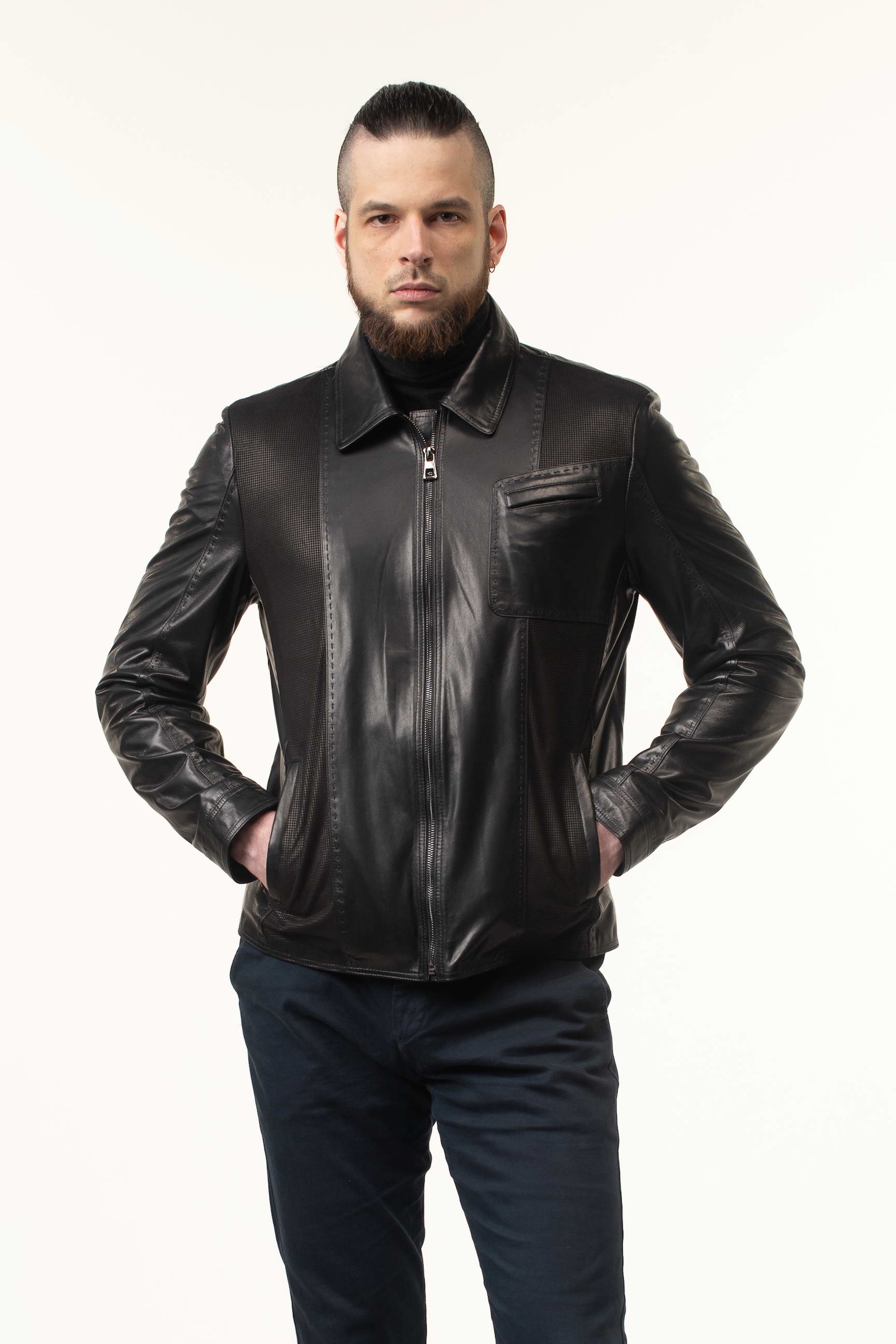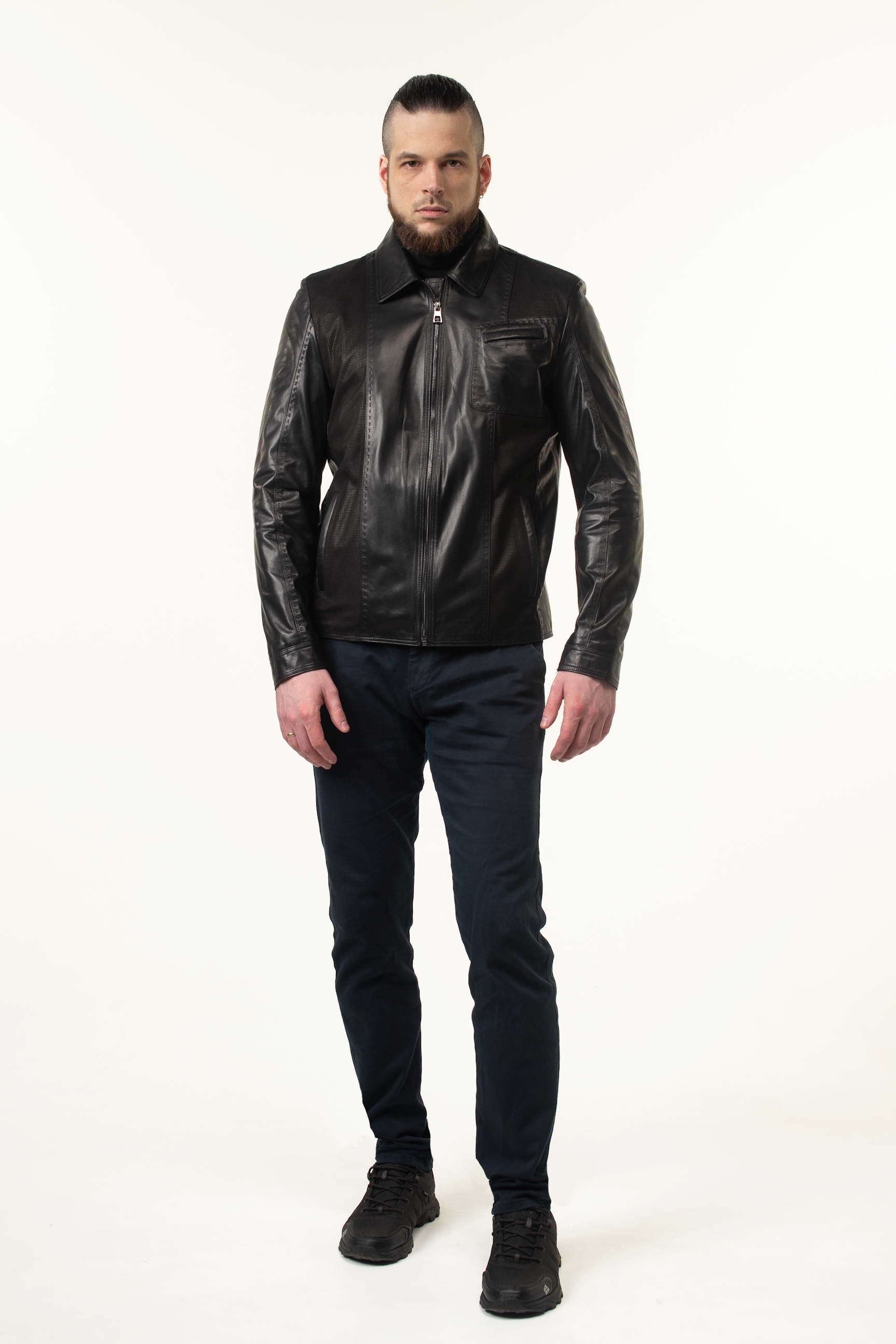 Стильна чоловіча шкіряна куртка для сезону весна/осінь — це поєднання класичного дизайну, преміальної якості матеріалу та продуманих деталей. Модель виготовлена з натуральної телячої шкіри високої якості, яка відзначається міцністю, еластичністю та гладкою текстурою. Чорний колір надає виробу універсальності, а декоративні шви додають куртці сучасного характеру та підкреслюють акуратність крою.