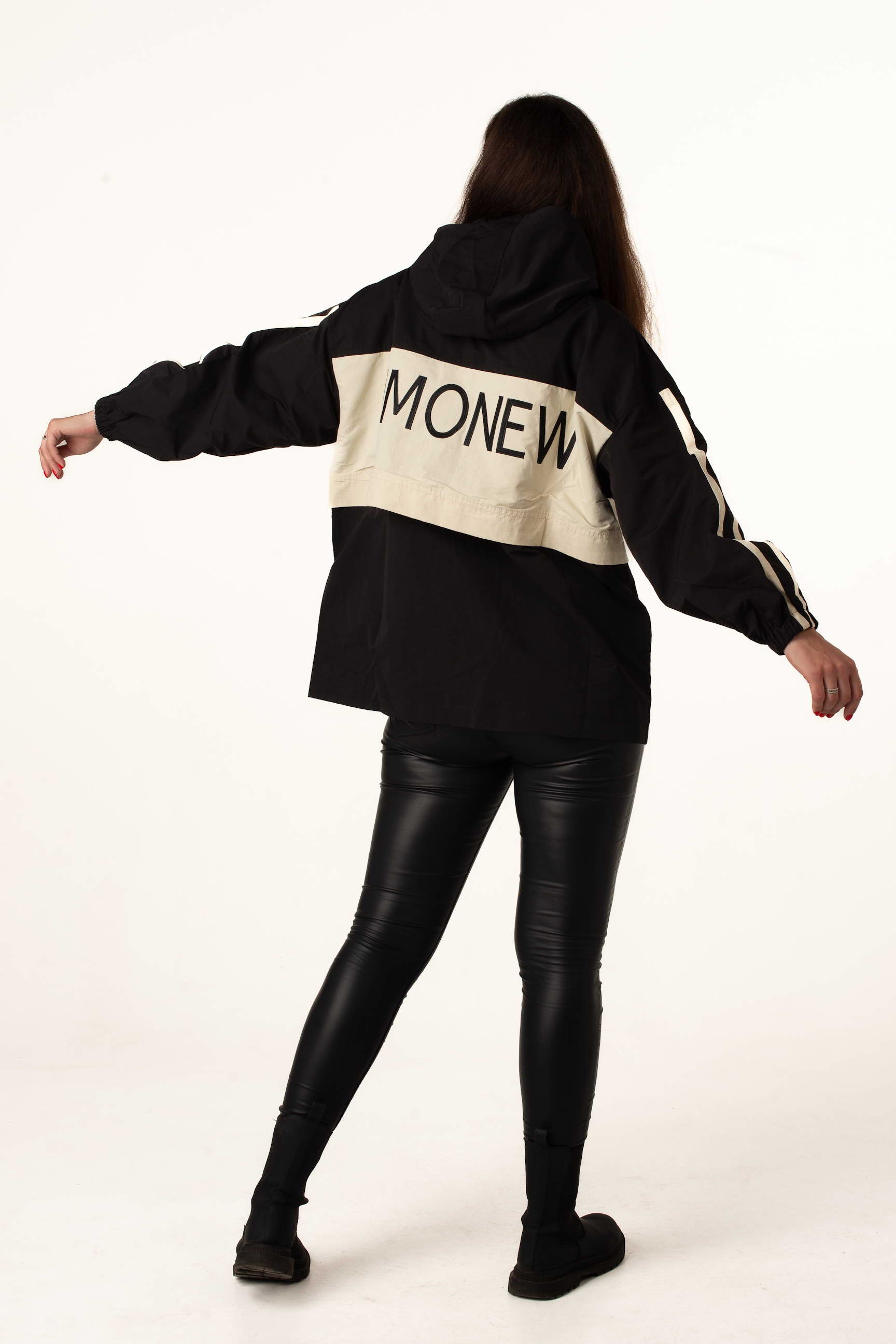 Чорно-біла вітровка — універсальна модель для активних жінок, що цінують комфорт, стиль та практичність у міжсезоння.