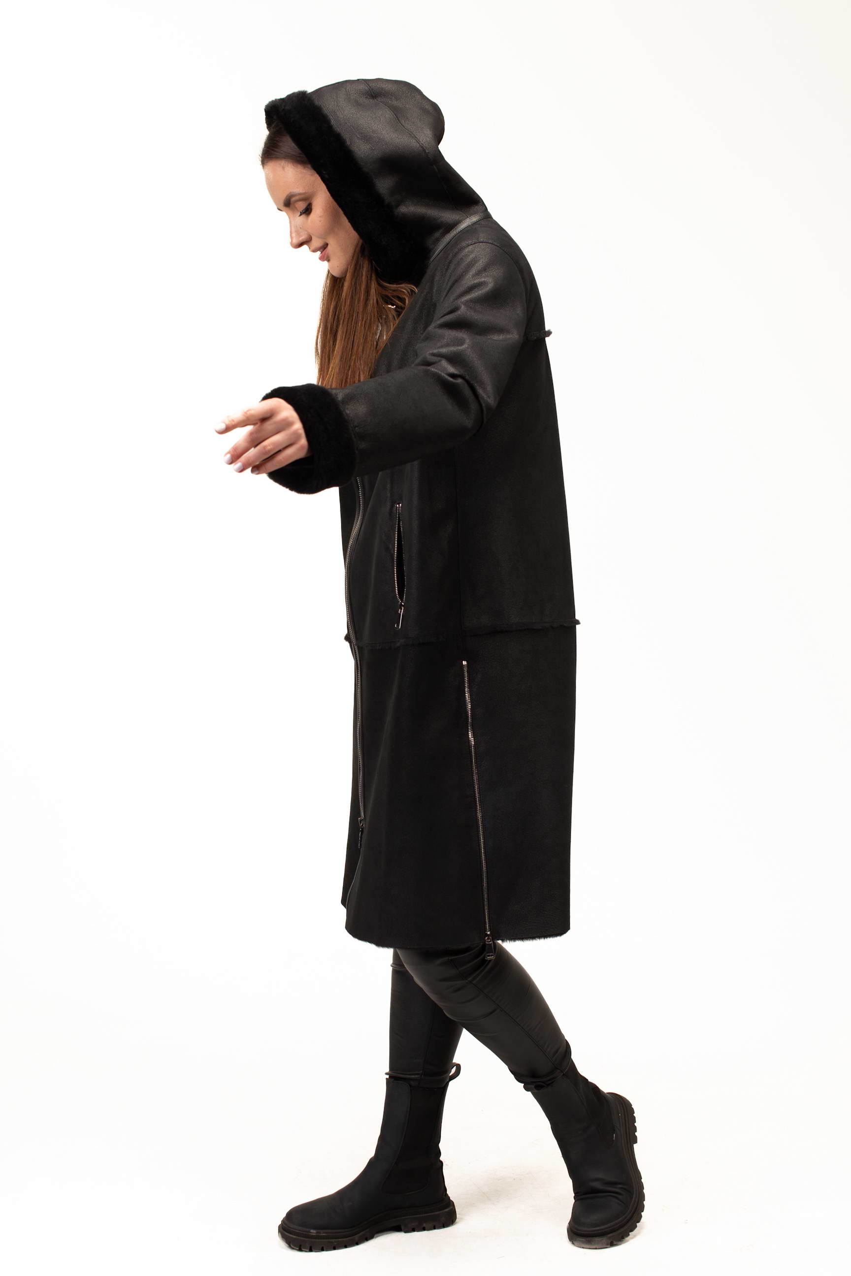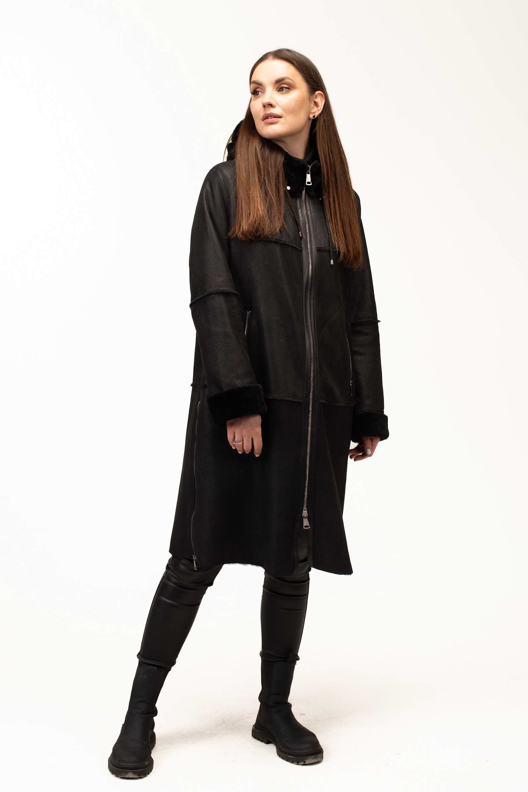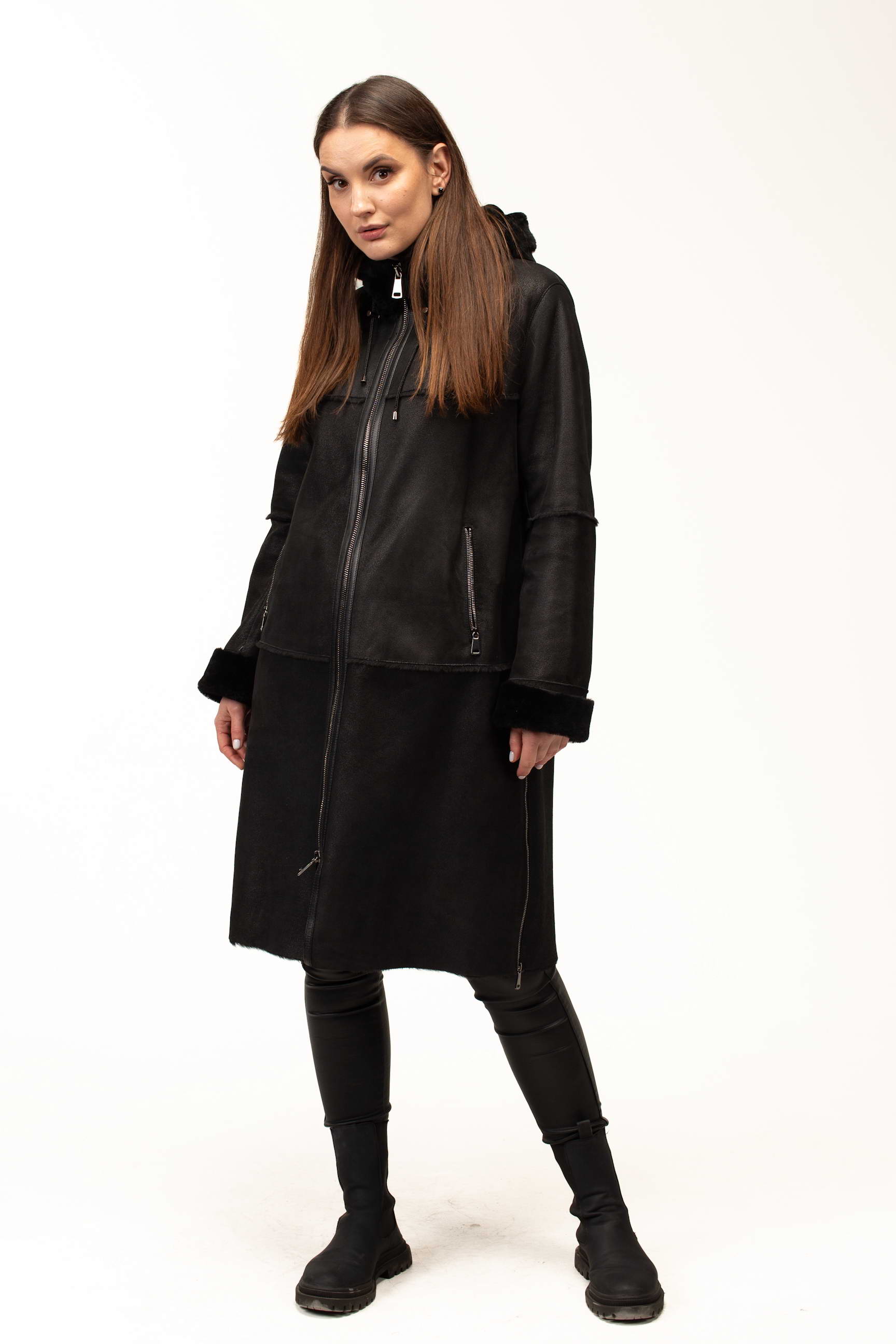Класичний чорний колір робить модель універсальною та практичною, дозволяючи легко комбінувати її з будь-яким гардеробом. Така дублянка виглядає елегантно й сучасно, підходить як для повсякденних образів, так і для більш стриманого міського стилю. Подовжена довжина 112 см забезпечує додатковий захист від холоду, огортаючи та зігріваючи у найхолодніші дні.