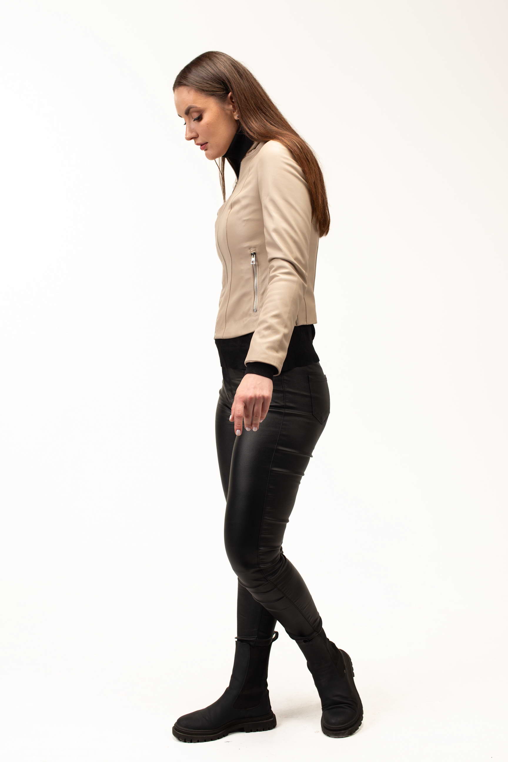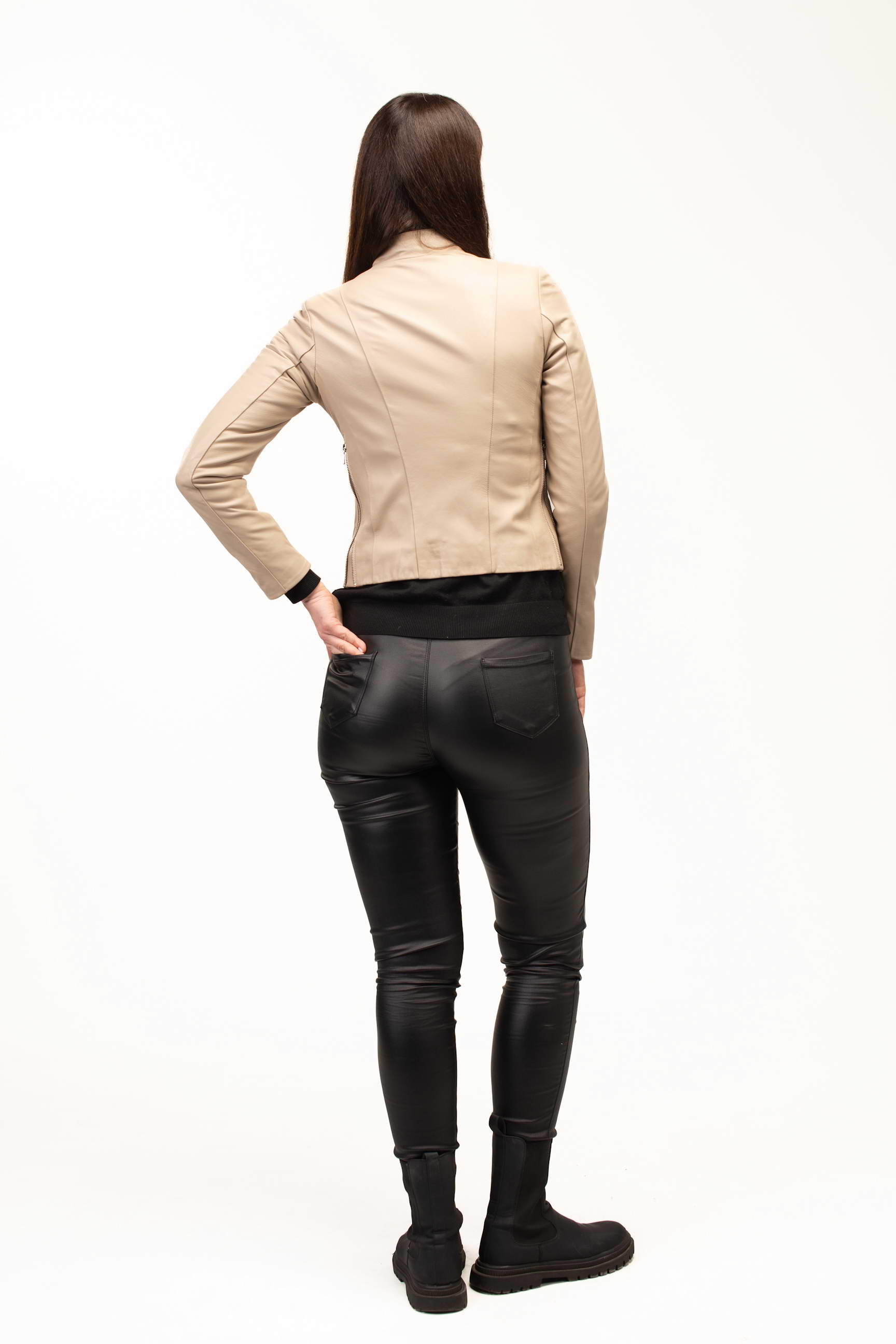 Ця жіноча шкіряна куртка з натуральної шкіри — ідеальний варіант для весняно-осіннього сезону, поєднуючи стиль, практичність і комфорт. Бежевий колір додає виробу м’якості та універсальності, роблячи його легко комбінованим із різними елементами гардеробу, від джинсів і штанів до спідниць та суконь.