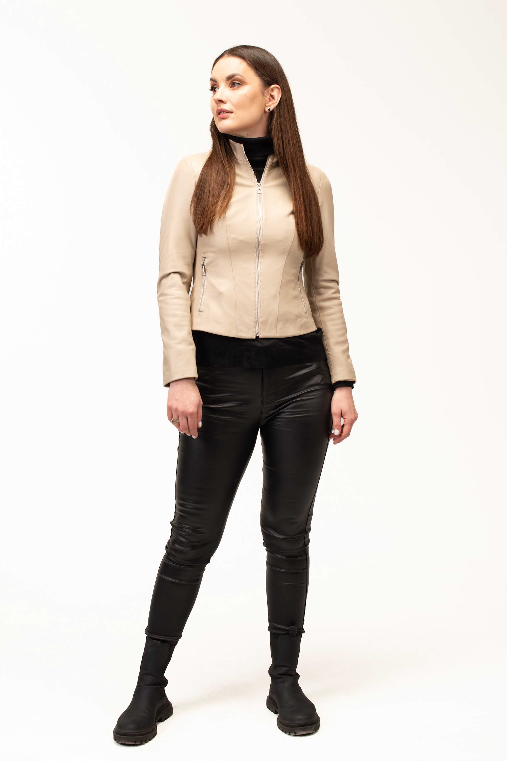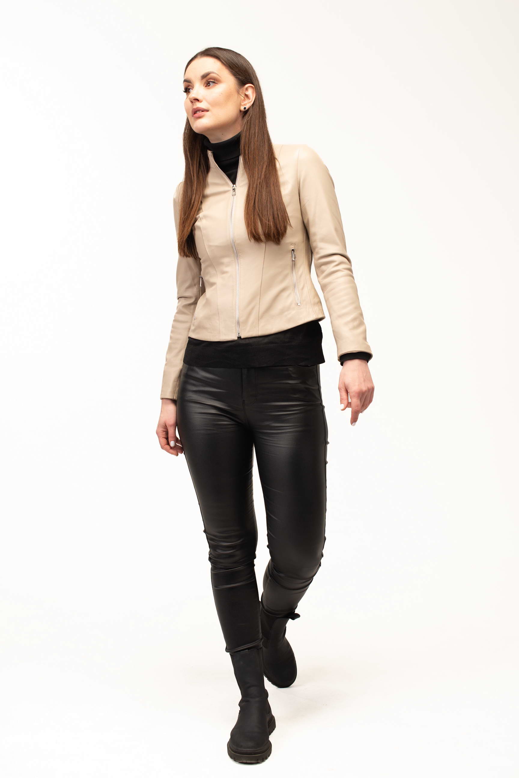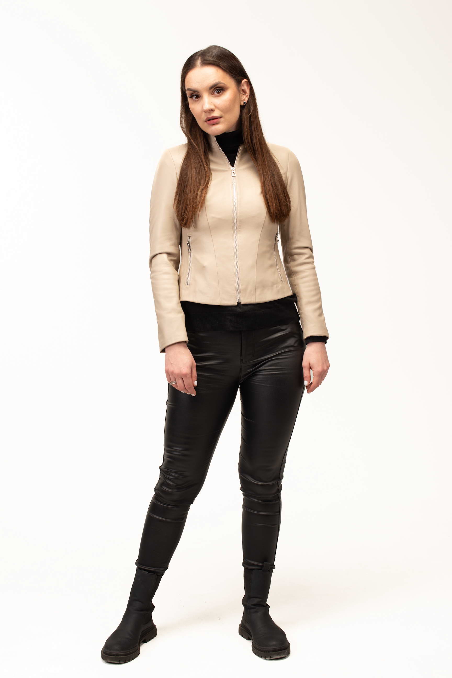 Якщо ви шукаєте, де купити жіночу шкіряну куртку, ця бежева модель стане відмінним вибором для тих, хто цінує елегантність, простоту та практичність.