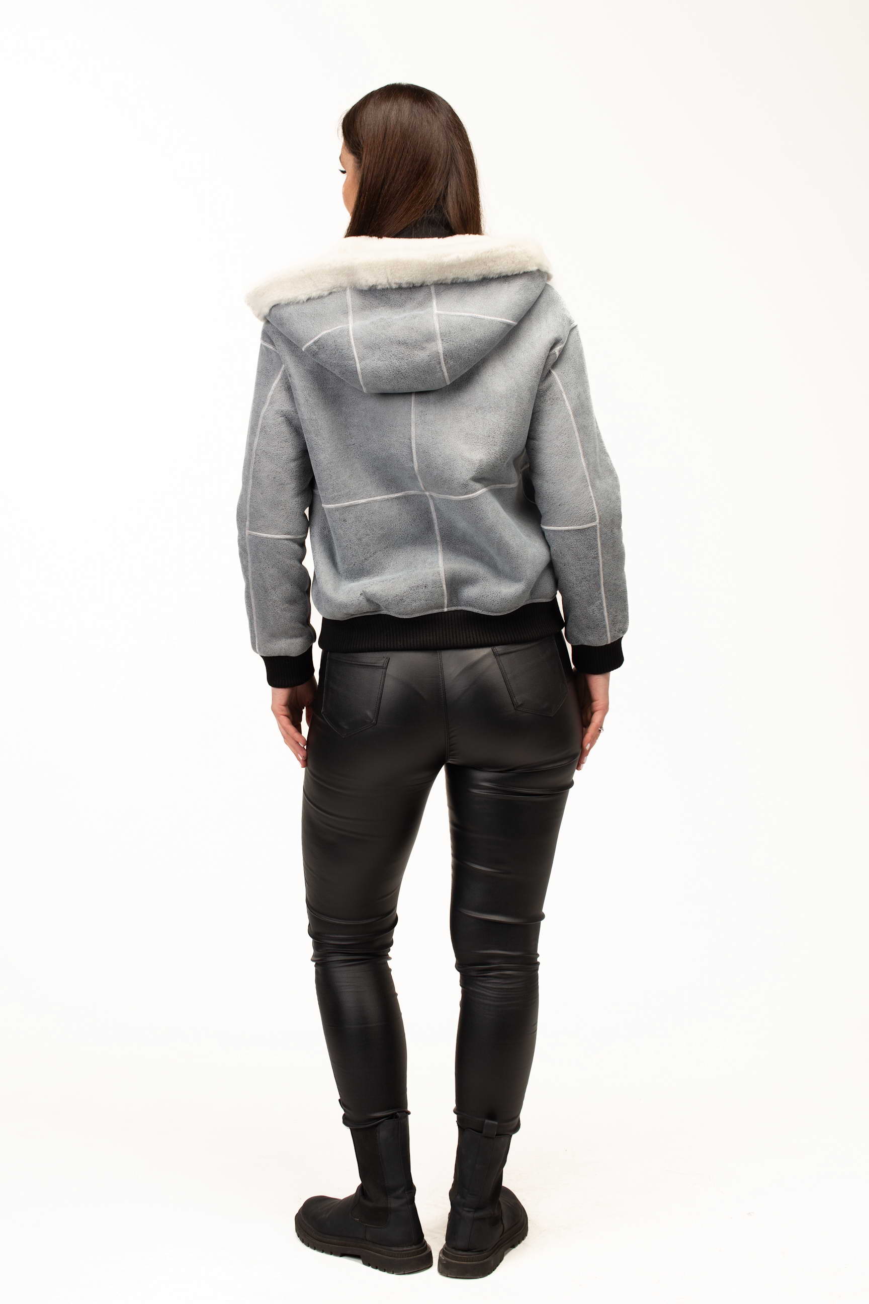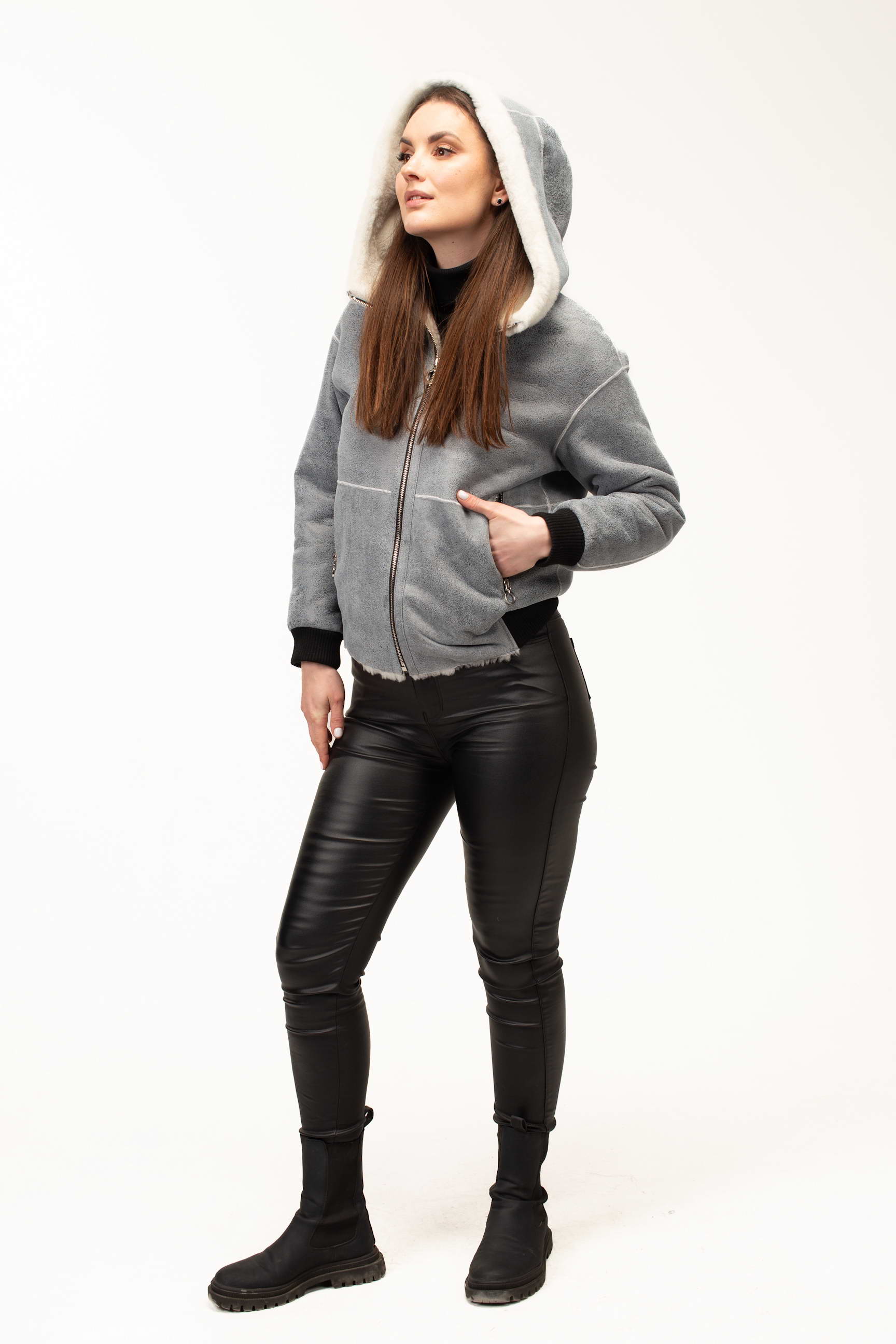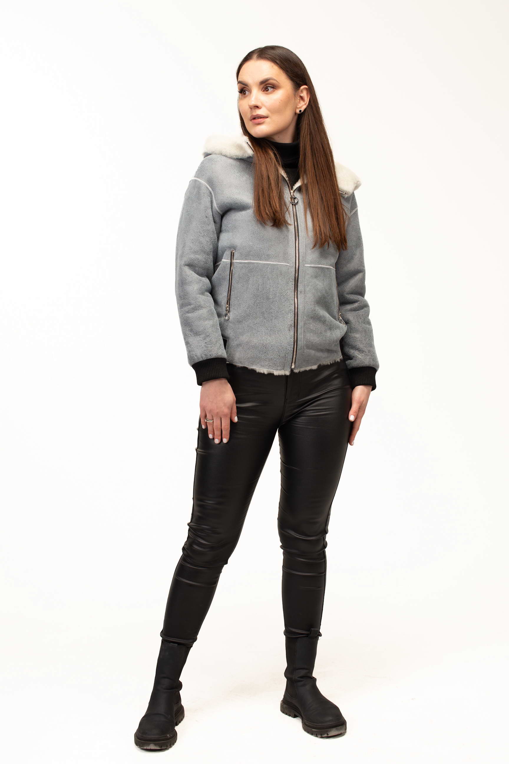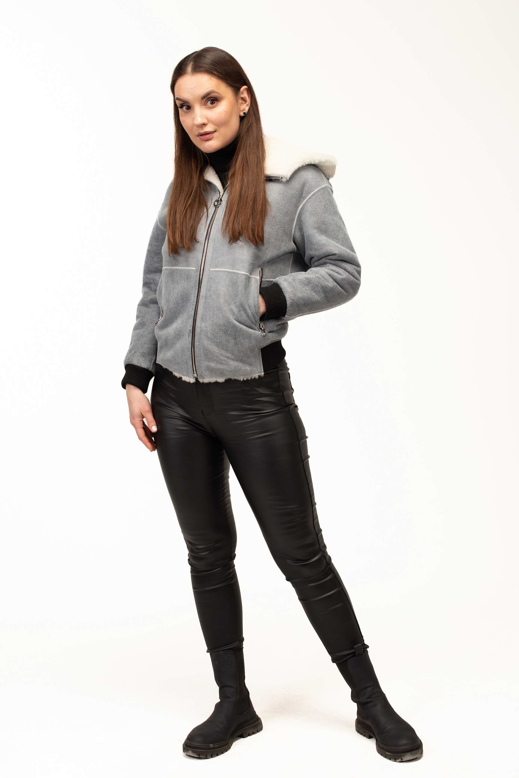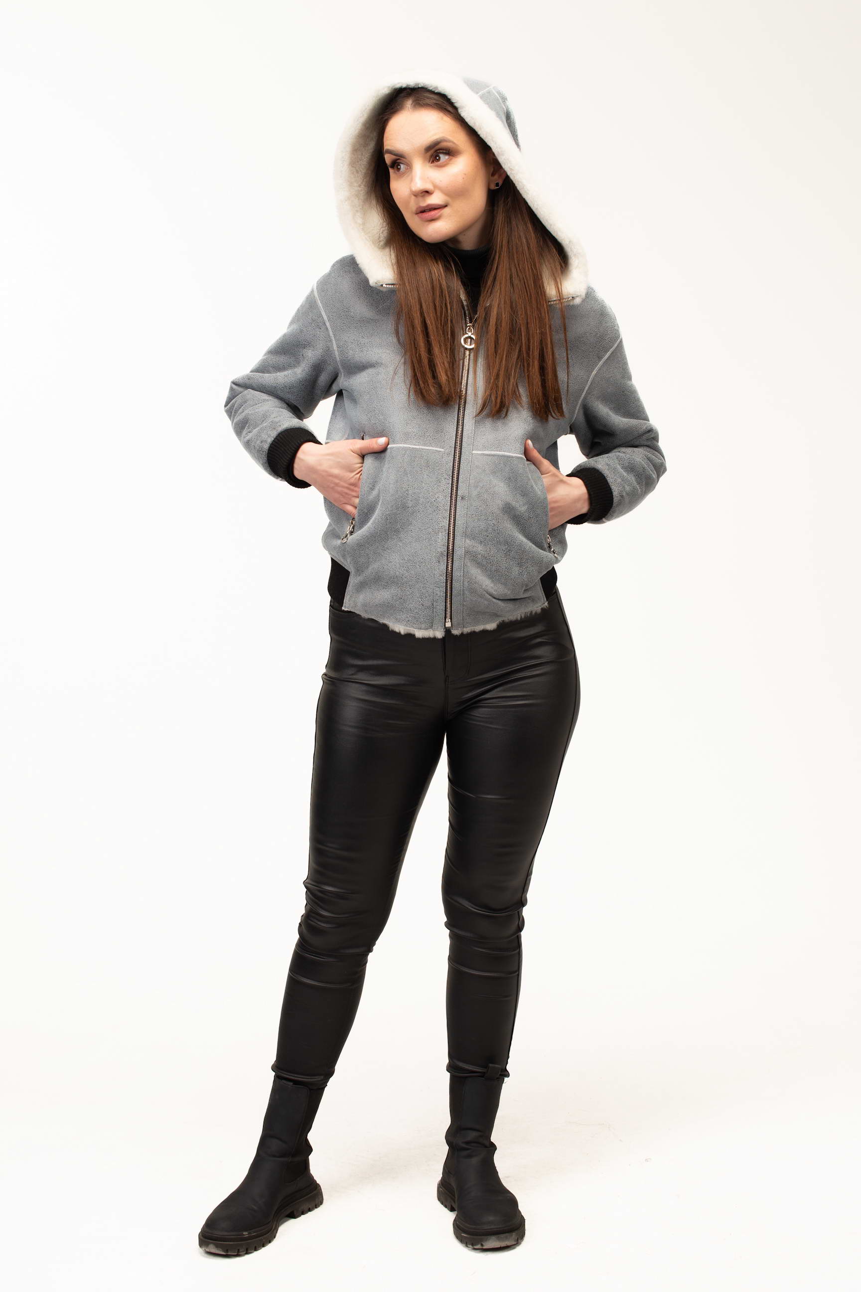 Жіноча натуральна дублянка у сірому кольорі виготовлена з поєднання замші в накаті та натуральної овчини, що забезпечує надійний захист від холоду та комфорт у зимовий сезон. Замша з захисним покриттям від вологи підвищує практичність виробу, допомагаючи зберігати його привабливий вигляд навіть за несприятливих погодних умов, а овчина всередині гарантує тепло та затишок.