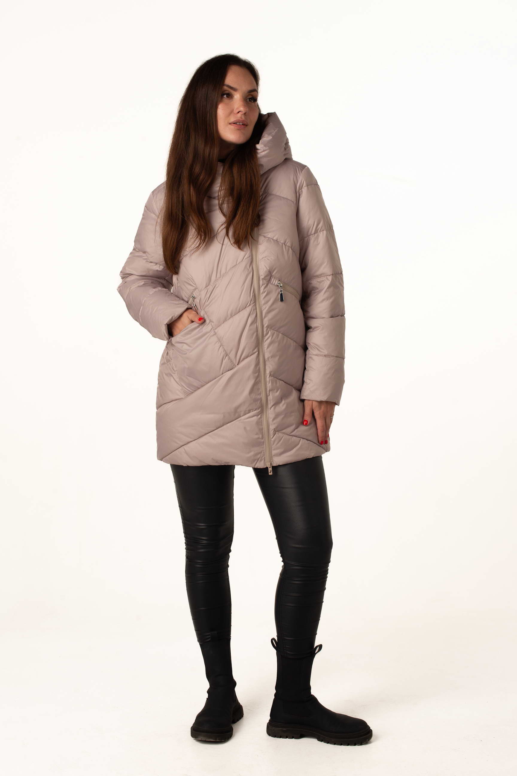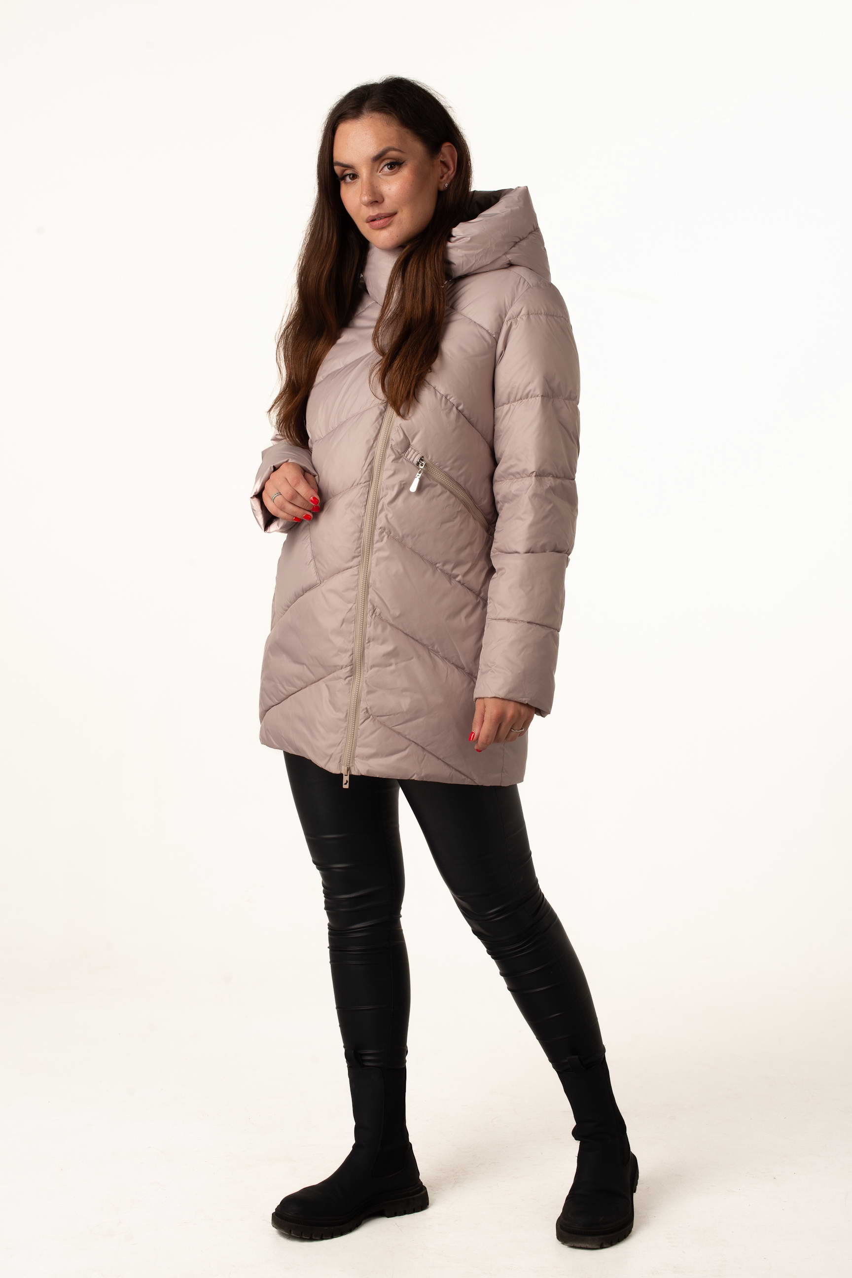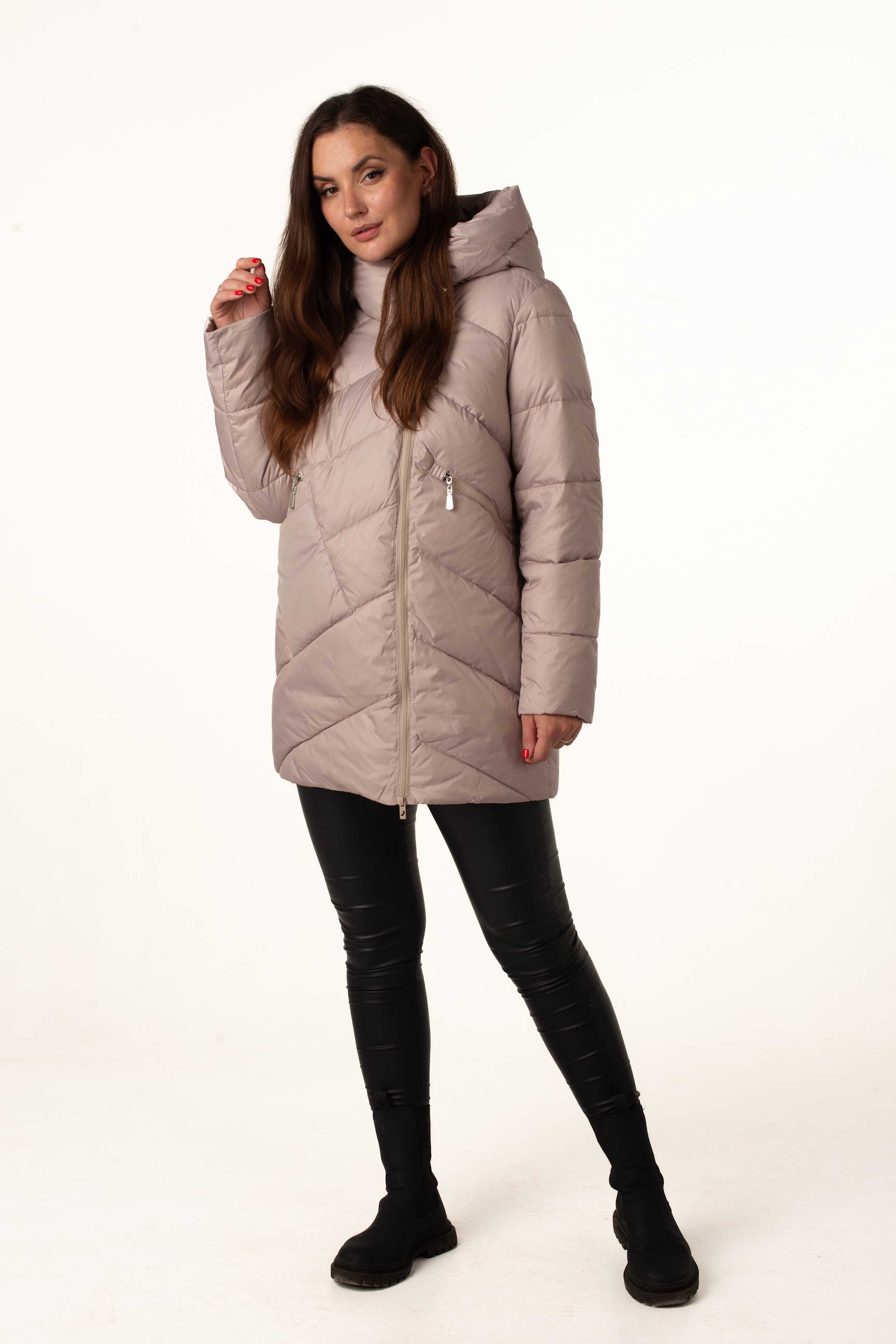 Жіночий біопуховик у бежевому кольорі – це вдале поєднання комфорту, легкості та сучасного стилю. Подовжена модель підходить для щоденного носіння, виглядає елегантно та додає образу витонченості.