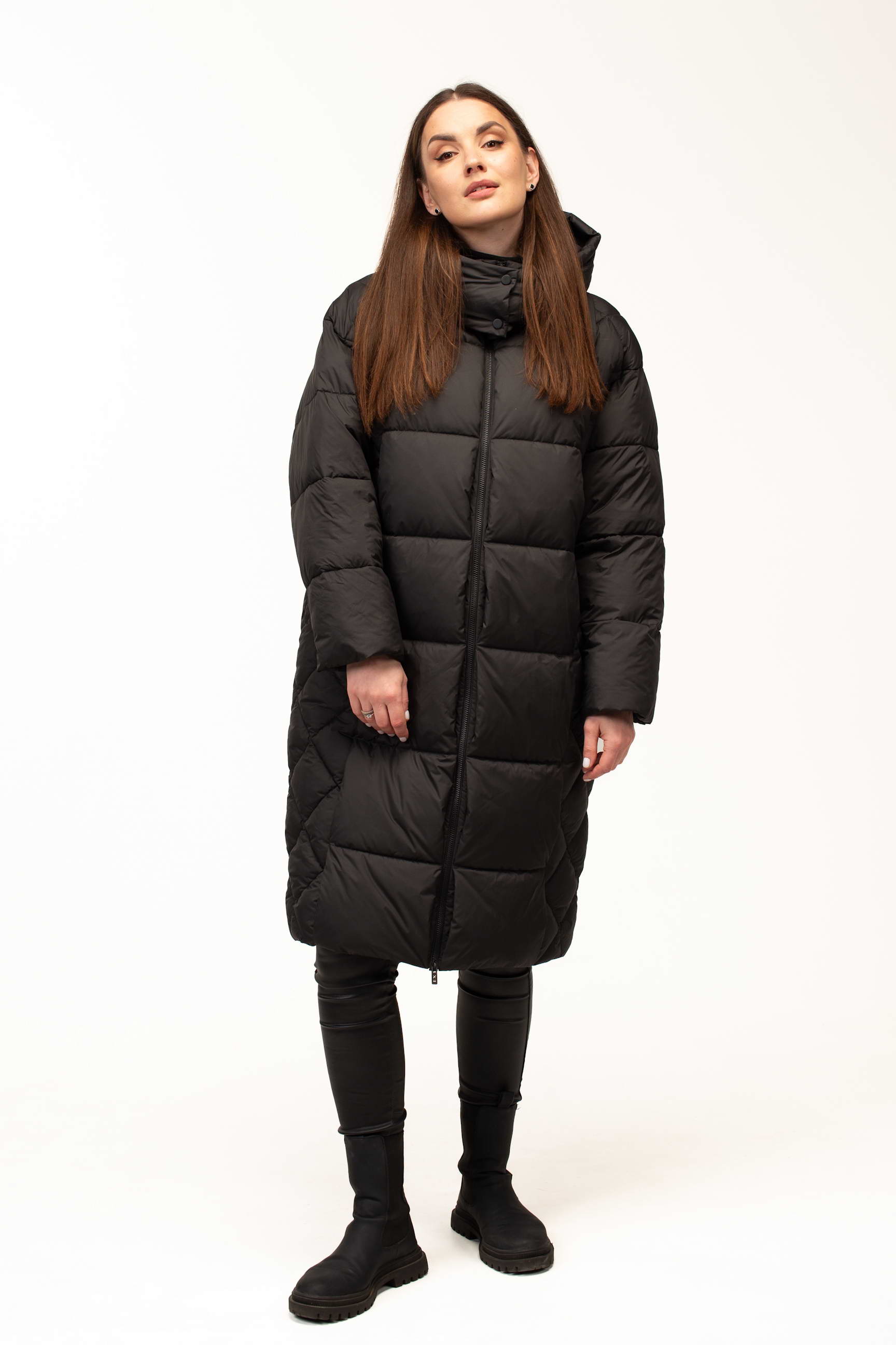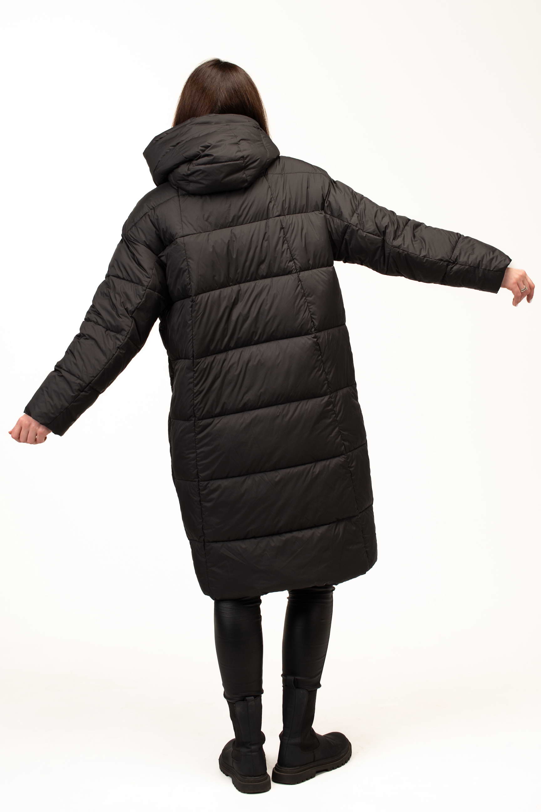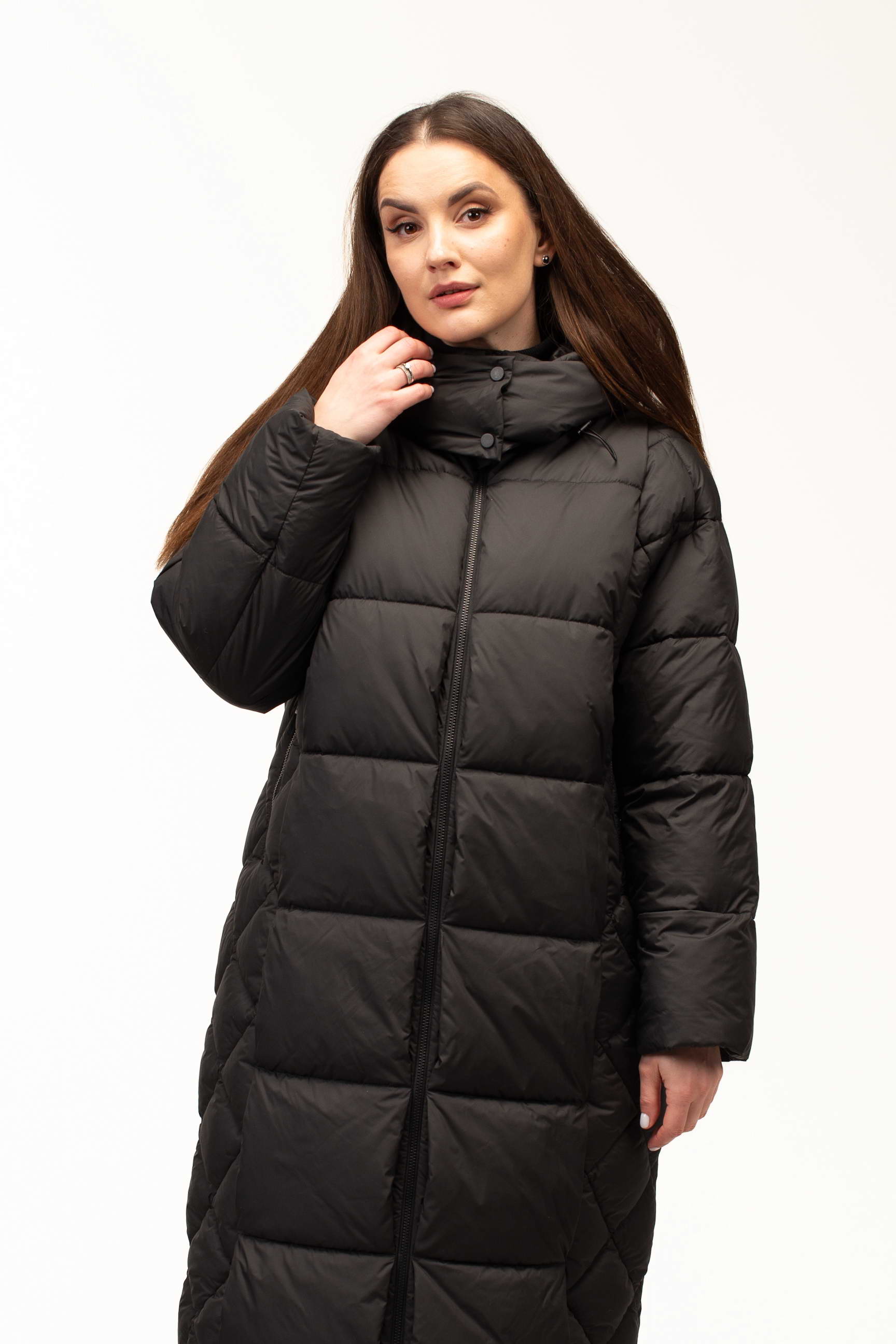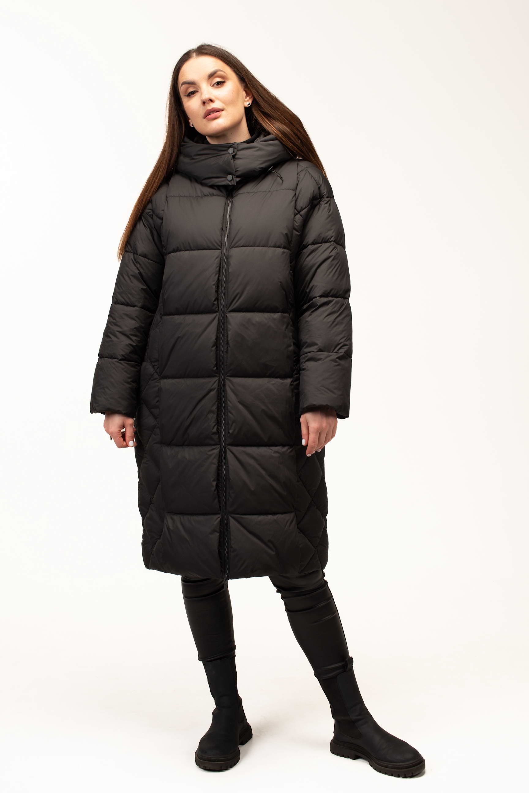 Класичний чорний колір додає виробу елегантності та універсальності, дозволяючи легко комбінувати куртку з будь-яким гардеробом. Подовжена довжина 105 см забезпечує максимальний захист від холоду та вітру, що особливо важливо під час тривалих прогулянок або активного ритму життя в місті.