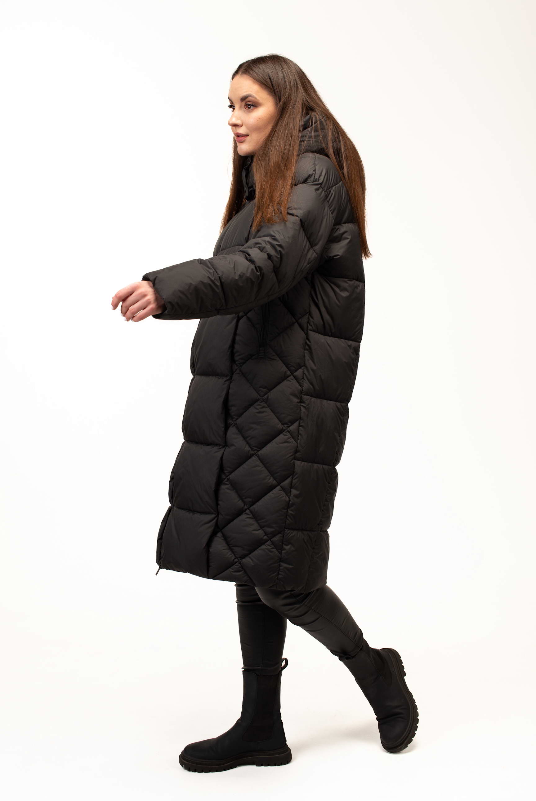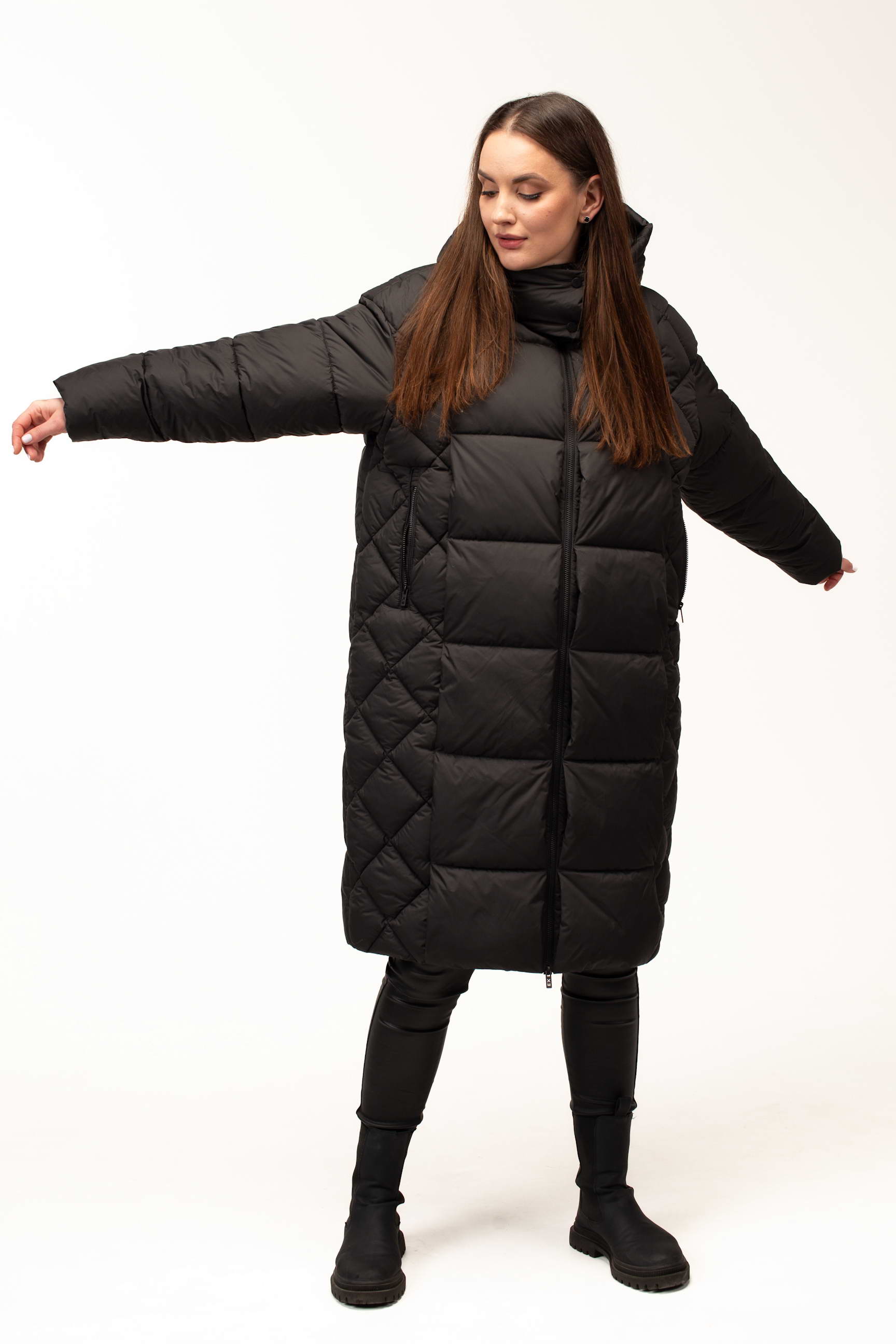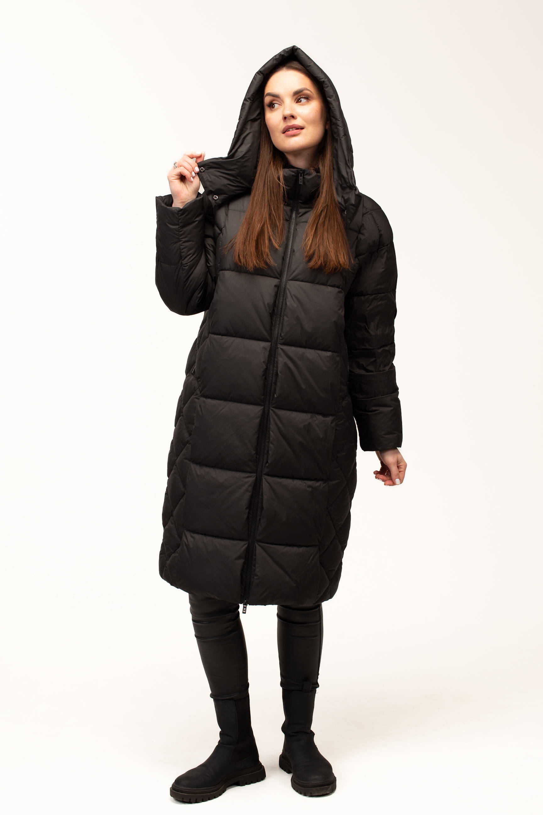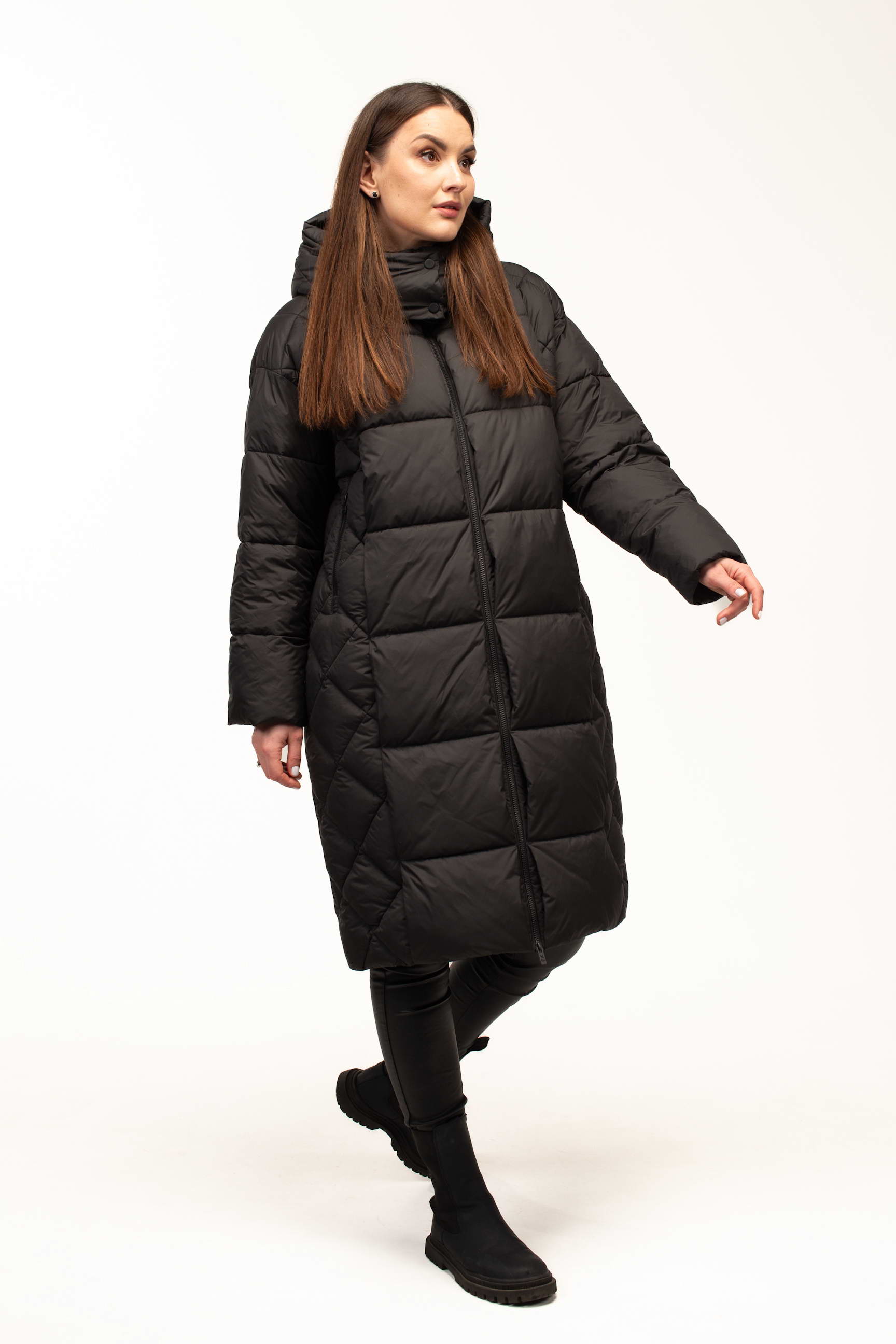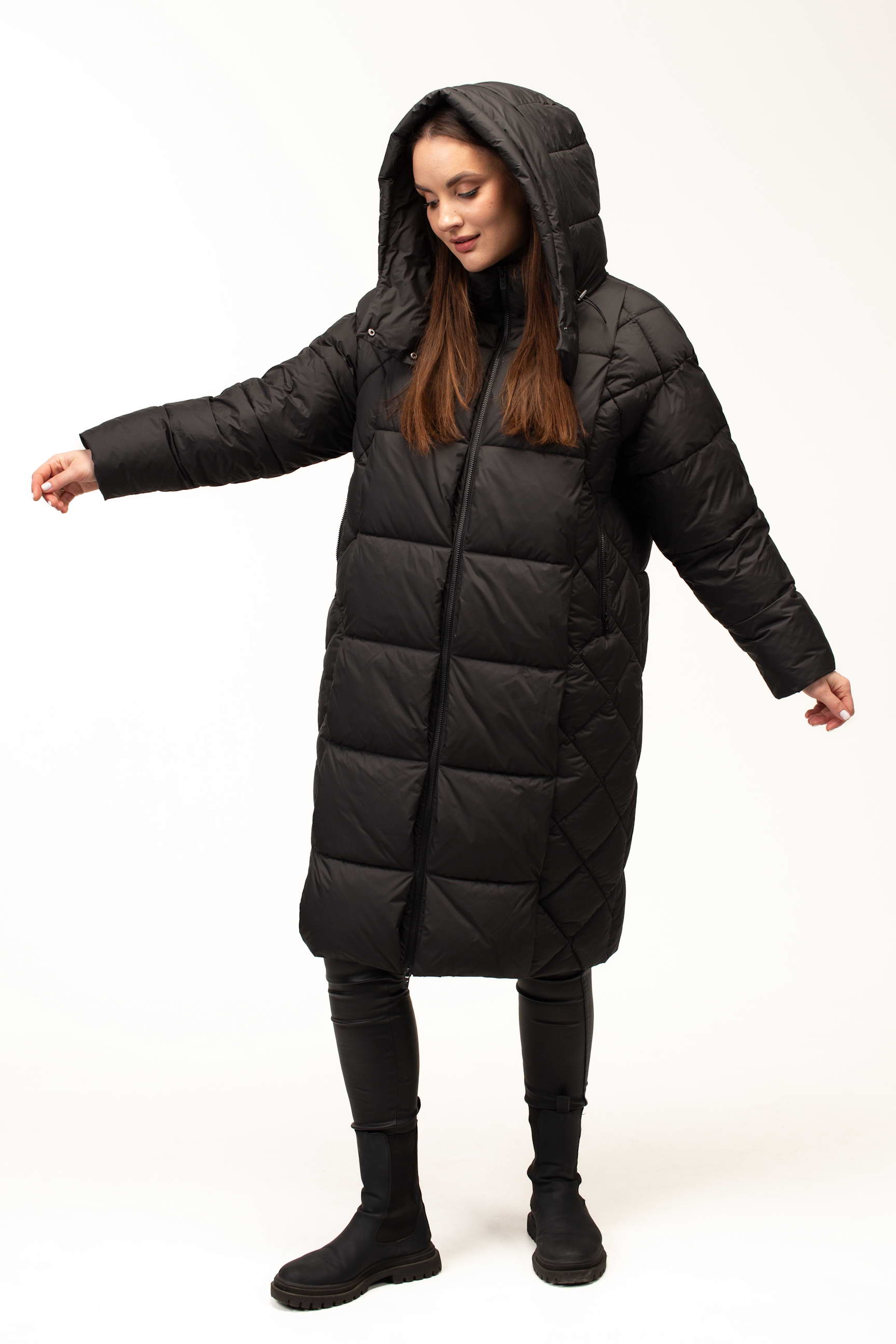 Класичний чорний колір додає виробу елегантності та універсальності, дозволяючи легко комбінувати куртку з будь-яким гардеробом. Подовжена довжина 105 см забезпечує максимальний захист від холоду та вітру, що особливо важливо під час тривалих прогулянок або активного ритму життя в місті.