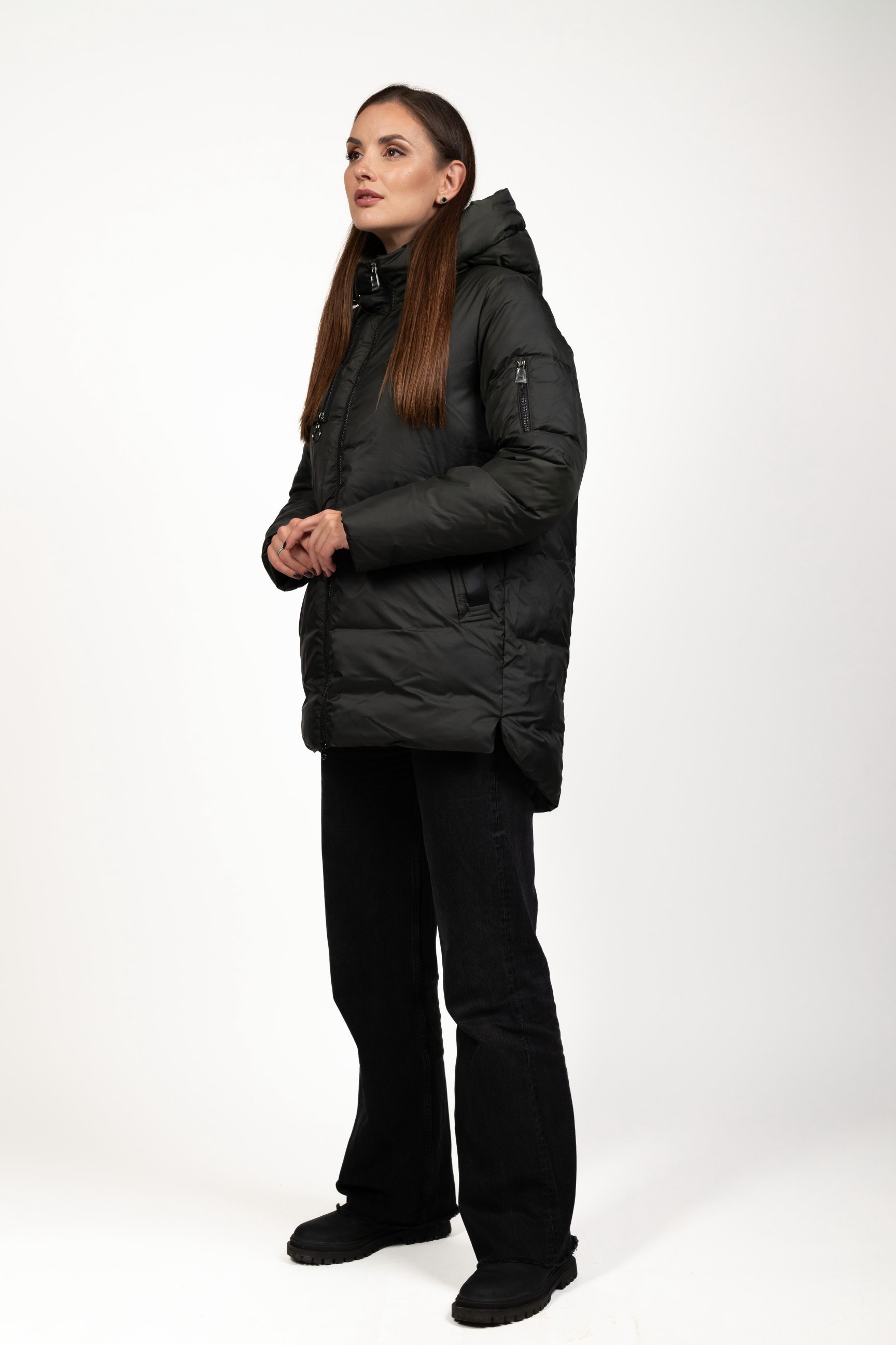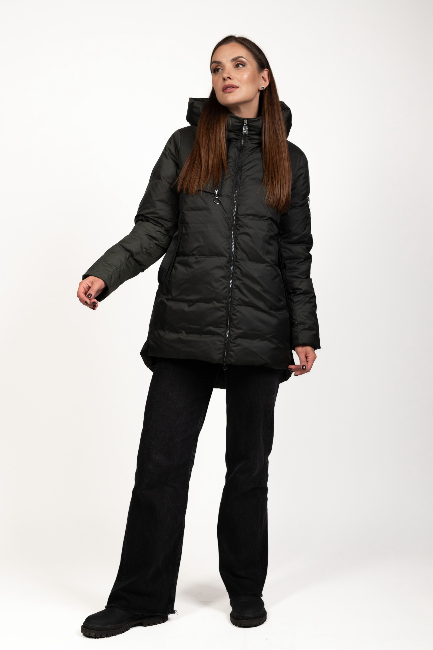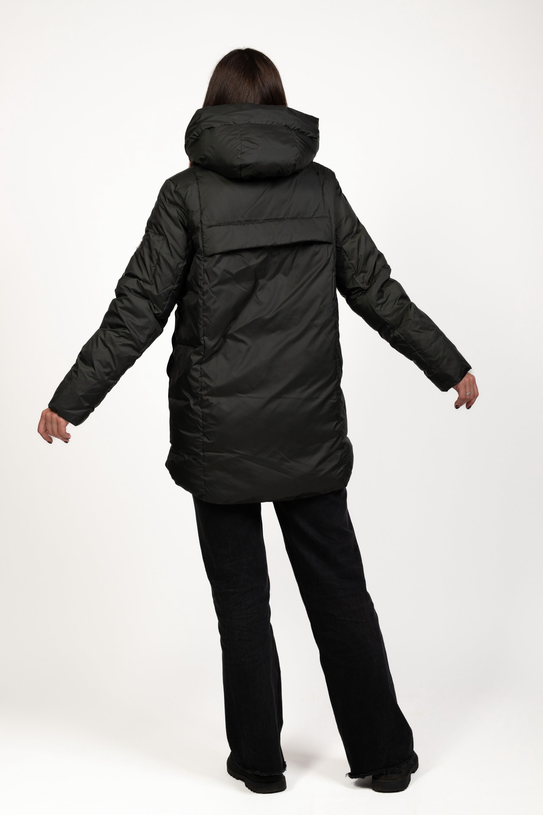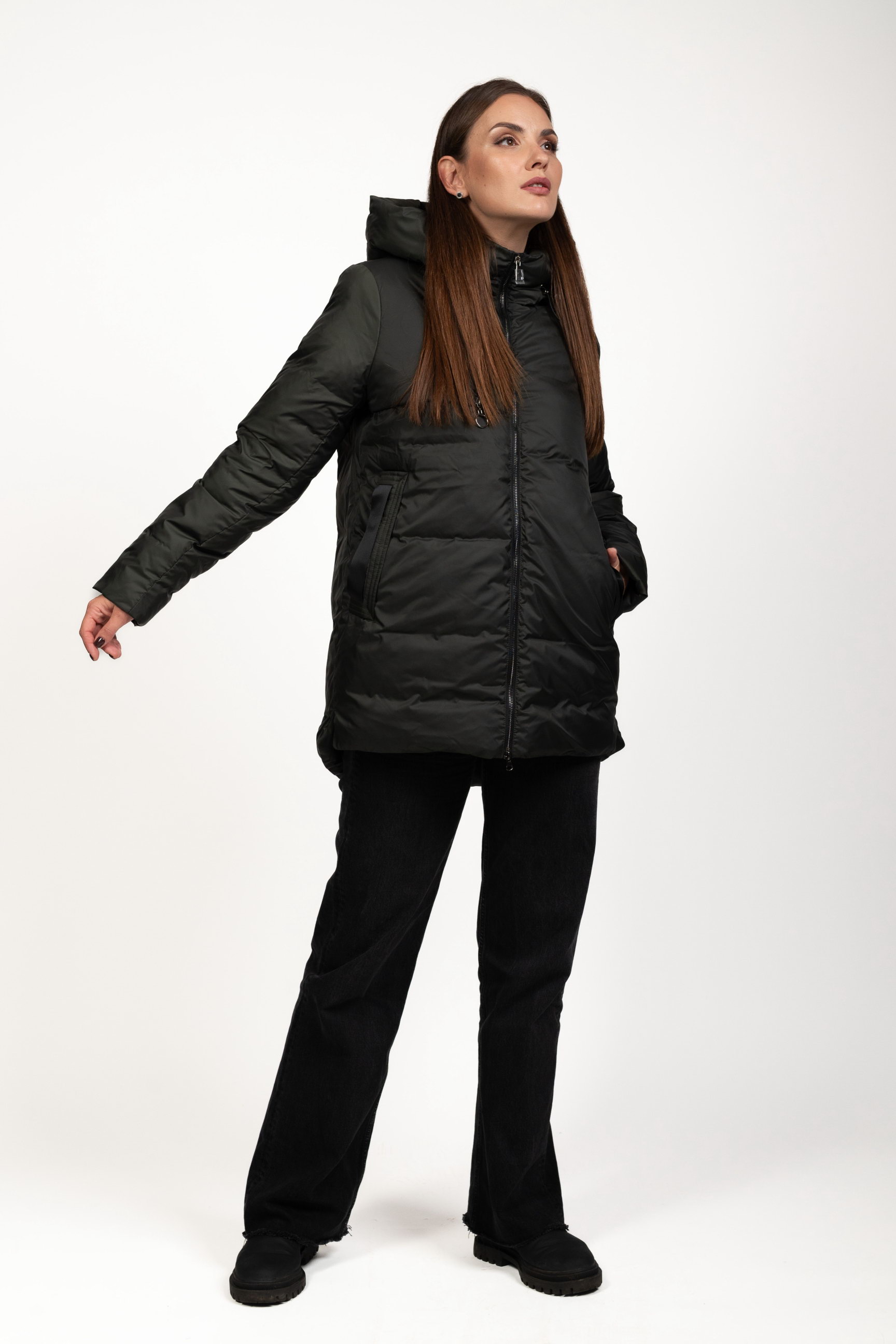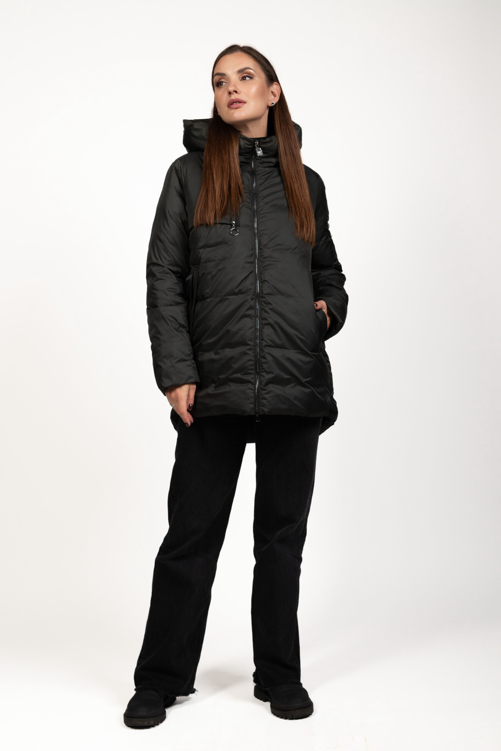 Комір-стійка з капюшоном надійно захищає шию та голову від вітру, снігу та холоду, створюючи додатковий комфорт під час морозів.